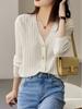 2026 Principios de Primavera Nuevo Estilo Coreano Hebilla Metálica de Estrella de Mar Cuello en V Francés Elegante de Manga Corta Cardigan Tejido de Color Sólido Top para Mujer