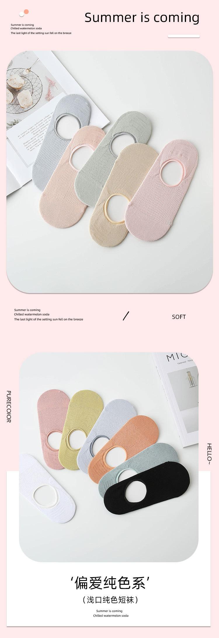 Calcetines de Barco Primavera y Verano Color Sólido Calcetines Invisibles Algodón Calcetines de Mujer Antideslizantes Calcetines de Malla Poco Profundos Transpirables de Mujer