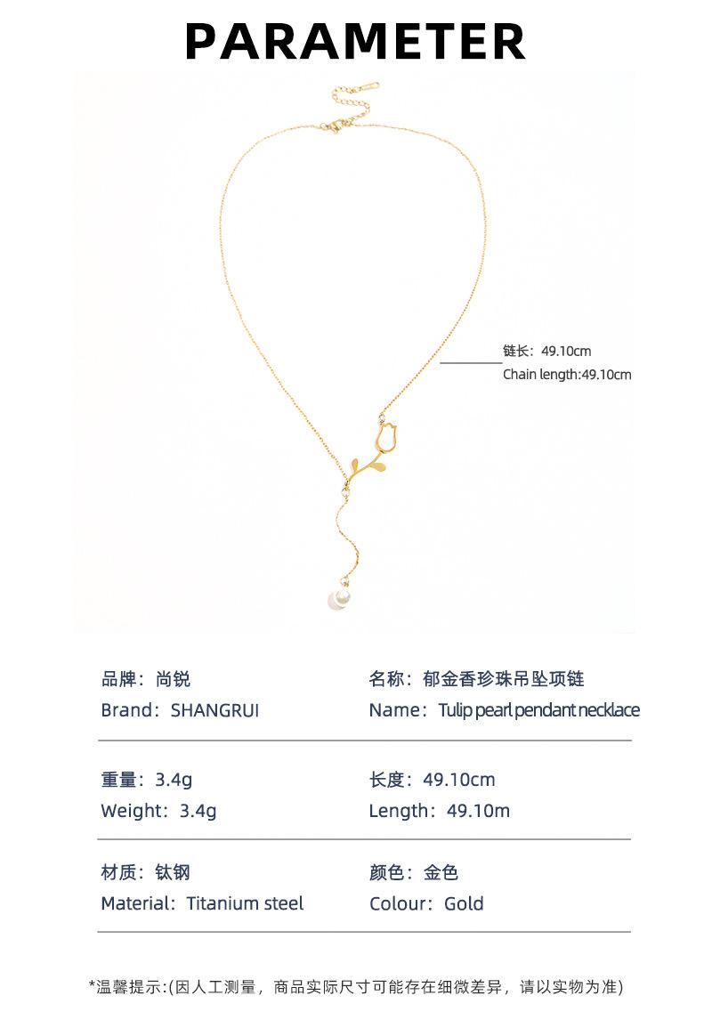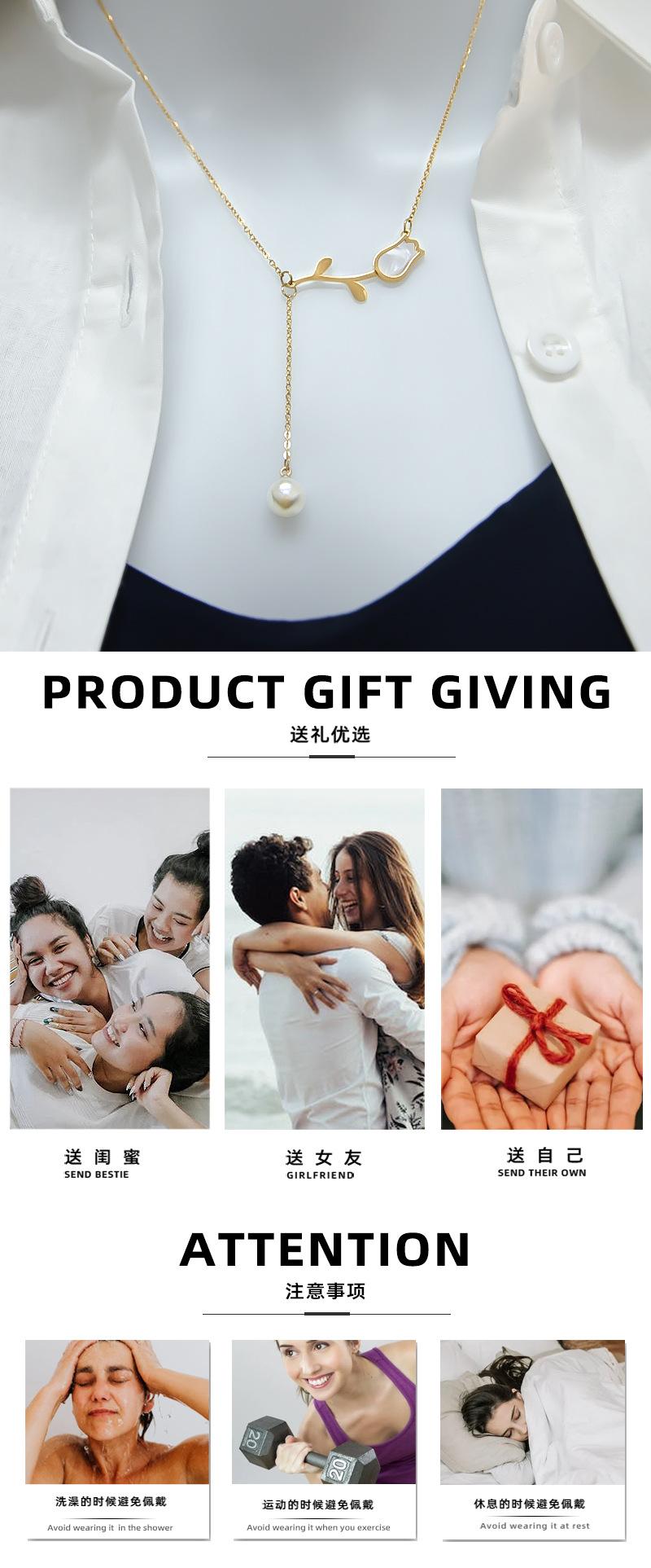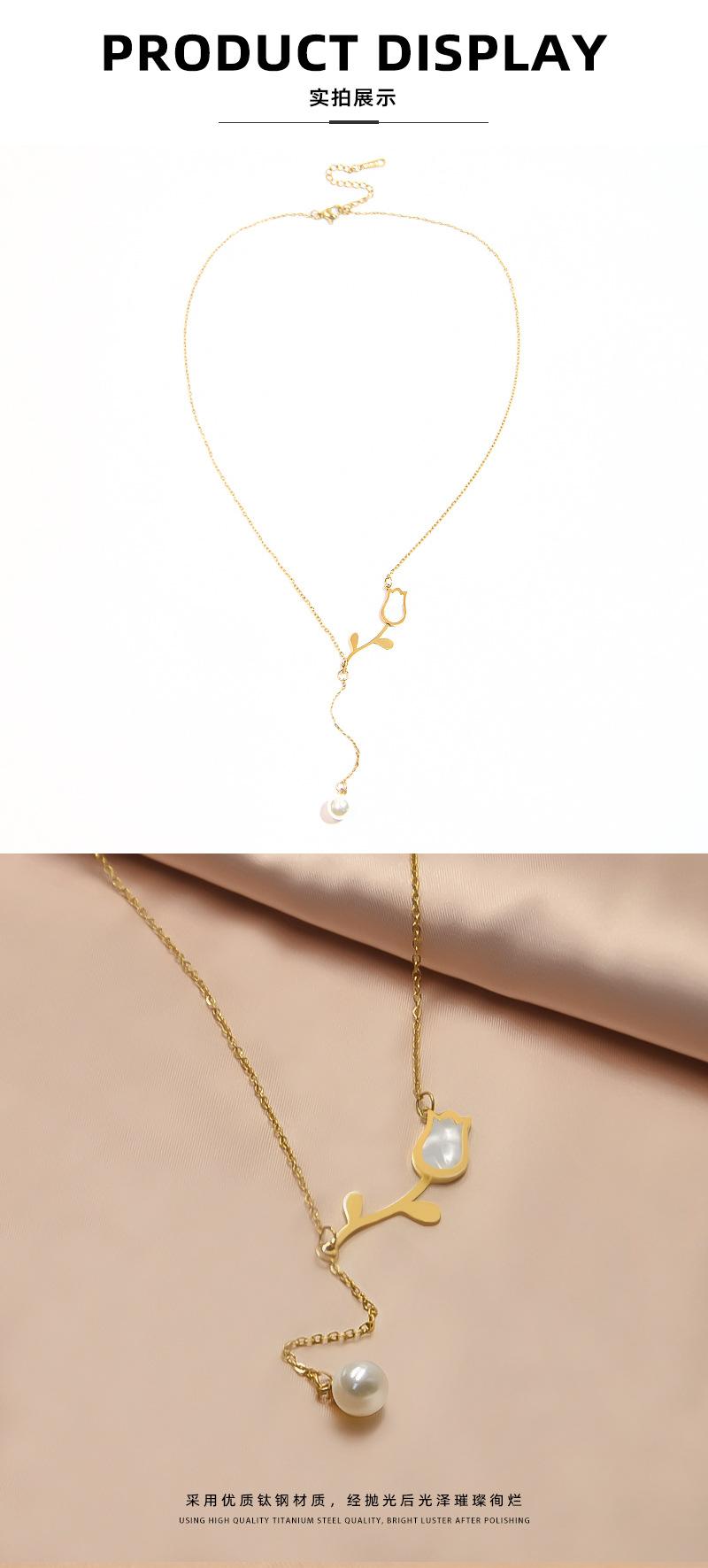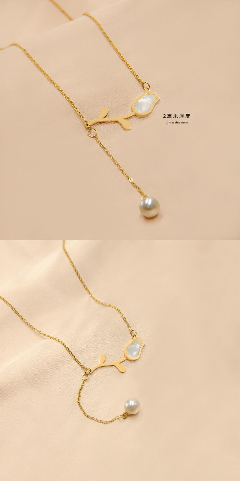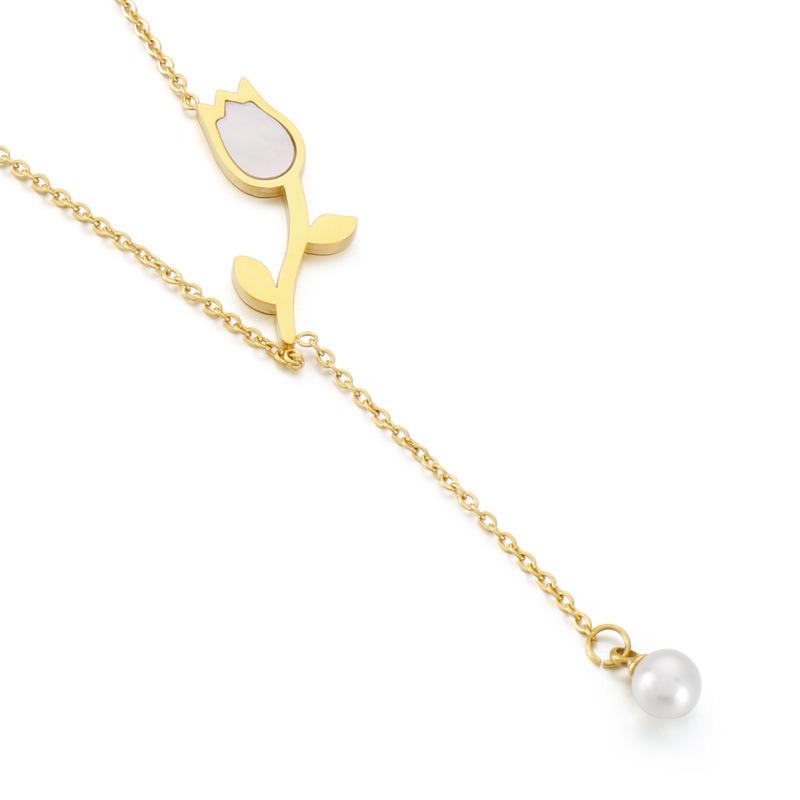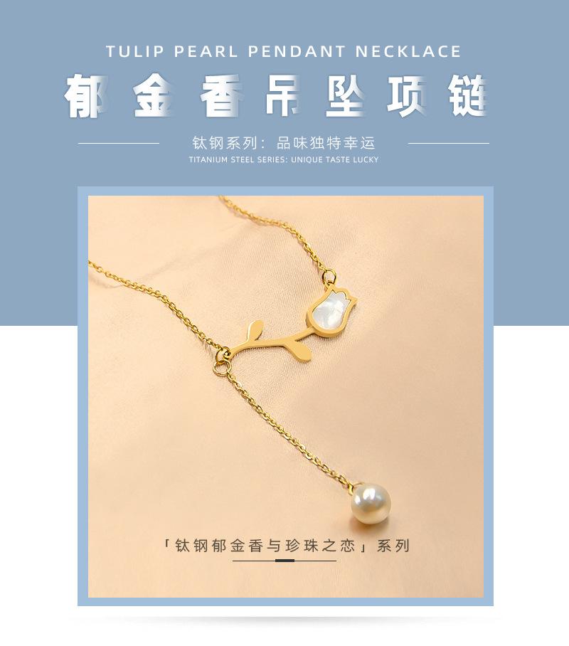 Collar con colgante sencillo de tulipán de nácar de venta caliente transfronteriza para mujer, joyería de acero de titanio chapado en oro de 18 quilates que no se desvanece