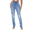Pantalones vaqueros de cintura alta, ajustados y versátiles, de moda, con rotos y abertura en los pies para mujer