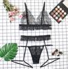 Lencería sexy de moda de comercio exterior transfronterizo Europa y Estados Unidos conjunto de tres piezas conjunto de liga de tres puntos perspectiva al por mayor
