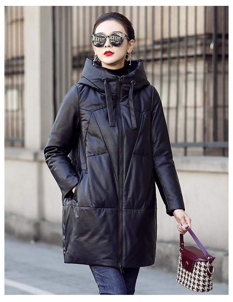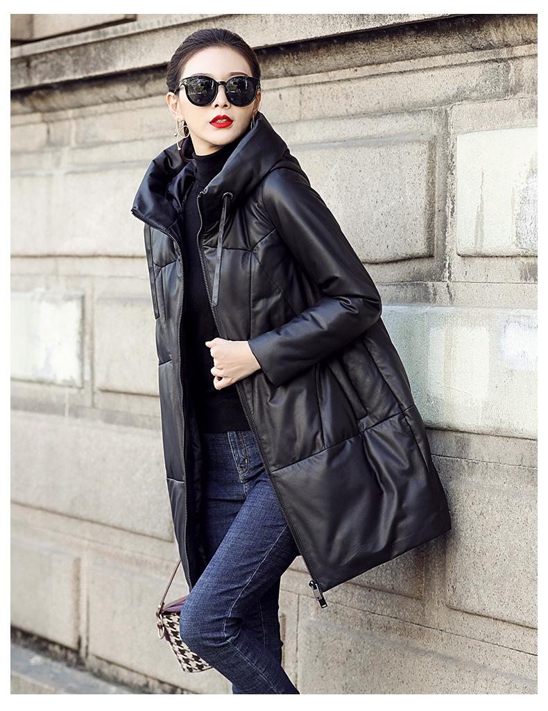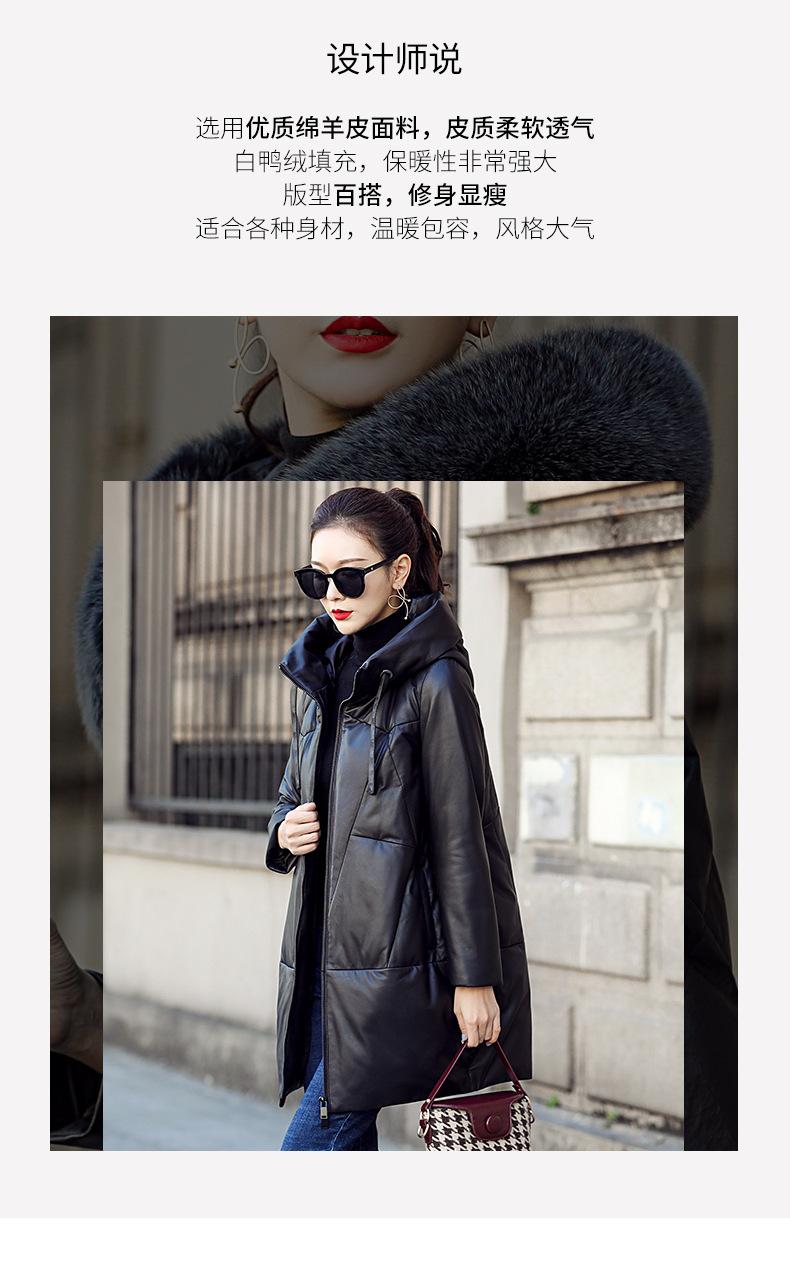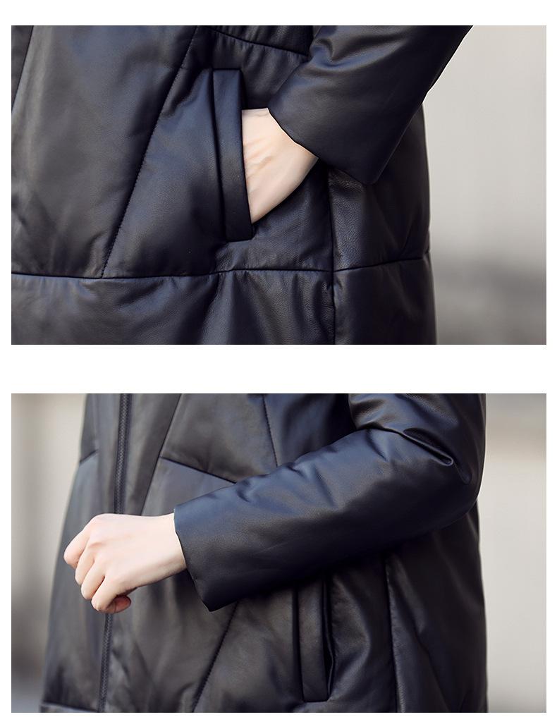 Chamarra de plumón de piel de cabra genuina Haining 2025 Nueva Largo medio Terciopelo Engrosado Invierno Negro Combinable