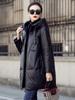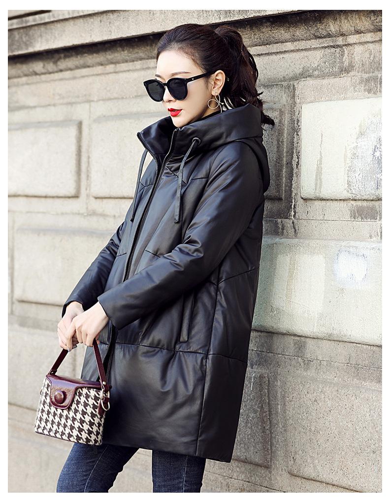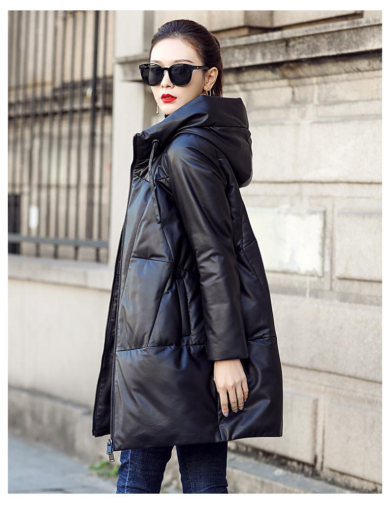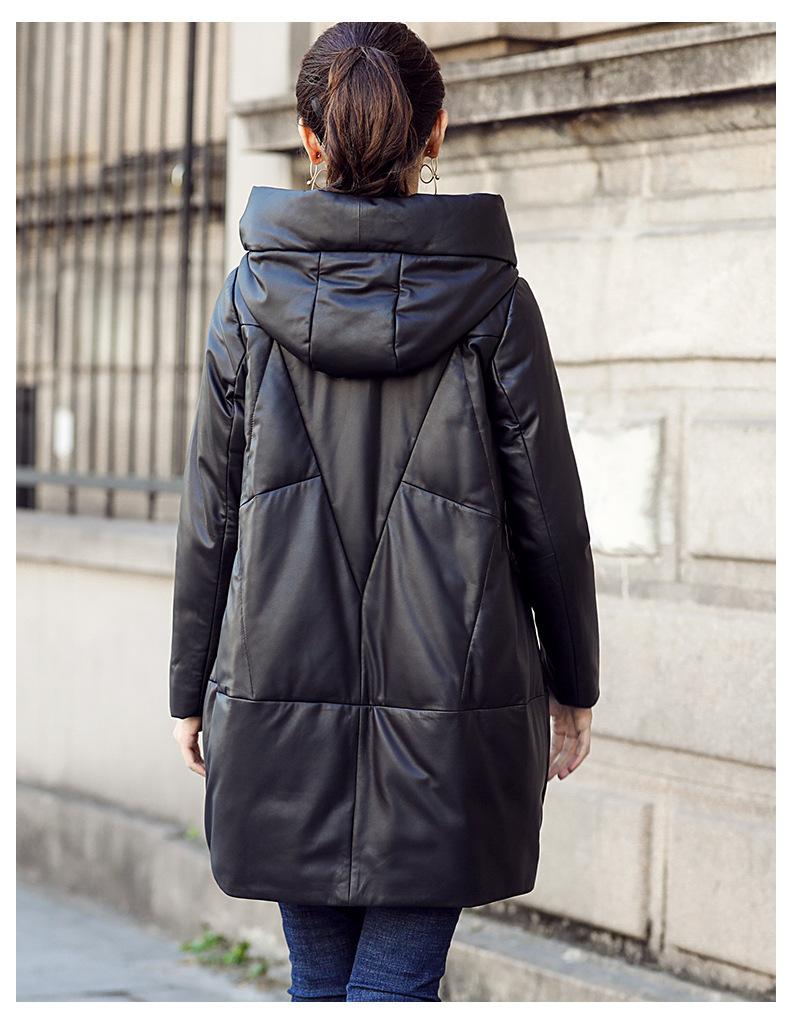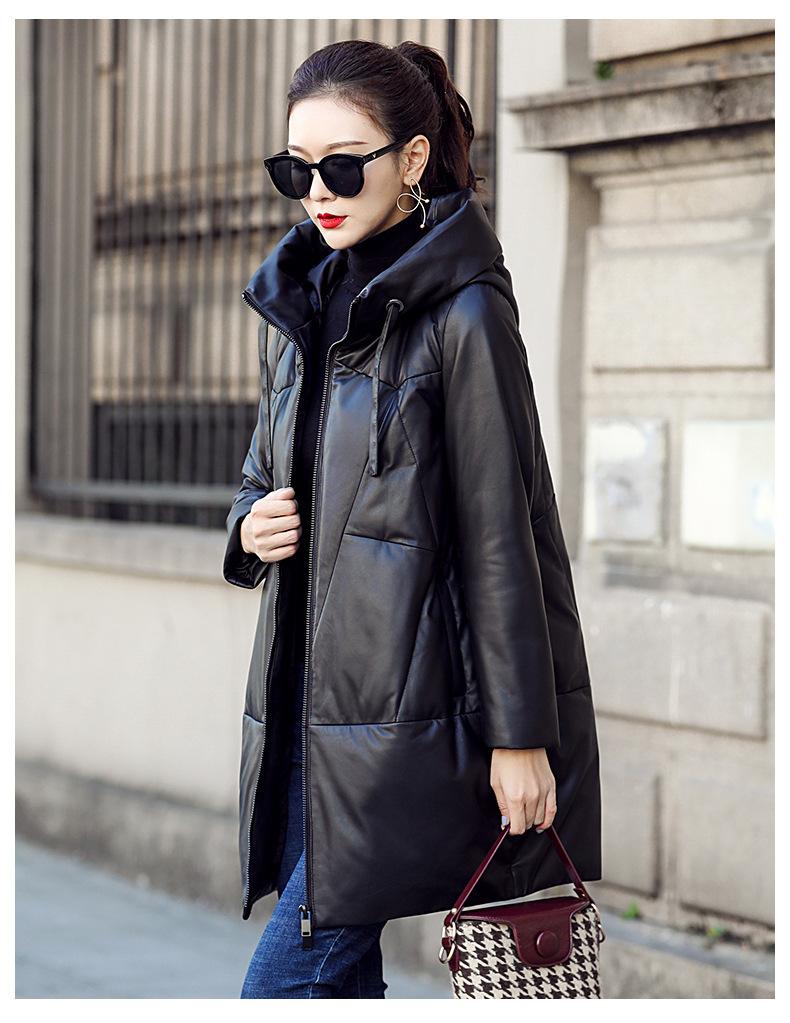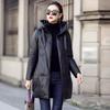 Chamarra de plumón de piel de cabra genuina Haining 2025 Nueva Largo medio Terciopelo Engrosado Invierno Negro Combinable