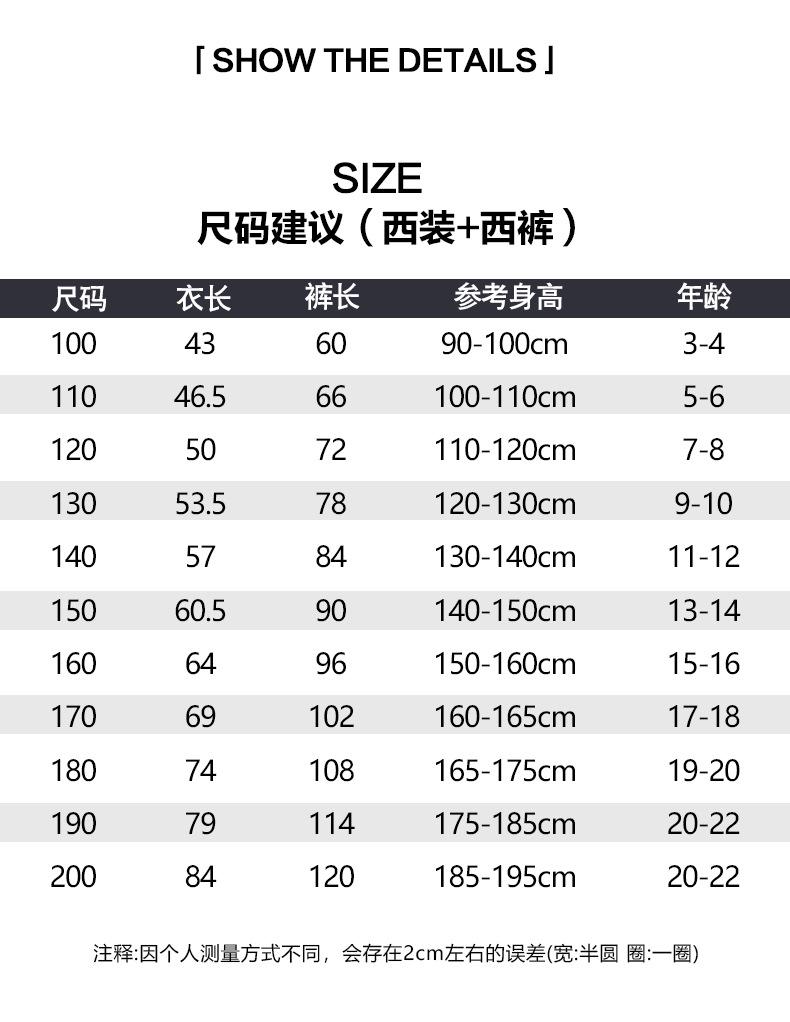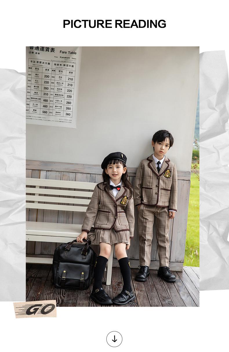 Boys two-piece suit (suit + trousers), Girl's two-piece suit (suit + skirt), Boys shirt three-piece suit (suit...