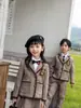 Conjunto de Uniforme de Primaria para Primavera y Otoño, Traje de Actuación Infantil de Dos Piezas Estilo Británico, Uniforme de Clase, Uniforme Rayado de Jardín de Niños