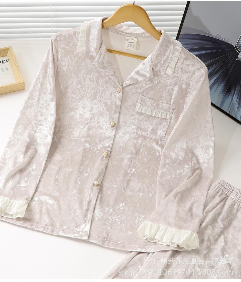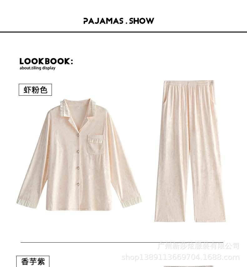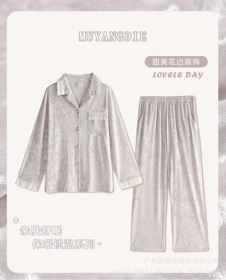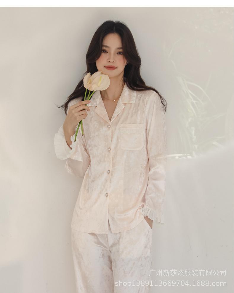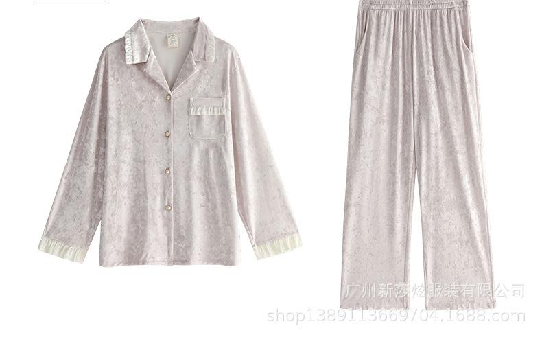 Pijama de Terciopelo Dorado para mujer otoño e invierno de manga larga pantalón de dos piezas rosa dulce holgado de alta calidad para el hogar se puede usar fuera