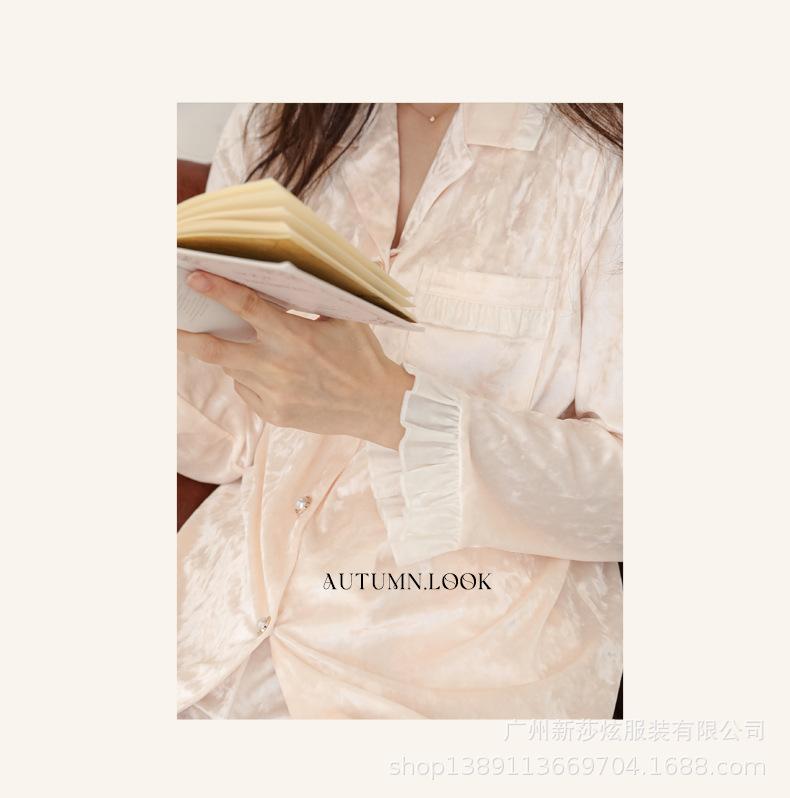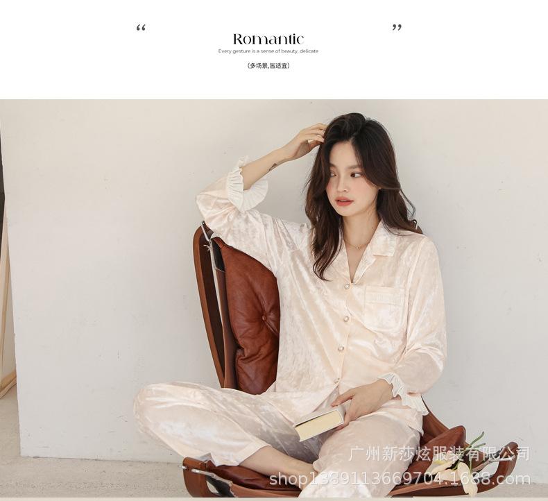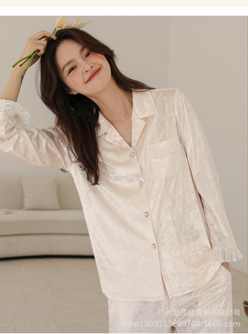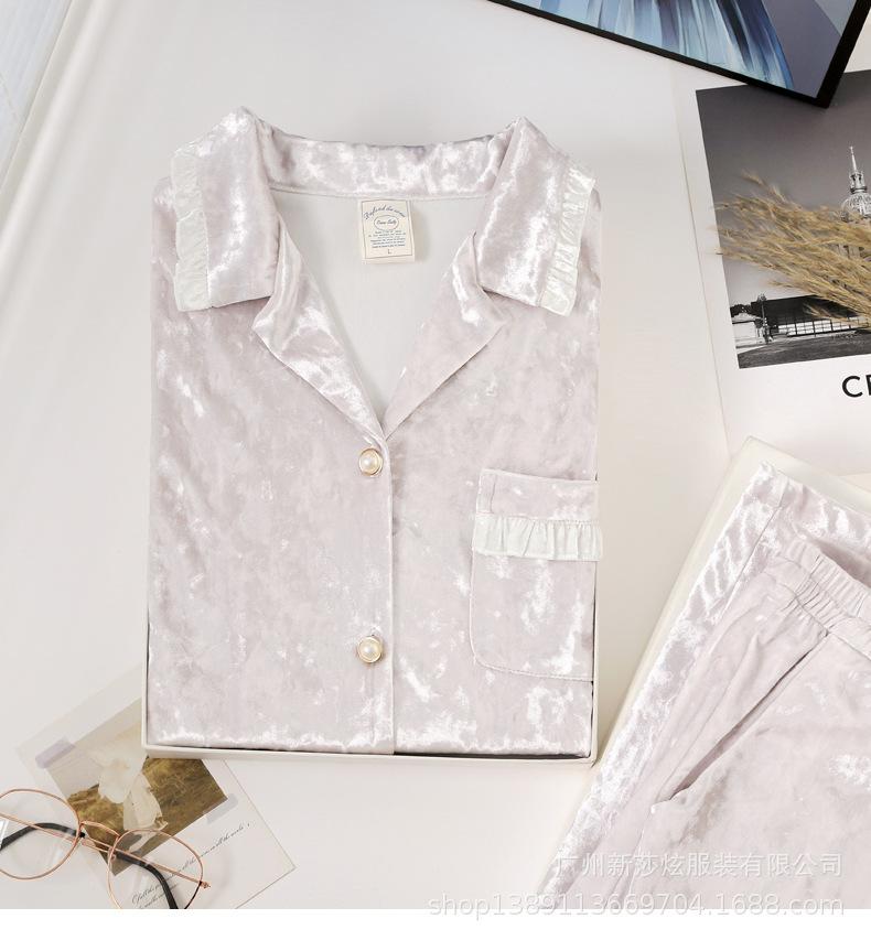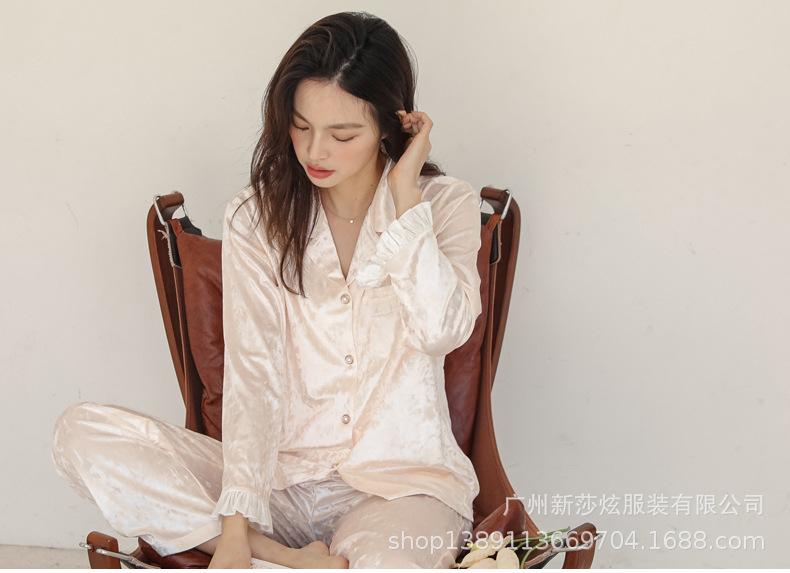 Pijama de Terciopelo Dorado para mujer otoño e invierno de manga larga pantalón de dos piezas rosa dulce holgado de alta calidad para el hogar se puede usar fuera