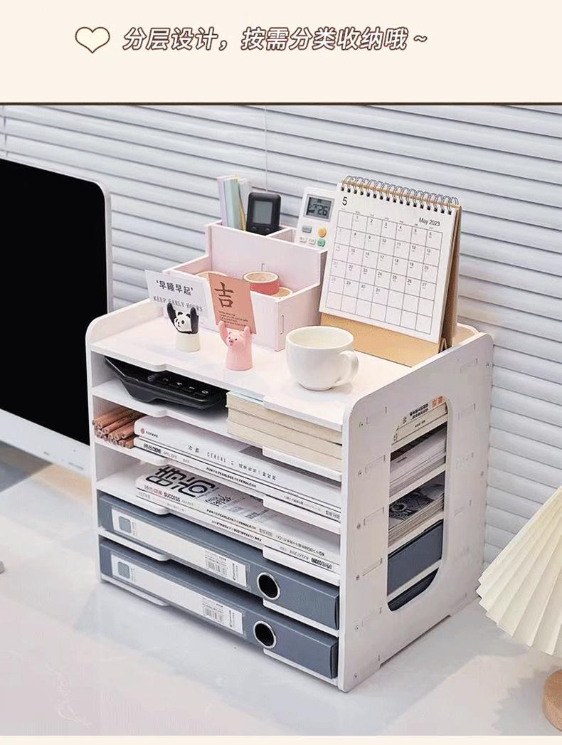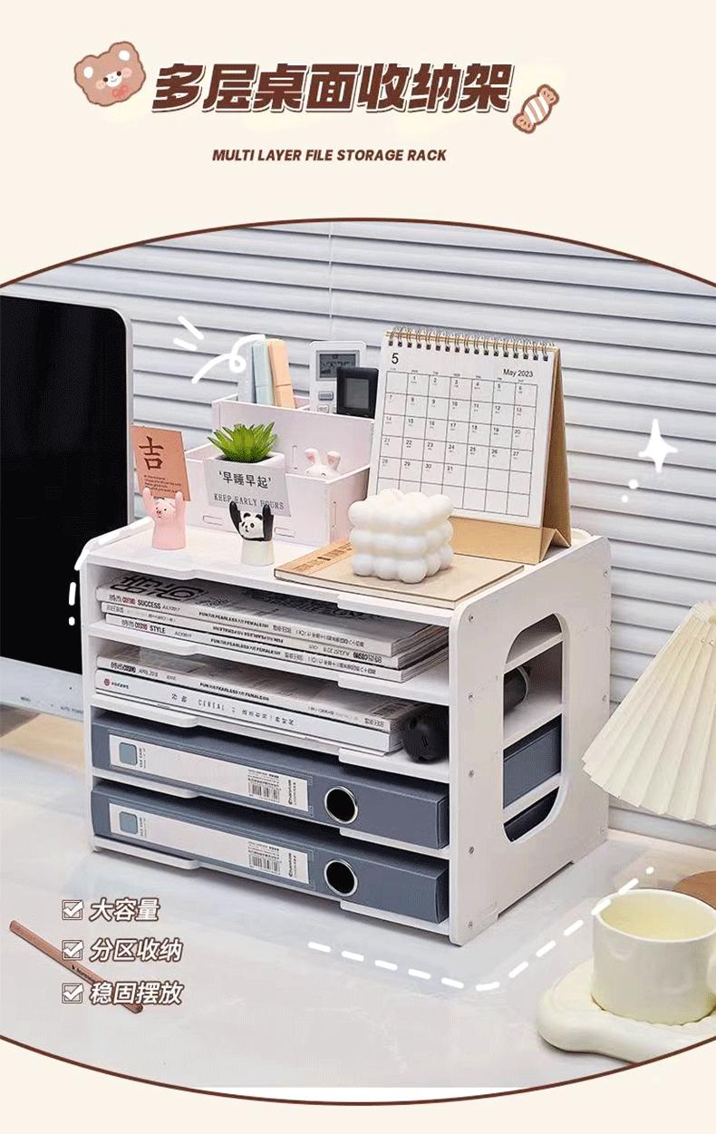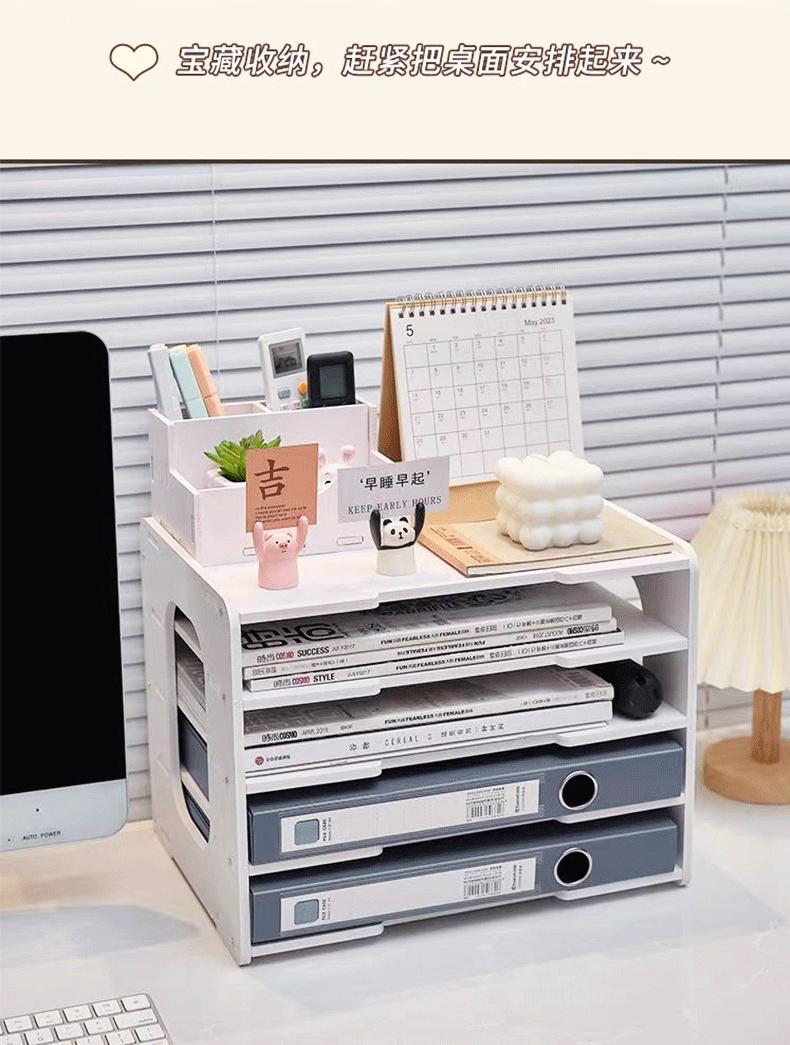 Caja de almacenamiento de archivos A4, estante de almacenamiento en capas, gran capacidad, suministros de oficina, estante de archivos de acabado, estante de libros de escritorio de varias capas