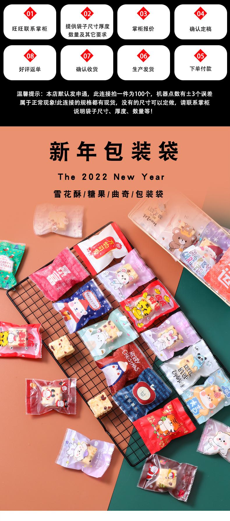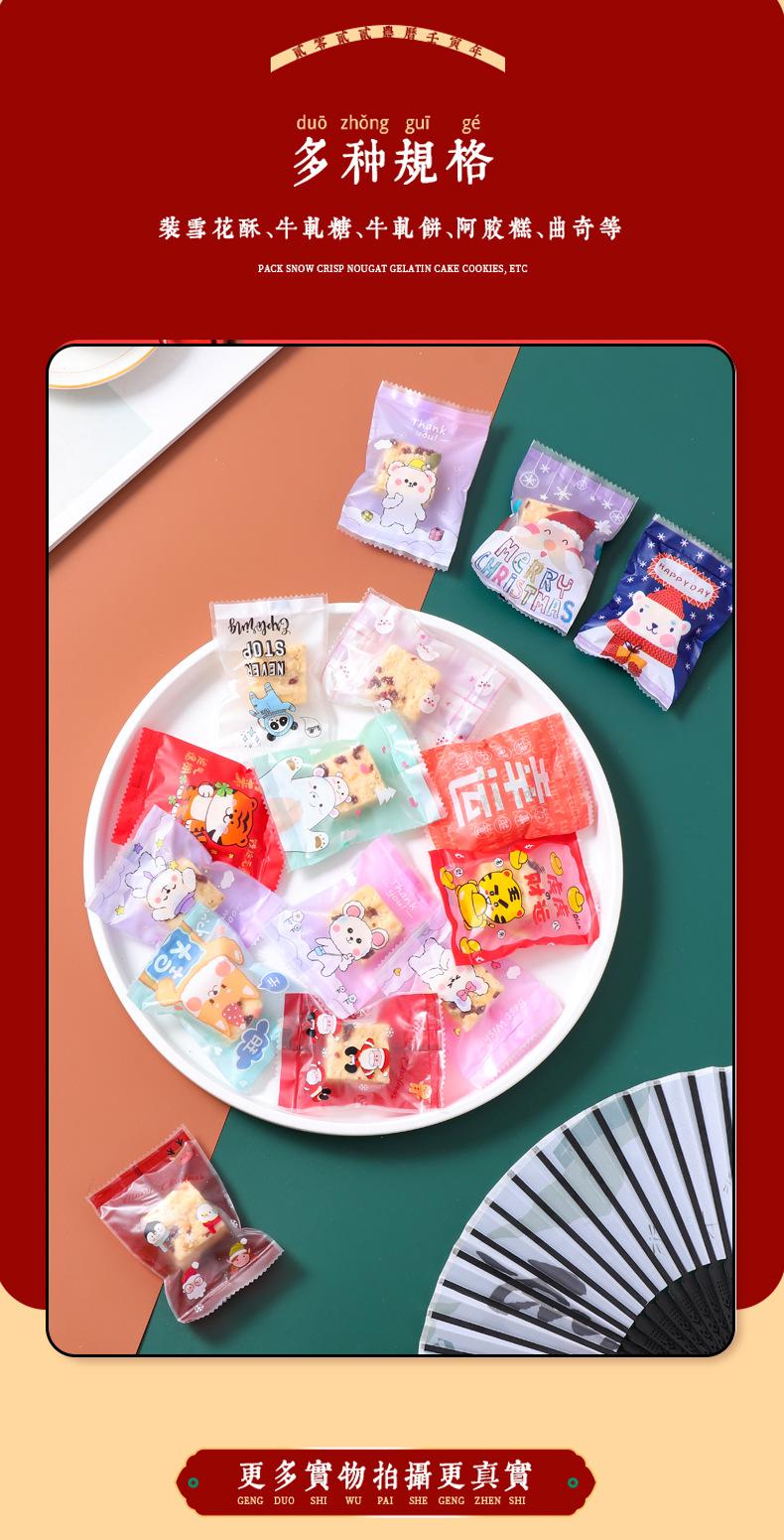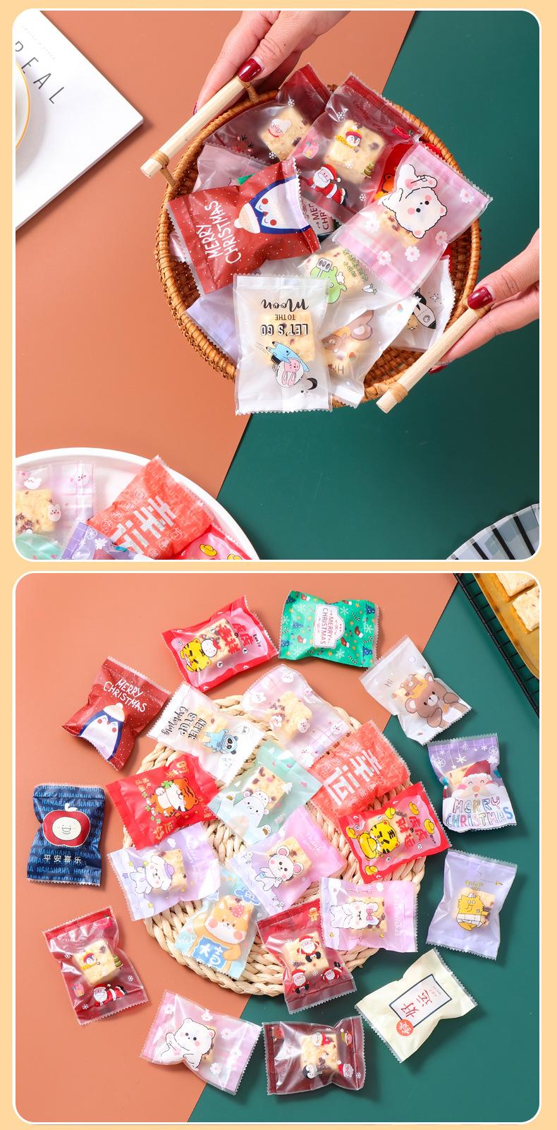 Bolsa para galletas horneadas esmeriladas hechas a mano puras, sellada a máquina, nueva, transparente, grado alimenticio, festiva, para pan, crujiente de copo de nieve, embalaje