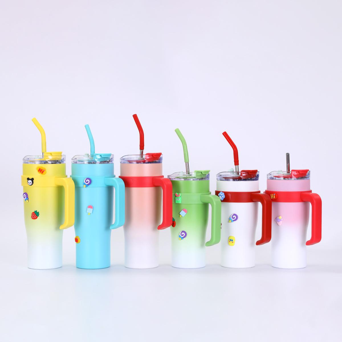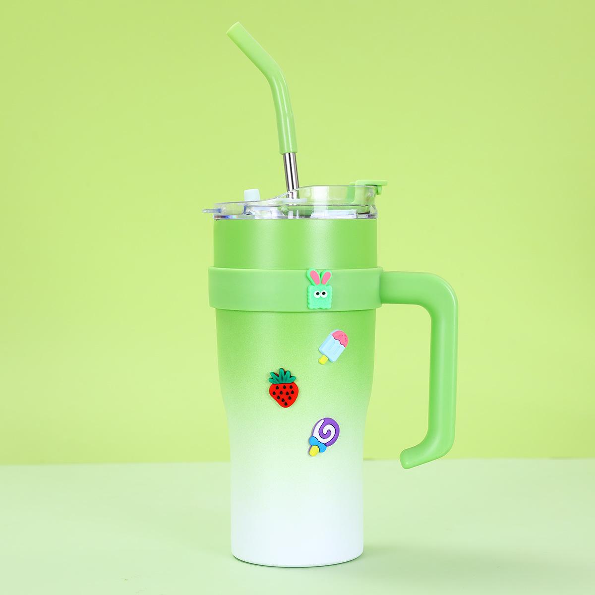 Termo portátil de acero inoxidable 304 para coche, con asa de pajita, para exteriores, de 40 oz