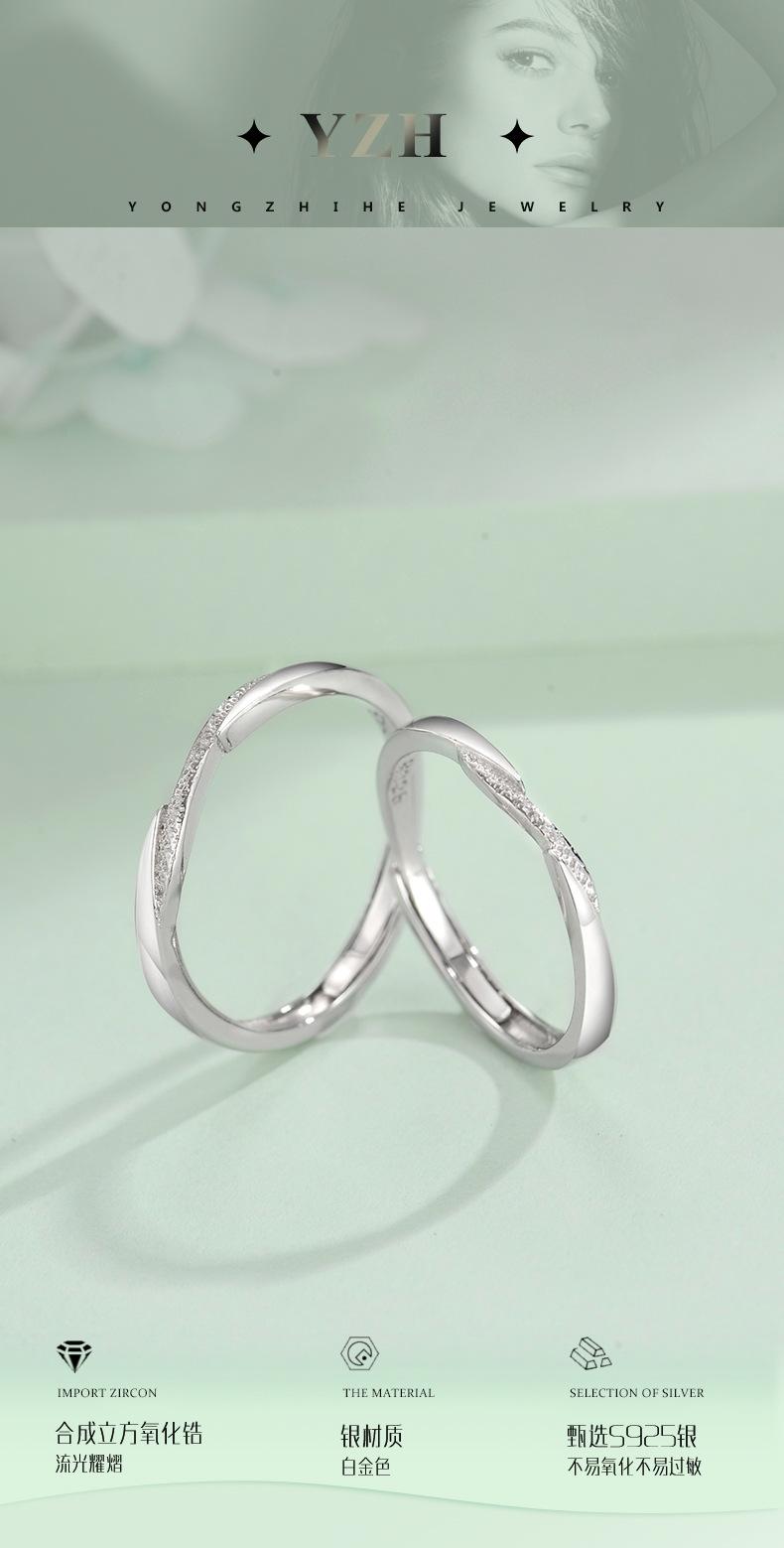 Anillo de pareja de plata esterlina s925 para mujer y hombre, diseño de nicho, abierto, ligero, de lujo, simple, para pareja, venta al por mayor de fábrica