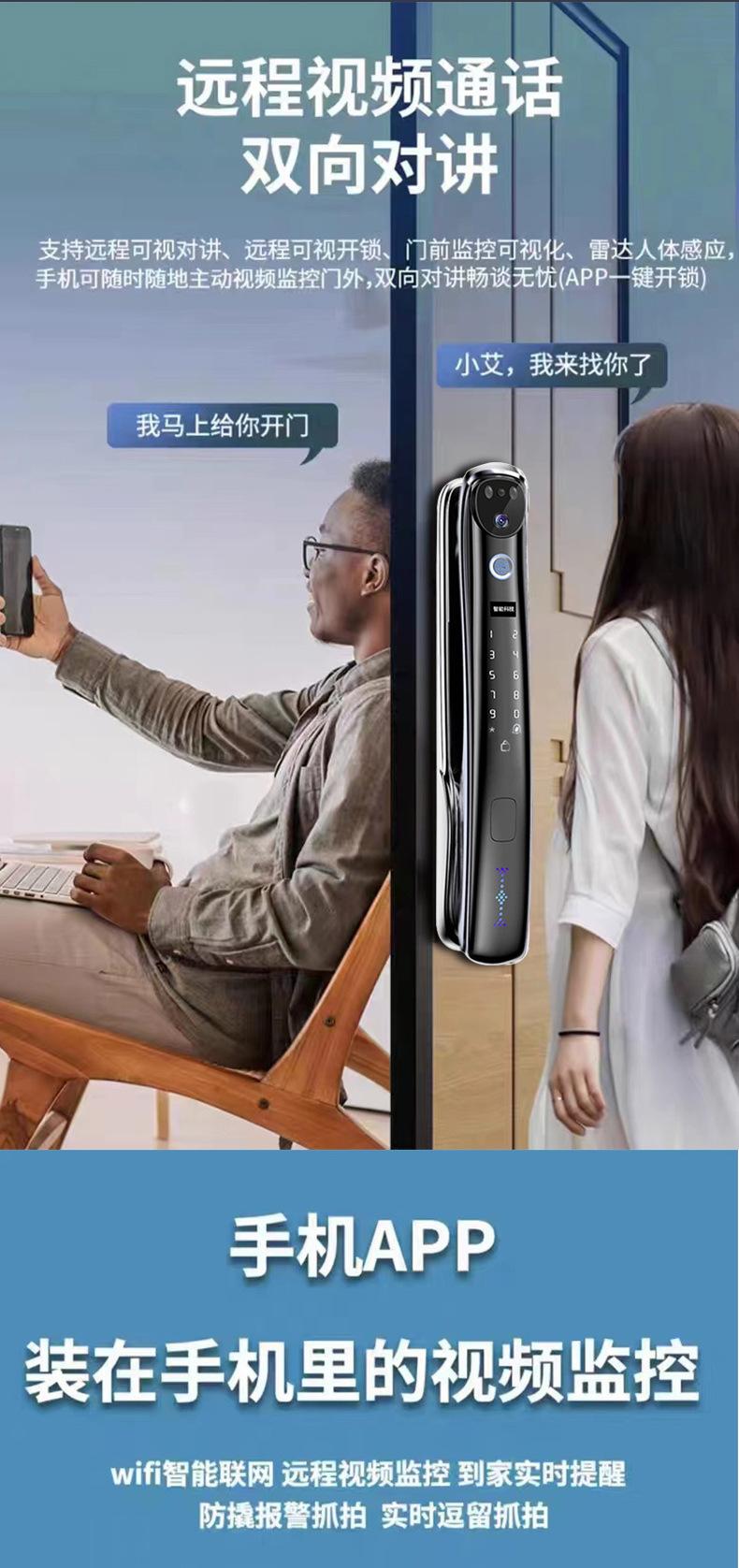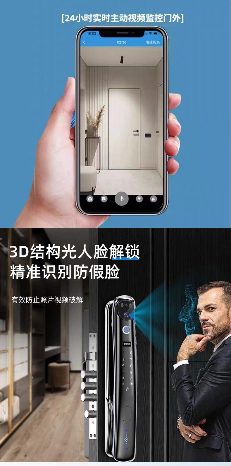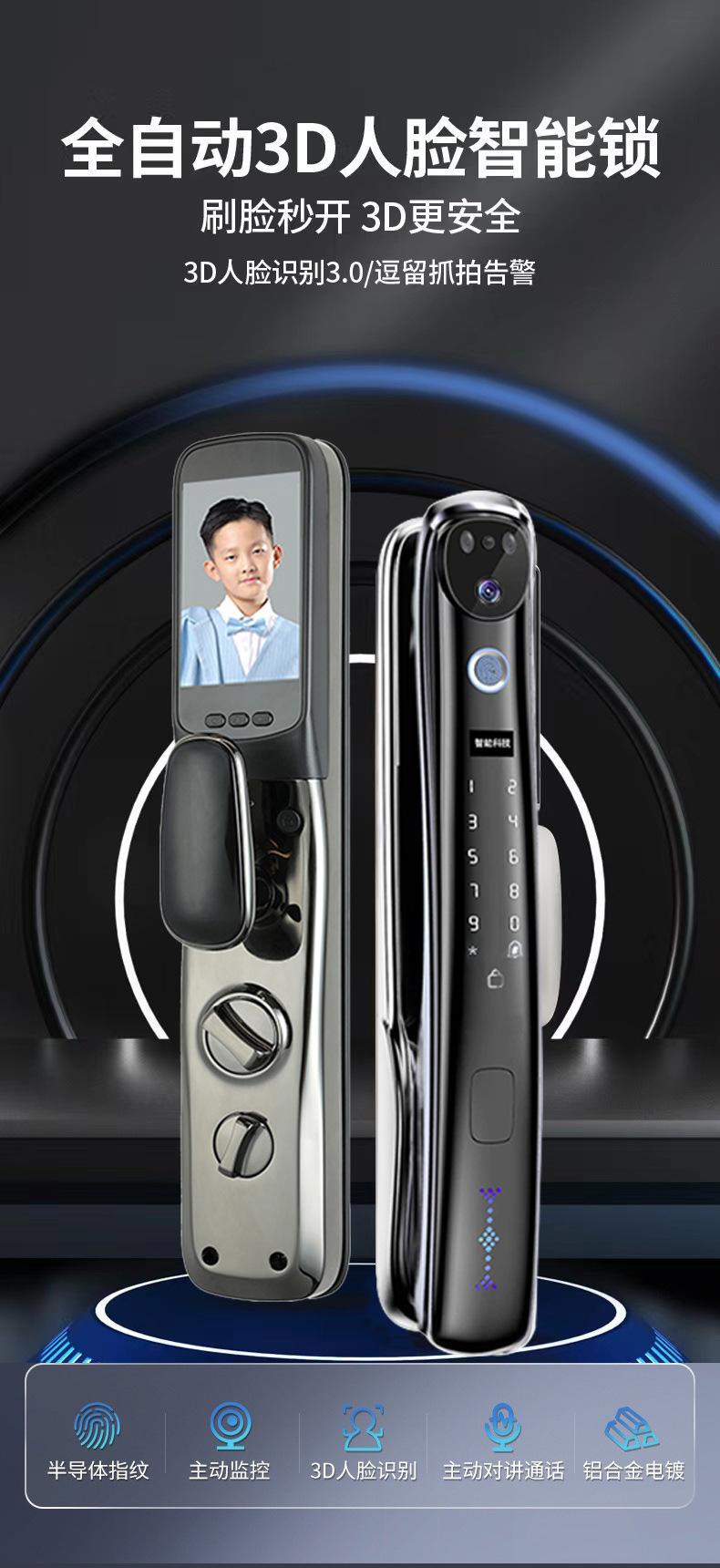 Cerradura de huella dactilar con reconocimiento facial 3D, totalmente automática, con contraseña, electrónica, intercomunicador, antirrobo, inteligente