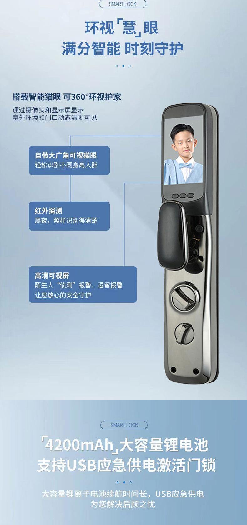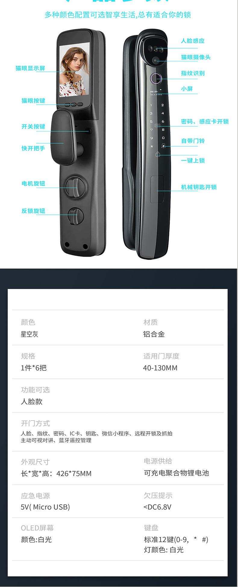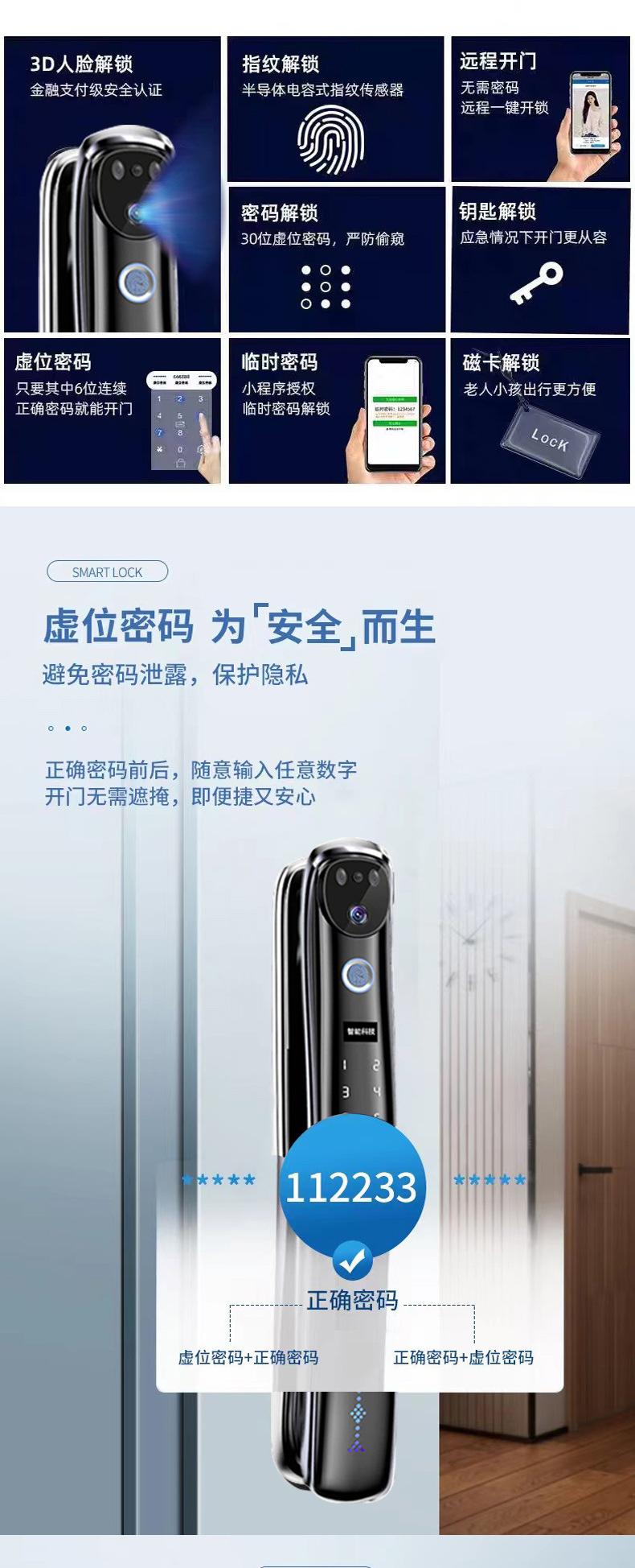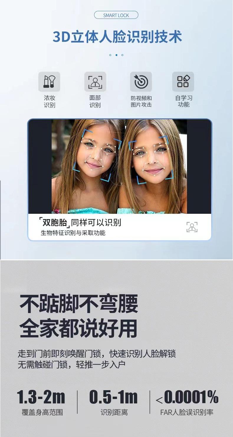 Cerradura de huella dactilar con reconocimiento facial 3D, totalmente automática, con contraseña, electrónica, intercomunicador, antirrobo, inteligente