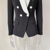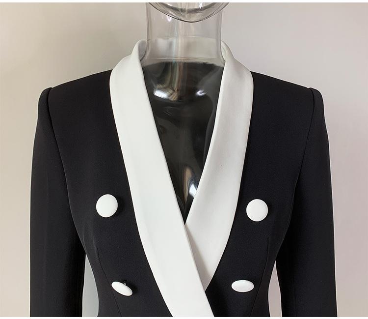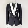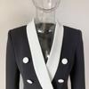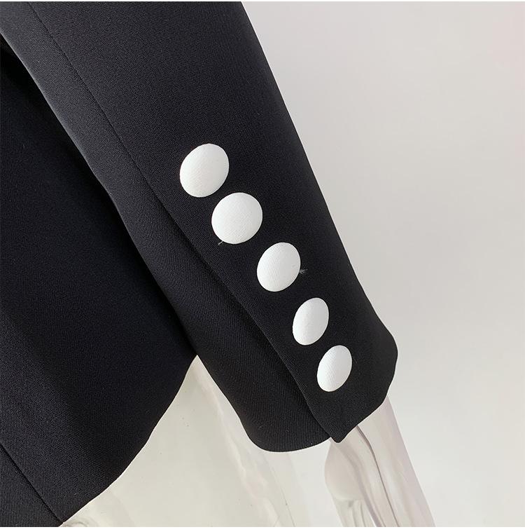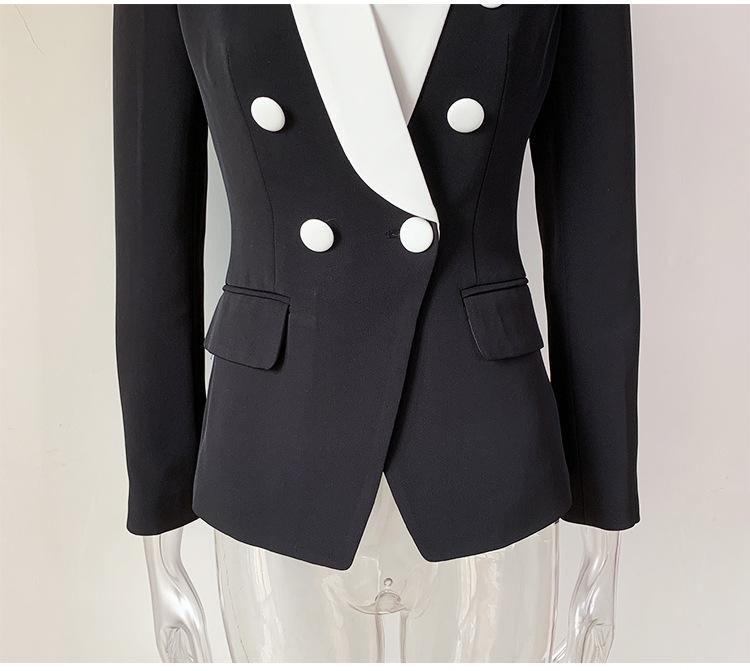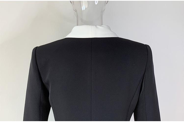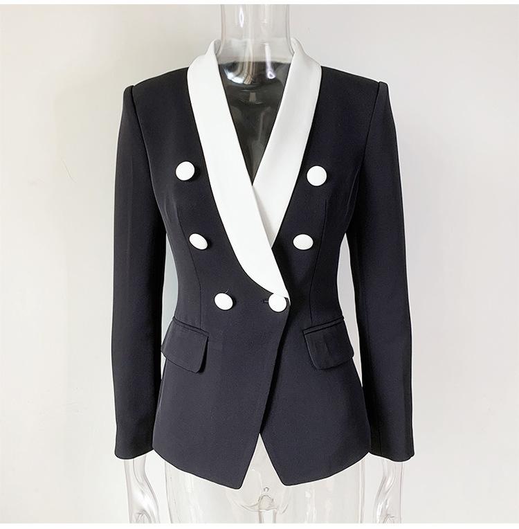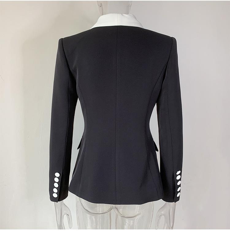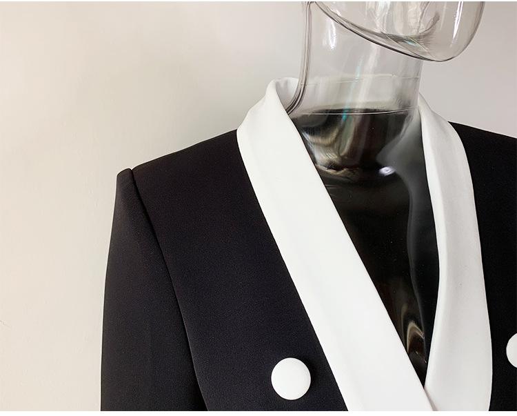 Chaqueta de traje pequeña de viajero con cuello chal, cruzada, con costuras en blanco y negro, de color liso, estilo europeo y americano de principios de otoño