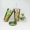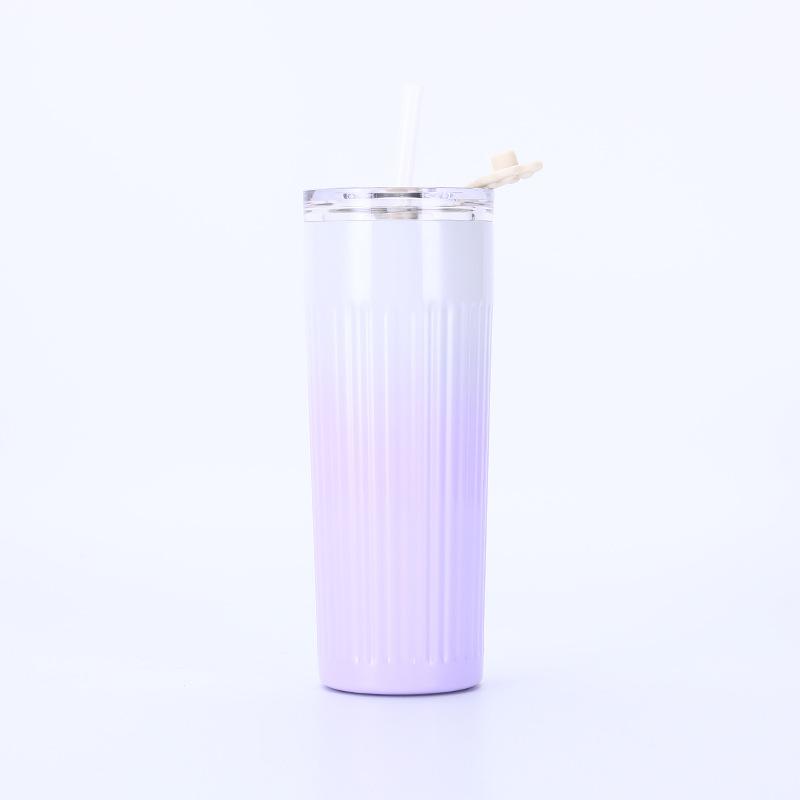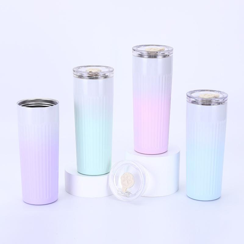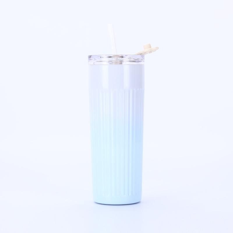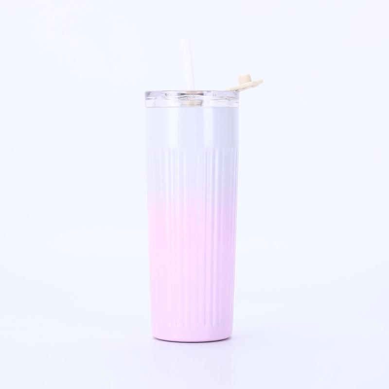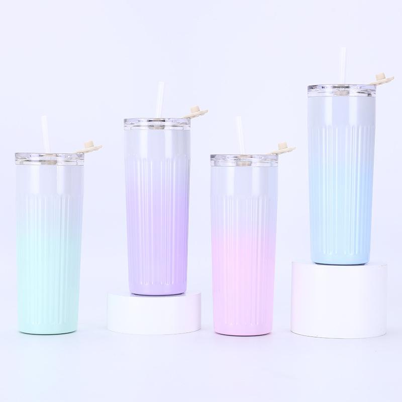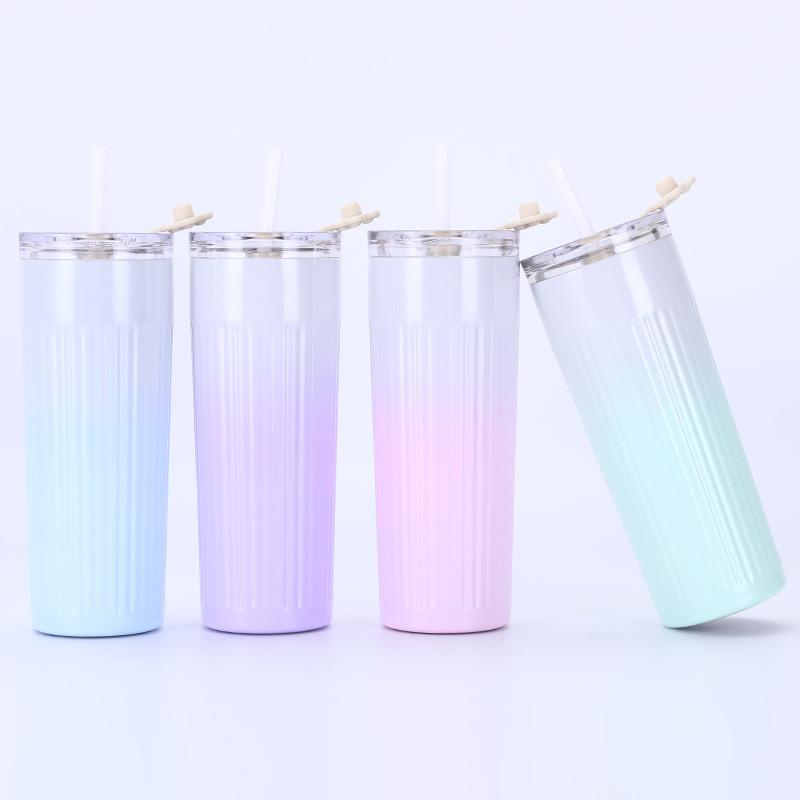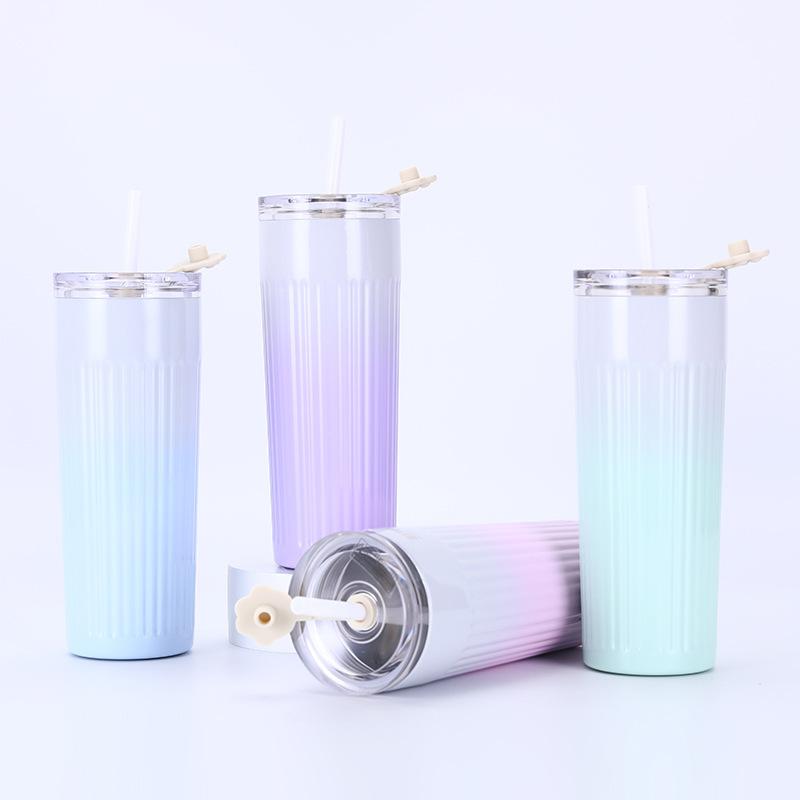 ¡Vaso de acero inoxidable 304 con pajita, personalizado, con degradado de color, para coche, oficina, café, termo a rayas!