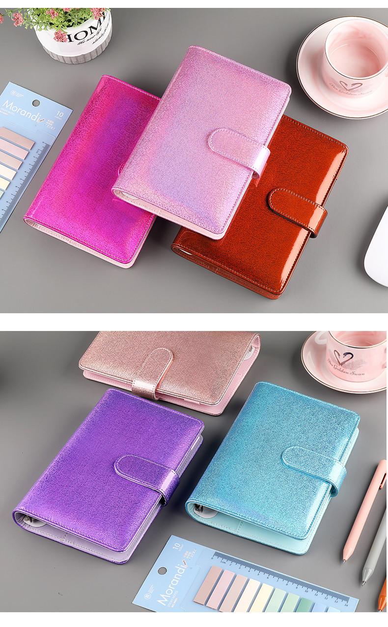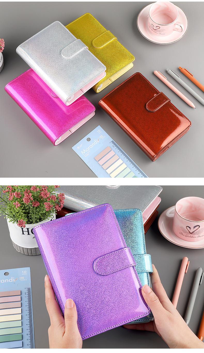 Libreta coreana estilo Ins de macaron de 6 agujeros, cuaderno de hojas sueltas, cuaderno de PU A5A6, libro de tarjetas con logotipo imprimible