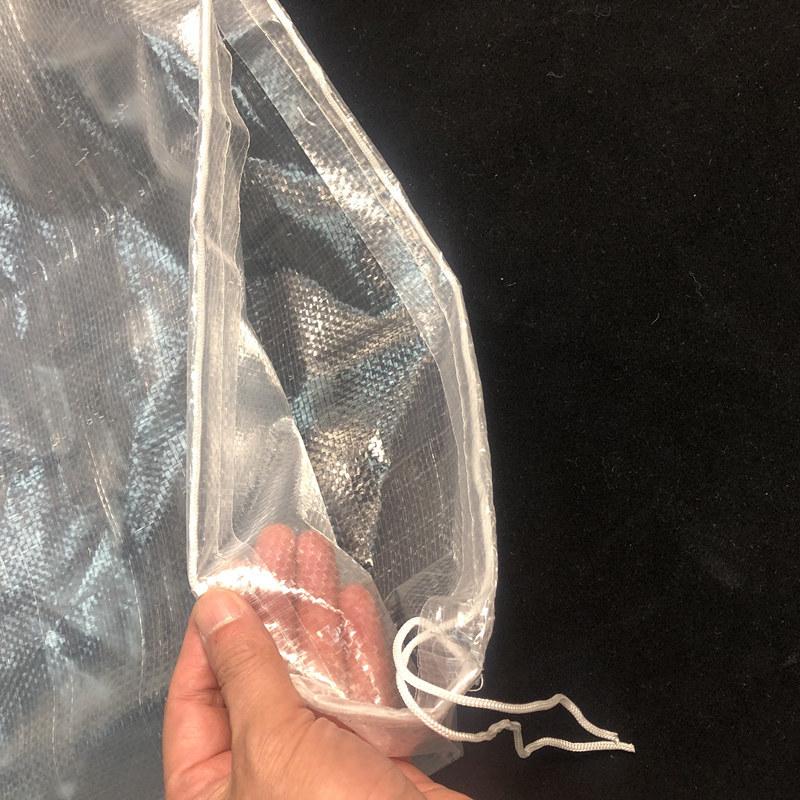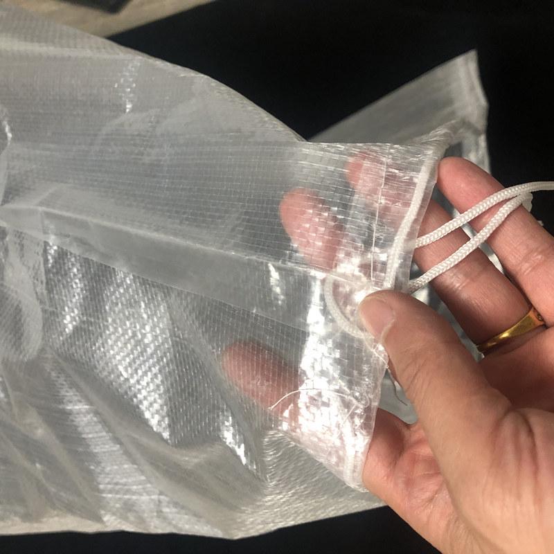 Bolsa tejida de plástico de fondo cuadrado, transparente, impermeable, de cartón cuadrado, bolsa de tela enrollada, bolsa de piel de serpiente con cordón.