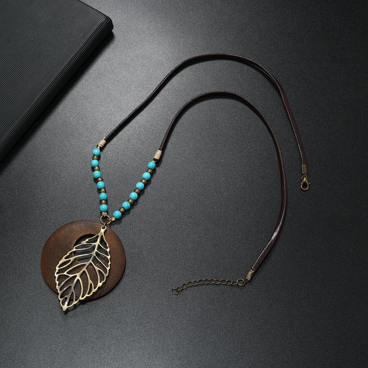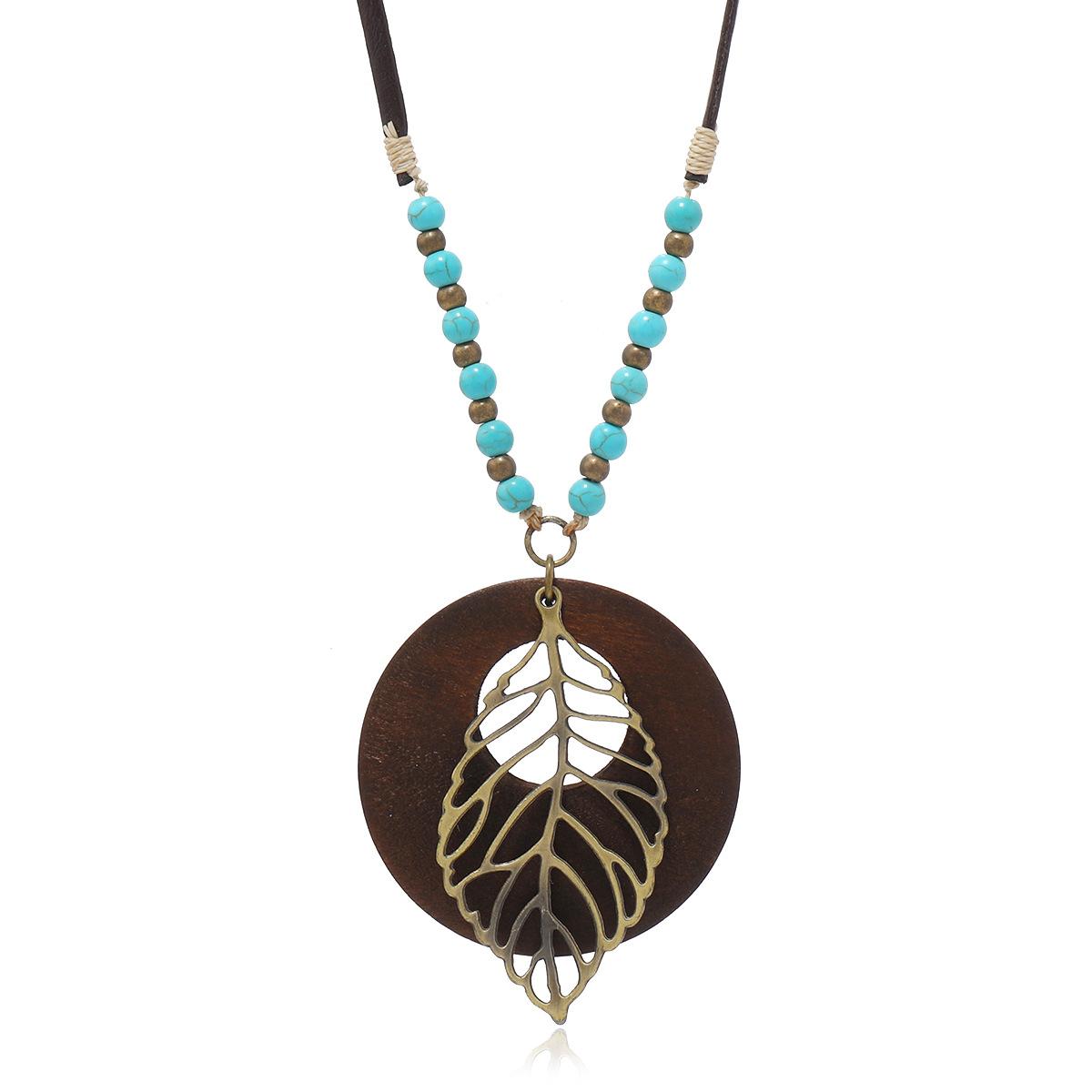 Material: PU+aleación+hilo encerado+turquesa+virutas de madera