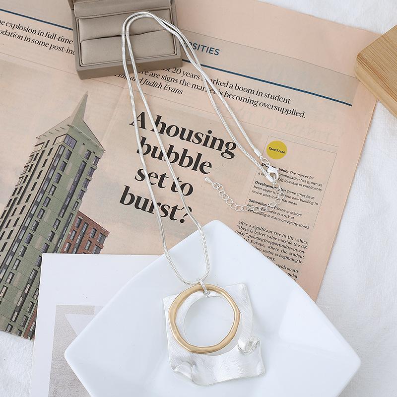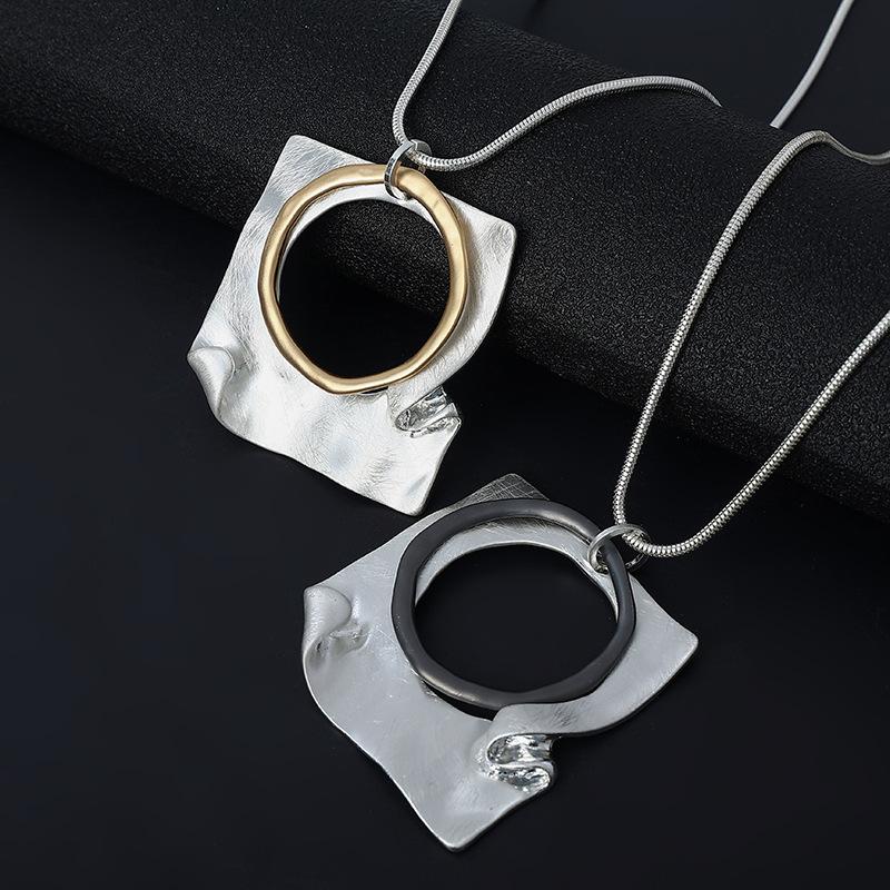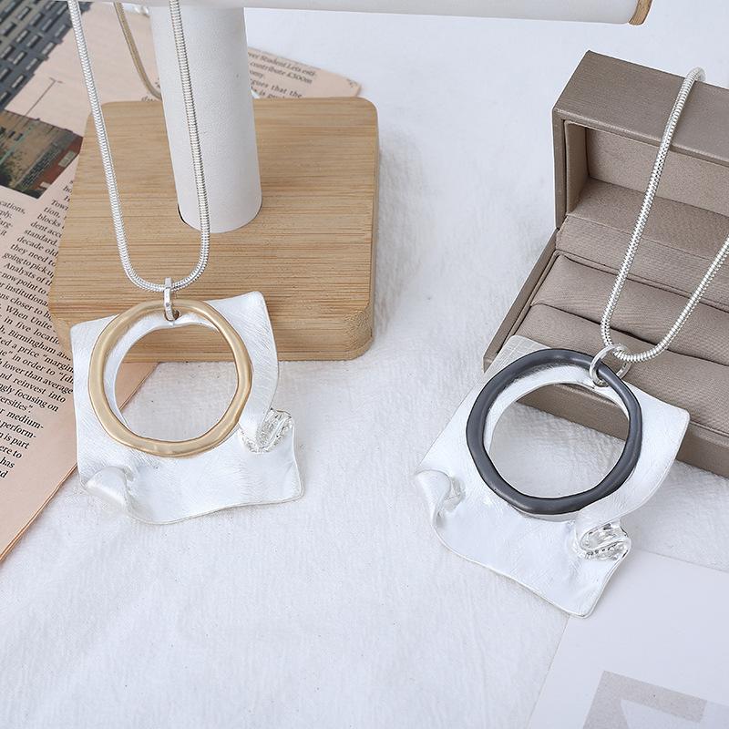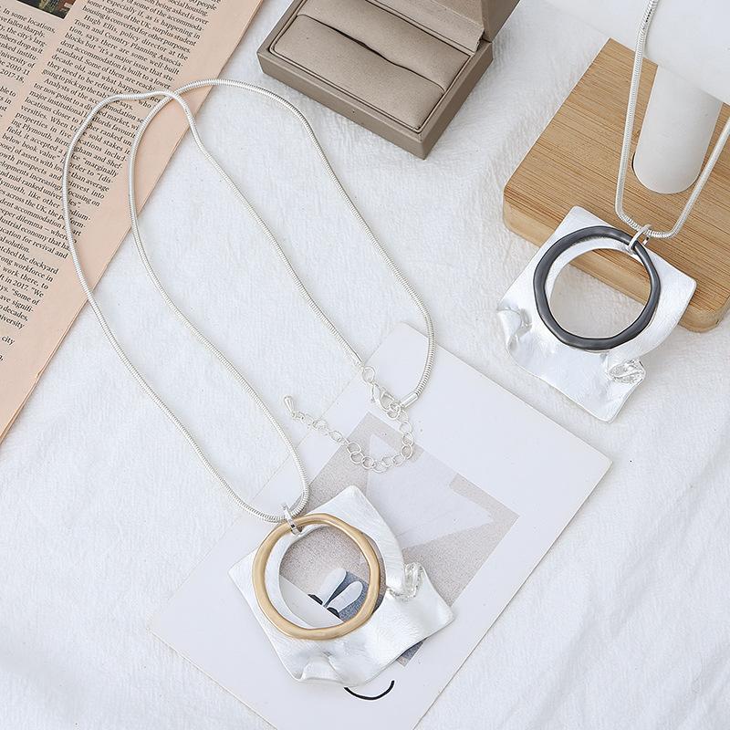 Collar con colgante sencillo retro de aleación cuadrada larga para mujer, joyería de otoño, comercio exterior de Amazon