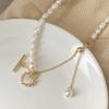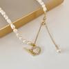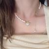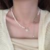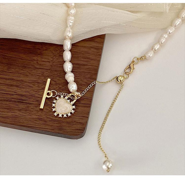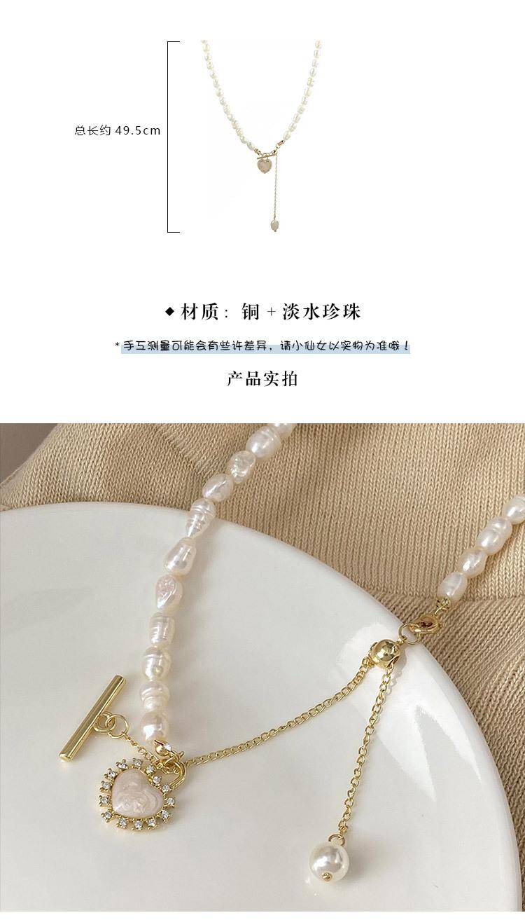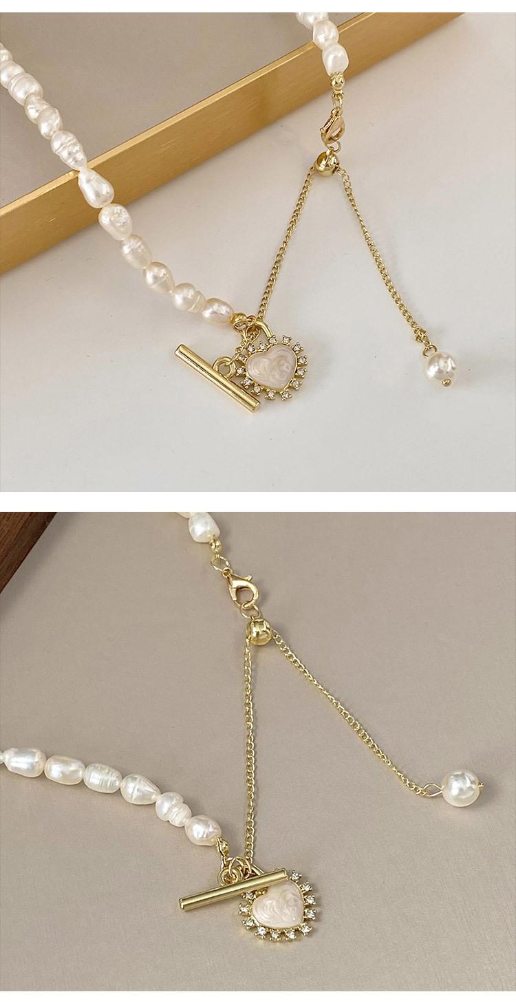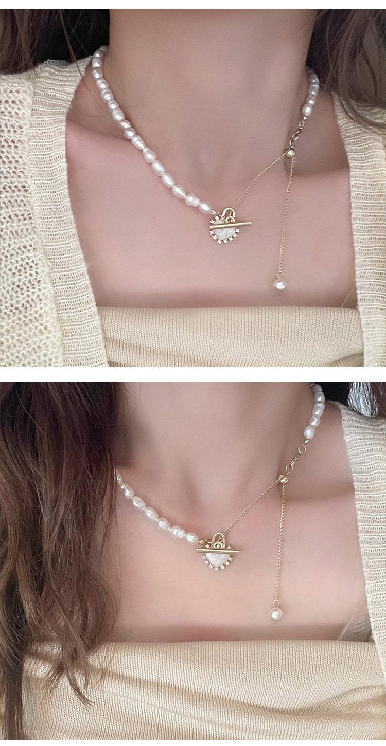 Collar de Concha de Amor con Perla Empalmada Suave Francesa para Mujer Retro Lujo Ligero Nicho Accesorios Cadena Clavicular