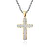 Collar con cruz de diamantes de dos colores con patrón aleatorio nuevo y original, listo para la venta, colgante con accesorios de acero de titanio para hombres.