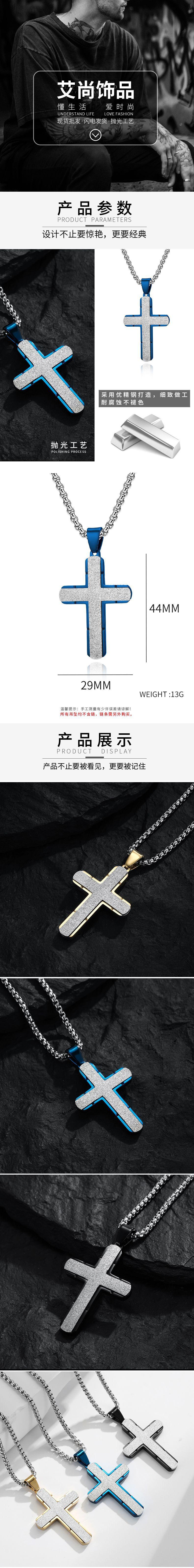 Nuevo diseño de colgante de cruz de acero inoxidable para hombre, estilo europeo y americano, collar de Emery de moda transfronterizo, joyería