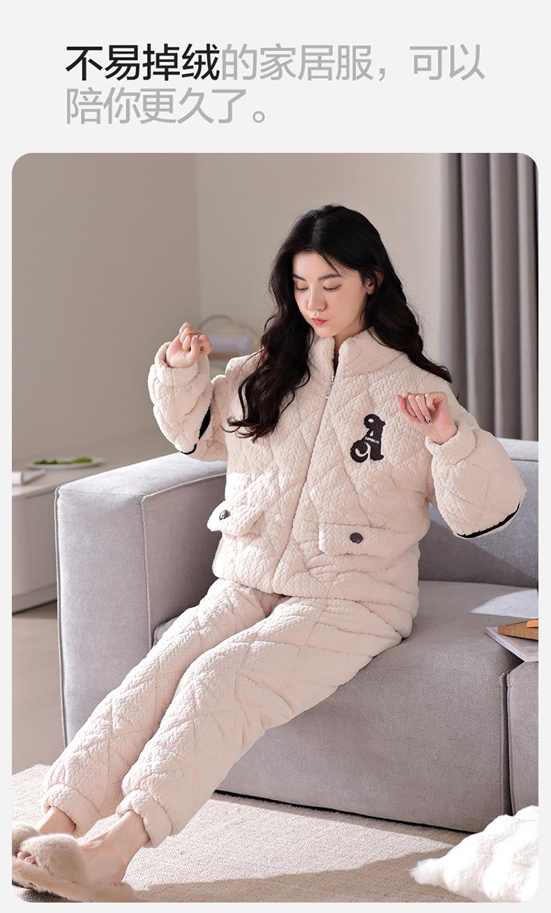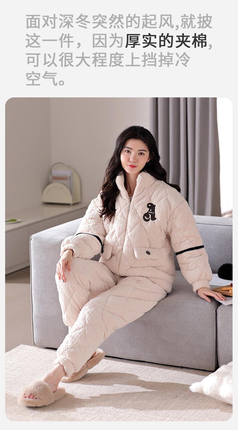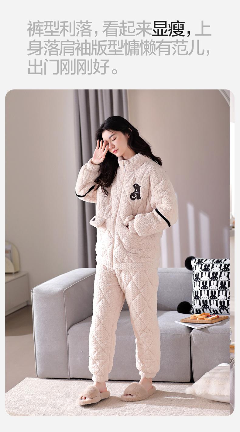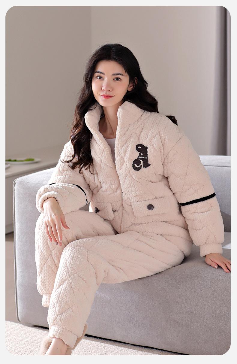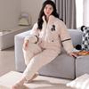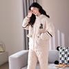 Nuevo pijama de invierno para mujer, cárdigan acolchado con forro polar, terciopelo de leche engrosado tallado, se puede usar al aire libre, traje de ocio para el hogar