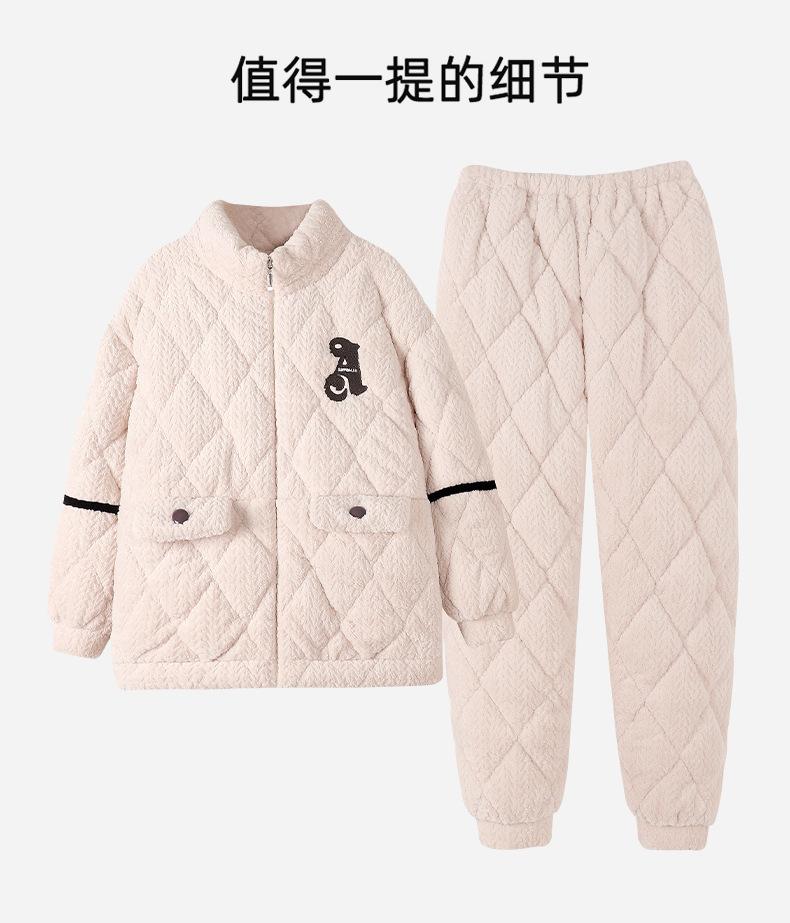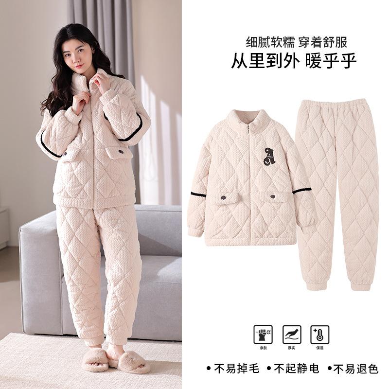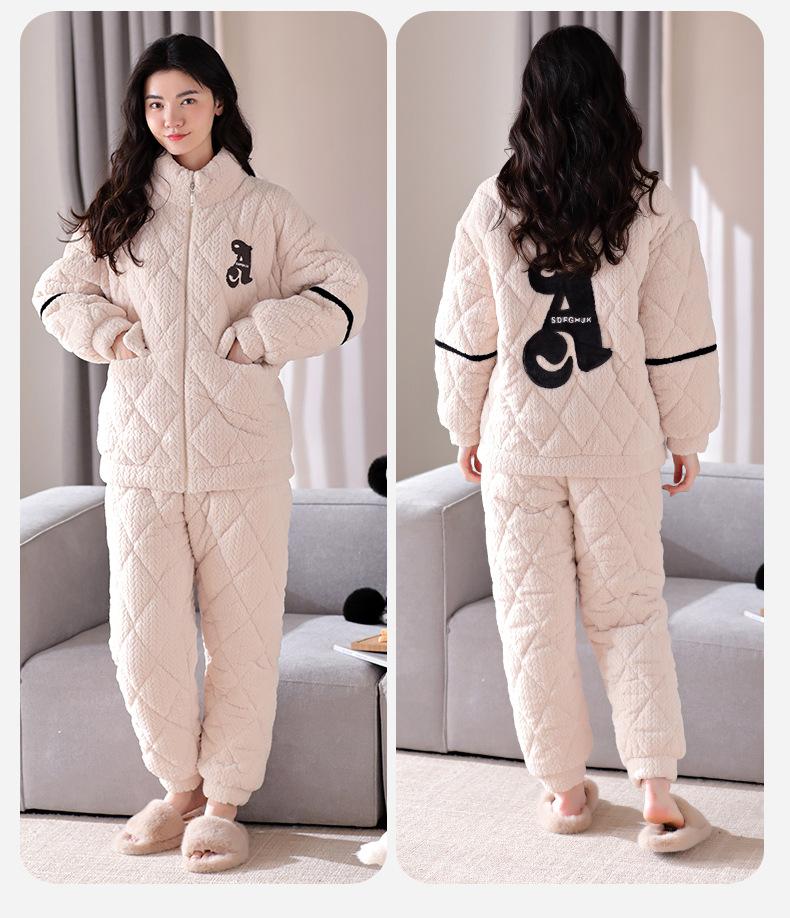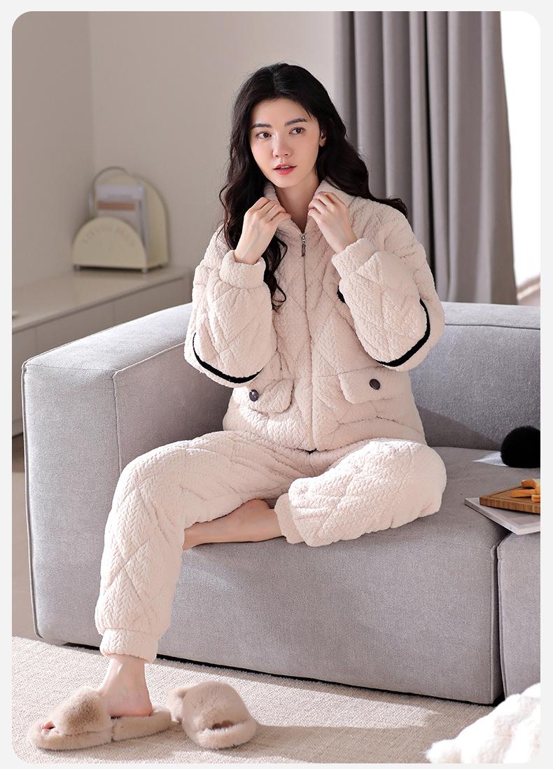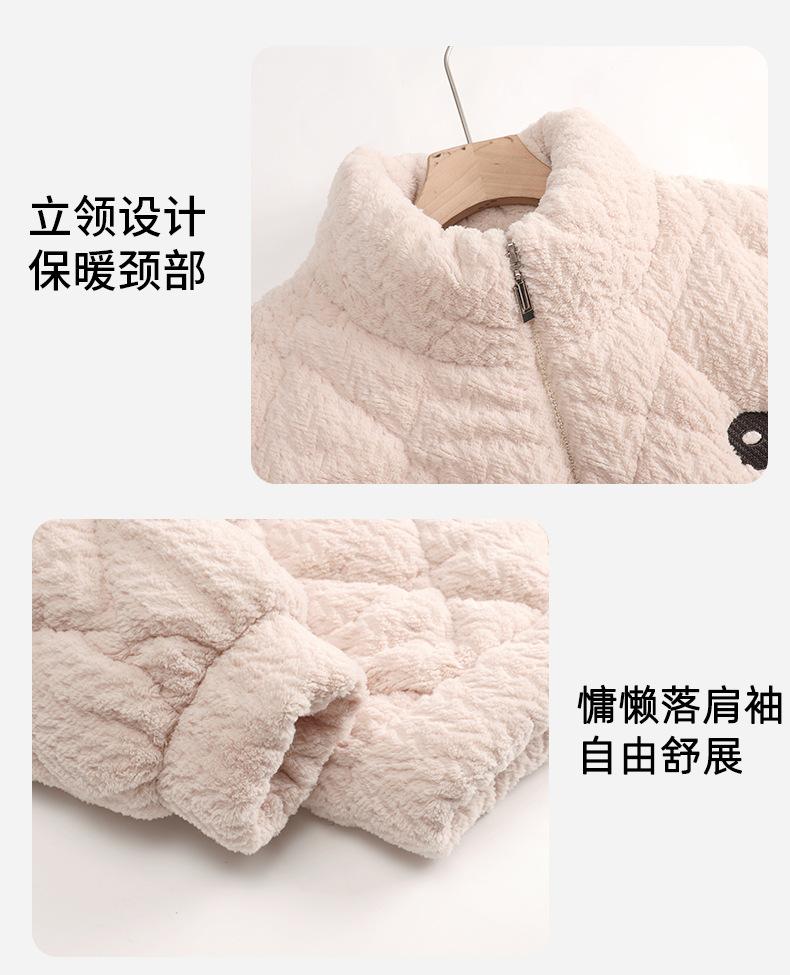 Nuevo pijama de invierno para mujer, cárdigan acolchado con forro polar, terciopelo de leche engrosado tallado, se puede usar al aire libre, traje de ocio para el hogar