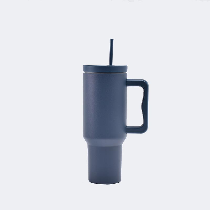 Nuevo vaso para coche de acero inoxidable de 40 oz transfronterizo, gran capacidad, aislamiento térmico, vaso para hielo frío, portátil, con asa, vaso con pipeta