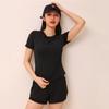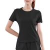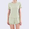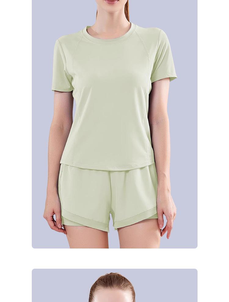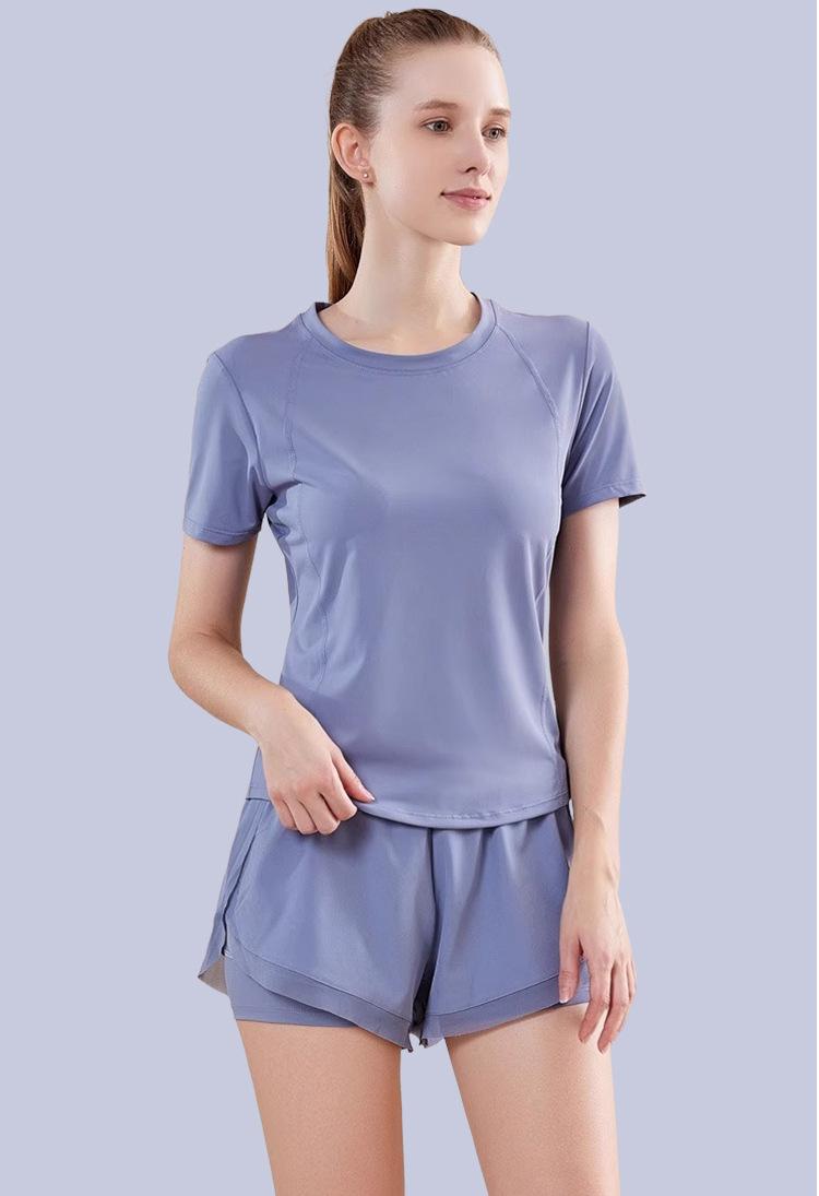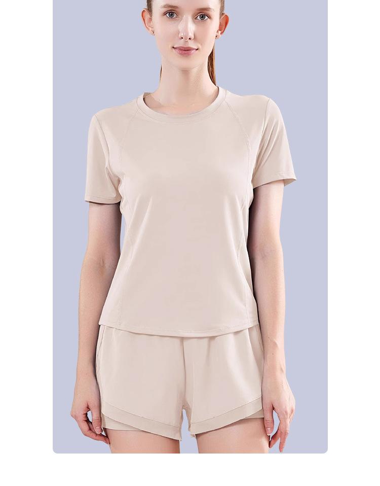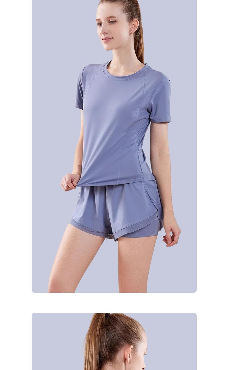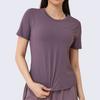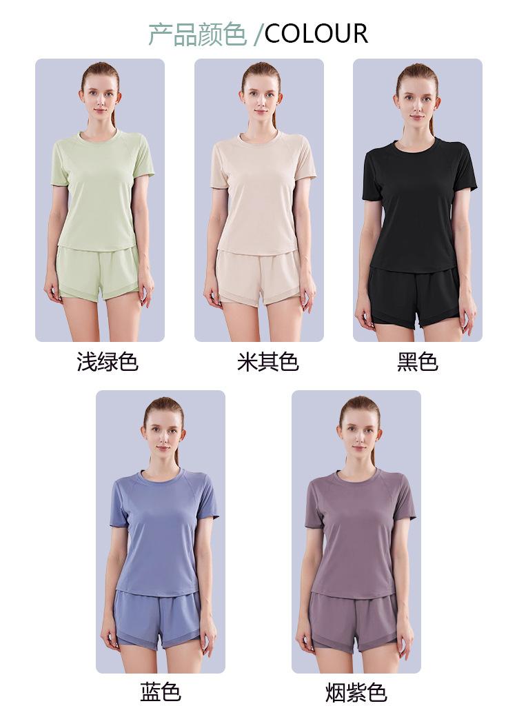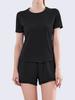 Secado rápido Costuras de malla Antirozaduras Deportes Ropa de yoga de verano para mujer Suelta para correr Suelta Cintura alta Traje de manga corta