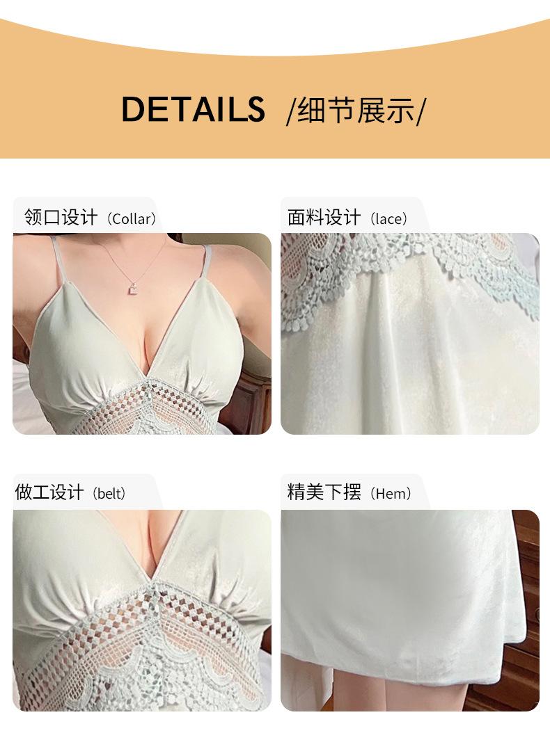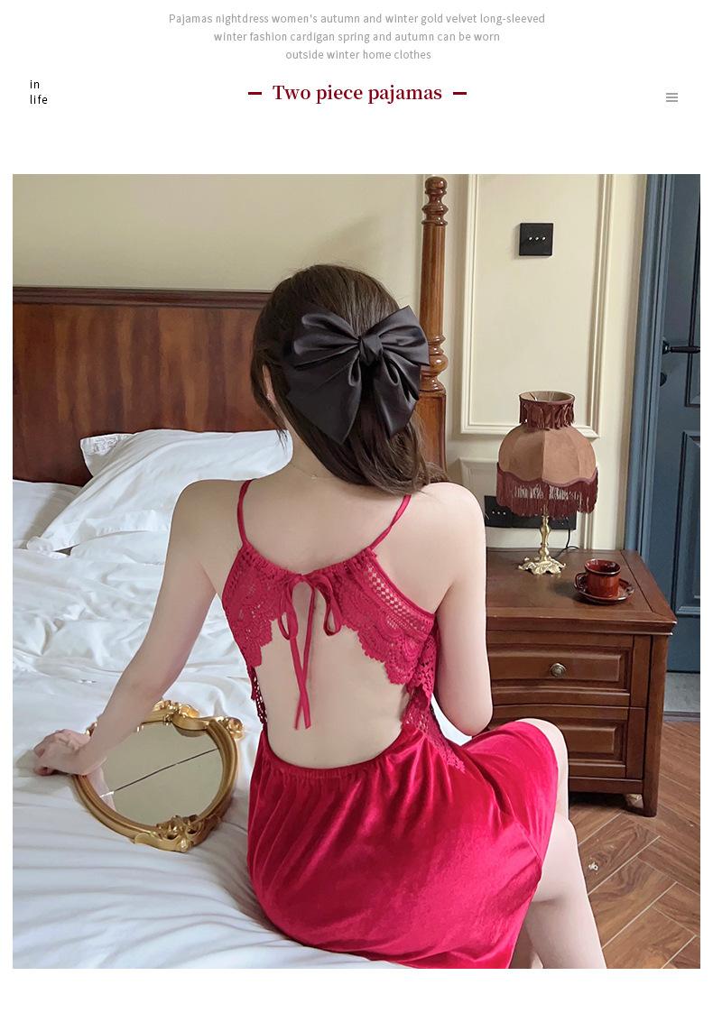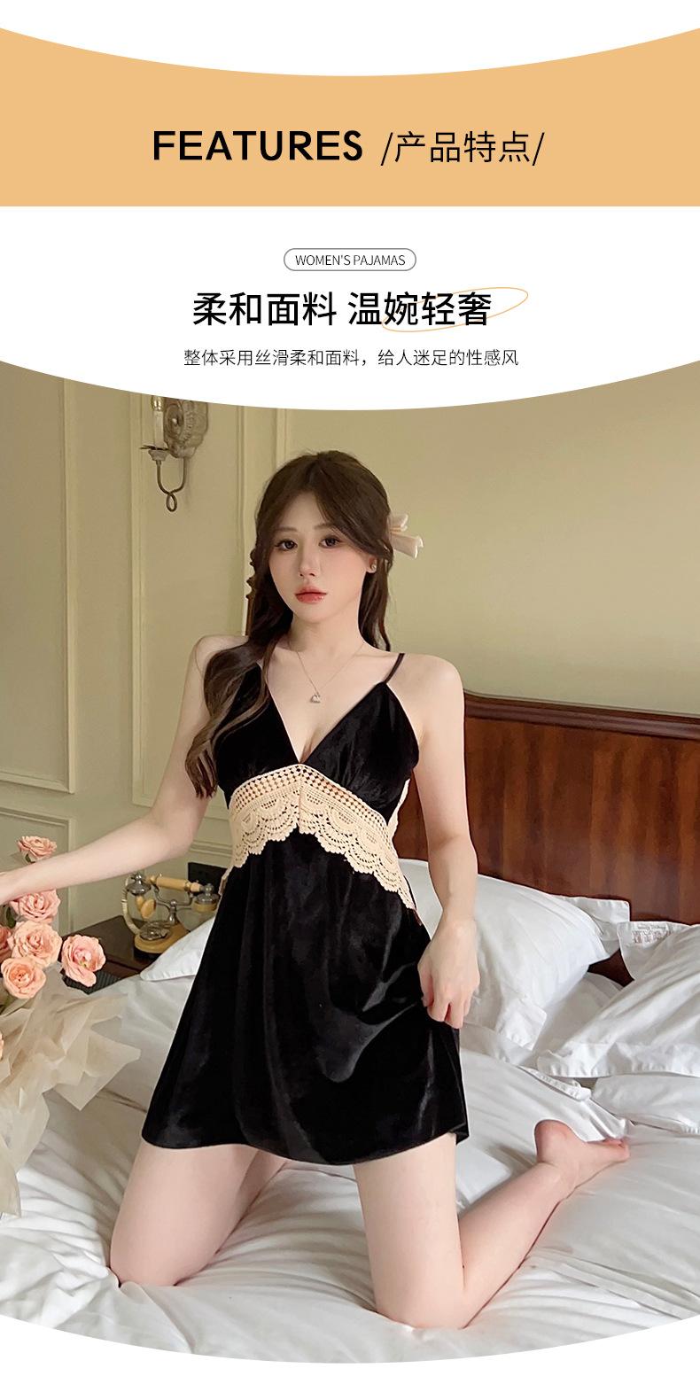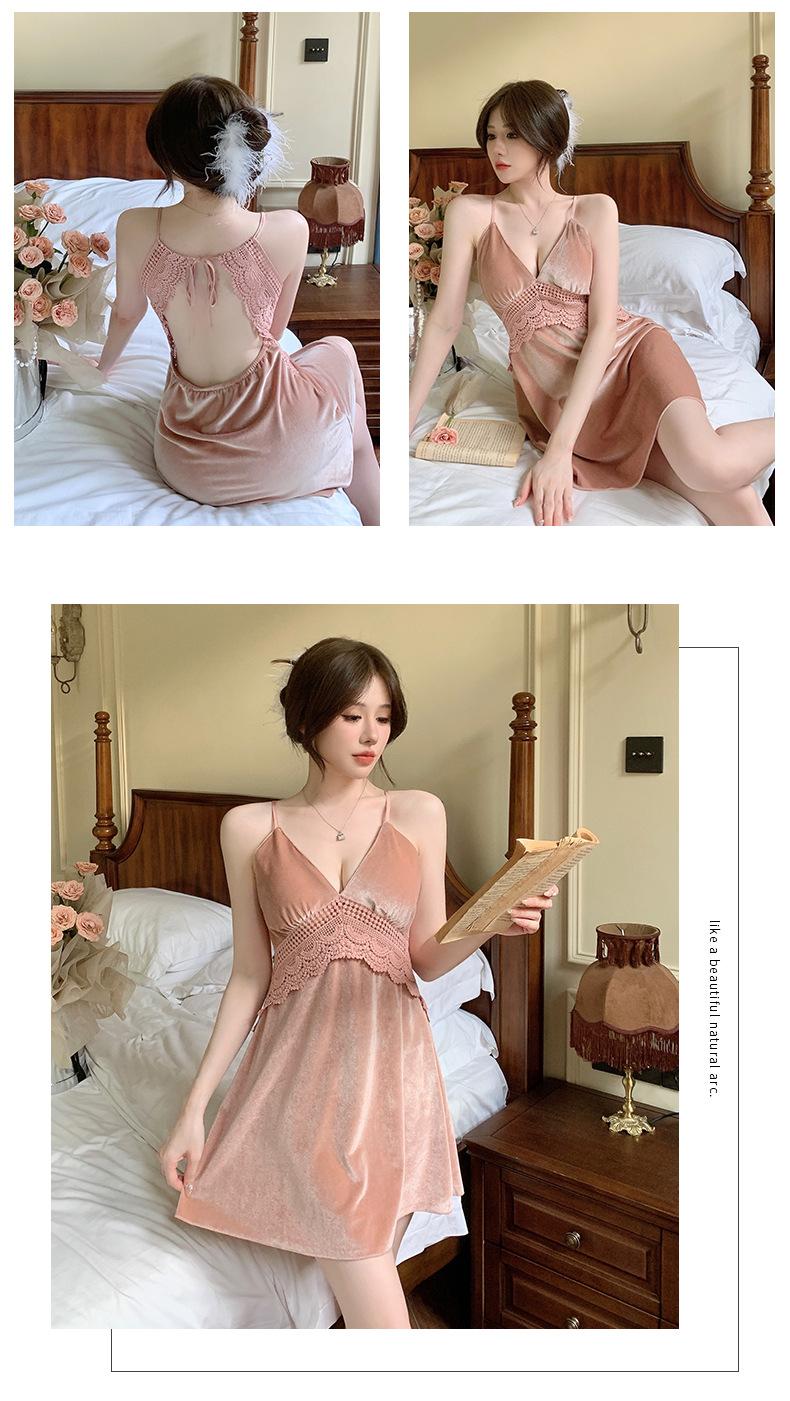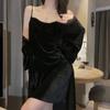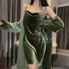 Pijama de Terciopelo Dorado con Tirantes para Mujer Otoño e Invierno Ropa para el Hogar Camisón Estilo Deseo Puro Sexy Delgada Escote en V Profundo