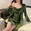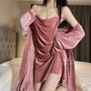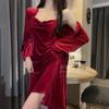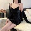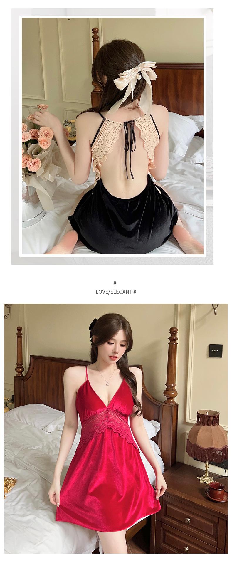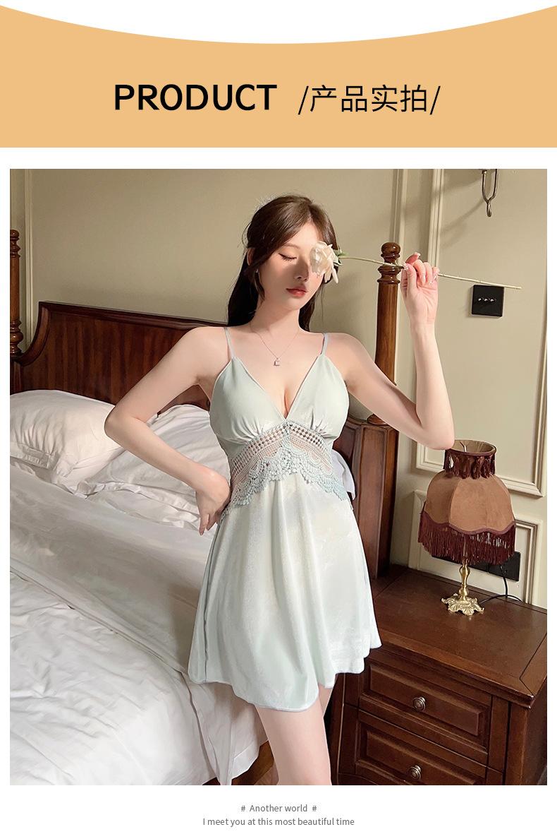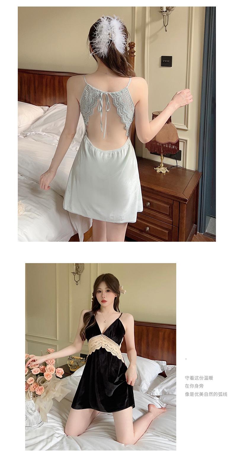 Pijama de Terciopelo Dorado con Tirantes para Mujer Otoño e Invierno Ropa para el Hogar Camisón Estilo Deseo Puro Sexy Delgada Escote en V Profundo