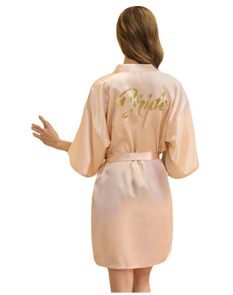 Bata de Maquillaje de Boda para Mujer Estampado en Caliente Oro Camisón de Novia para Mujer Cárdigan Fino de Verano para Mujer Bata Matutina de Novia de Alta Gama