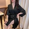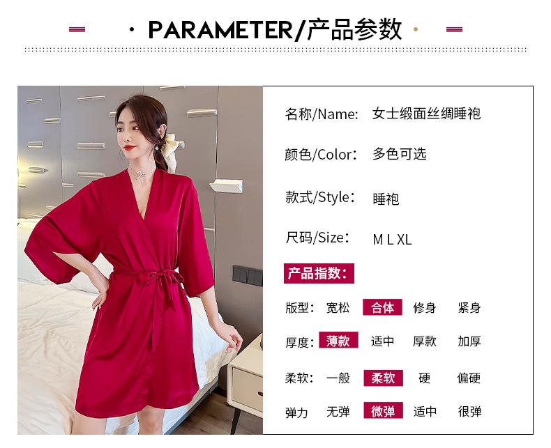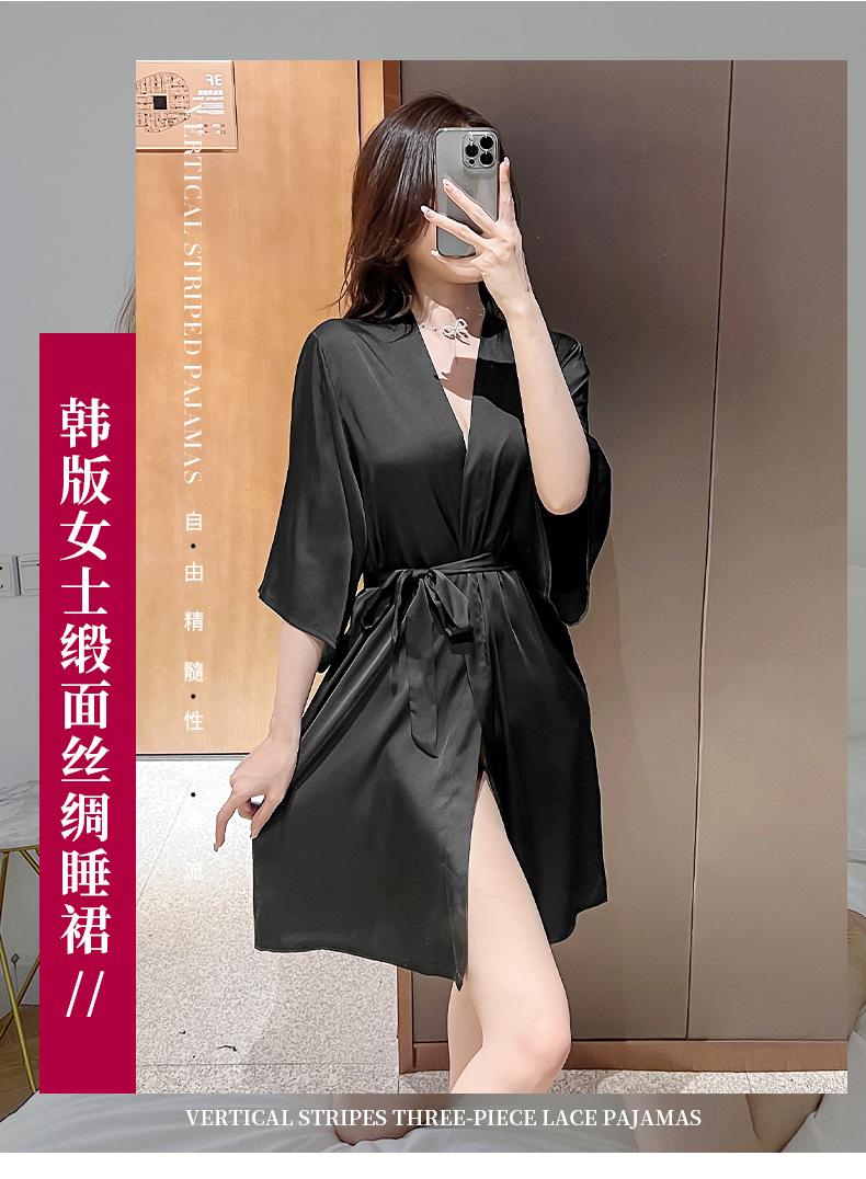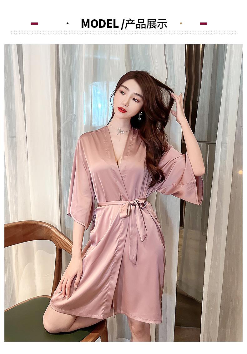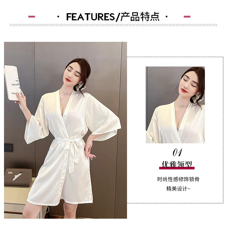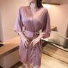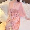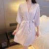 Nuevo camisón de manga siete cuartos de seda de hielo ligero transpirable satén chifón color sólido bata con cordones conjunto de una pieza fabricantes en stock