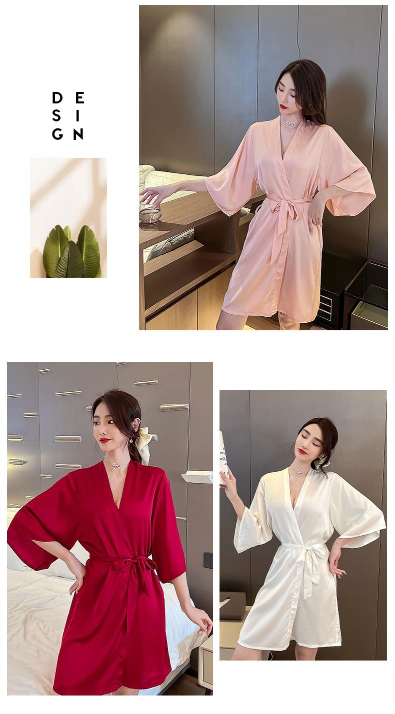 White single robe, Black single robe, wine red single robe, light purple single robe, Cherry Powder Single Gow...
