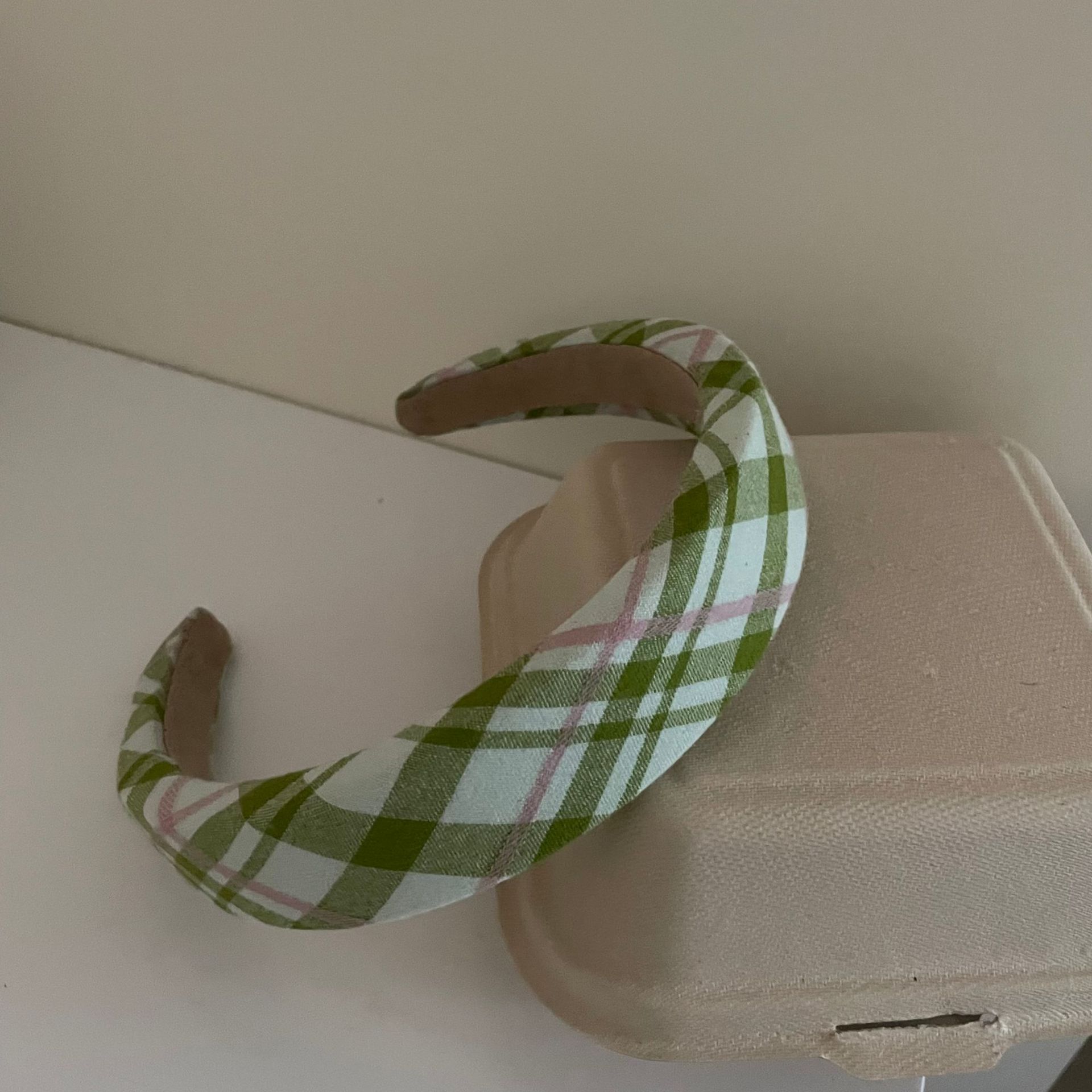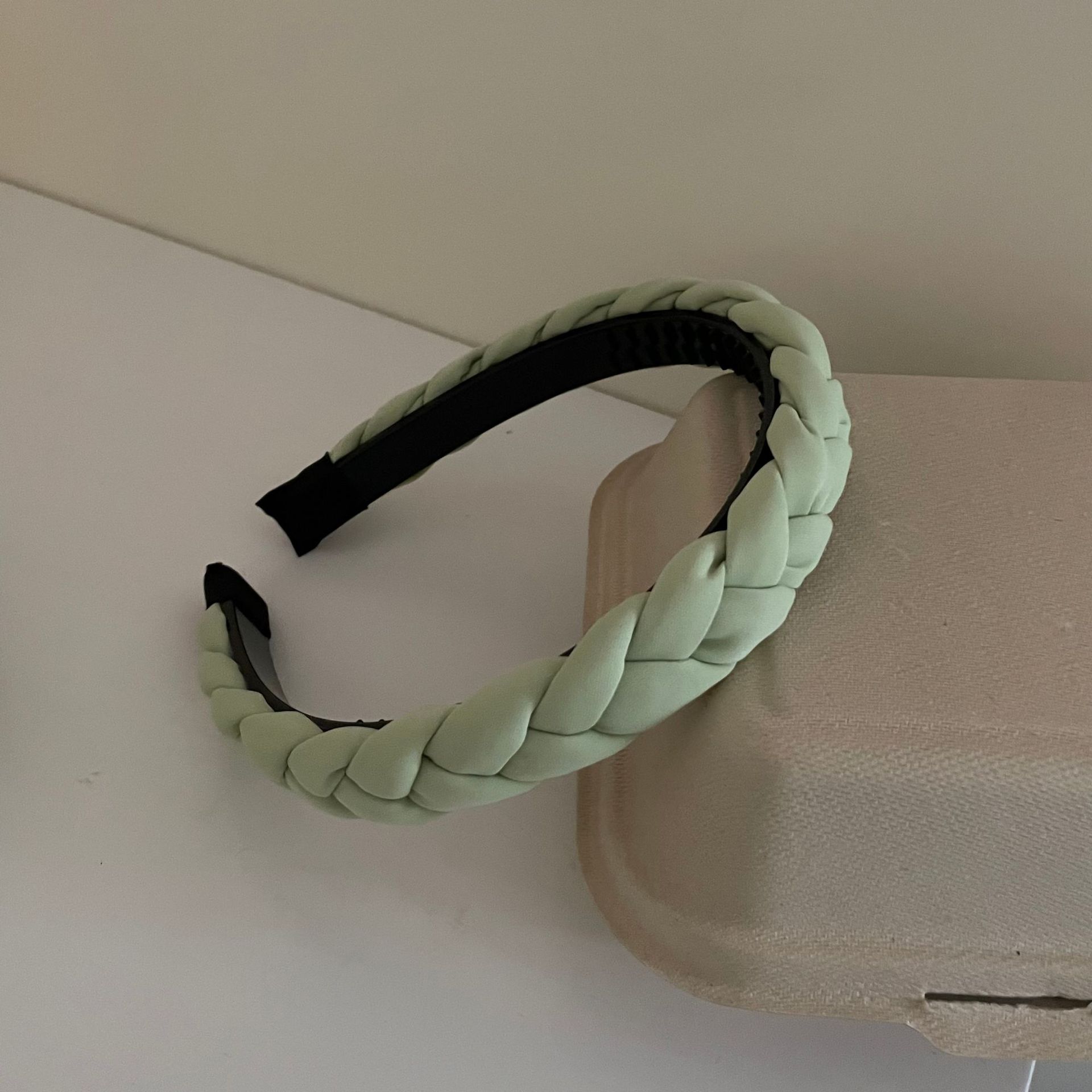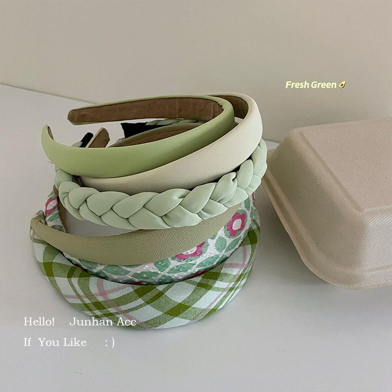 1# Green 2CM sponge height increasing headband, 2# beige headband, 3# Green twist headband, 4# Green wide edge...