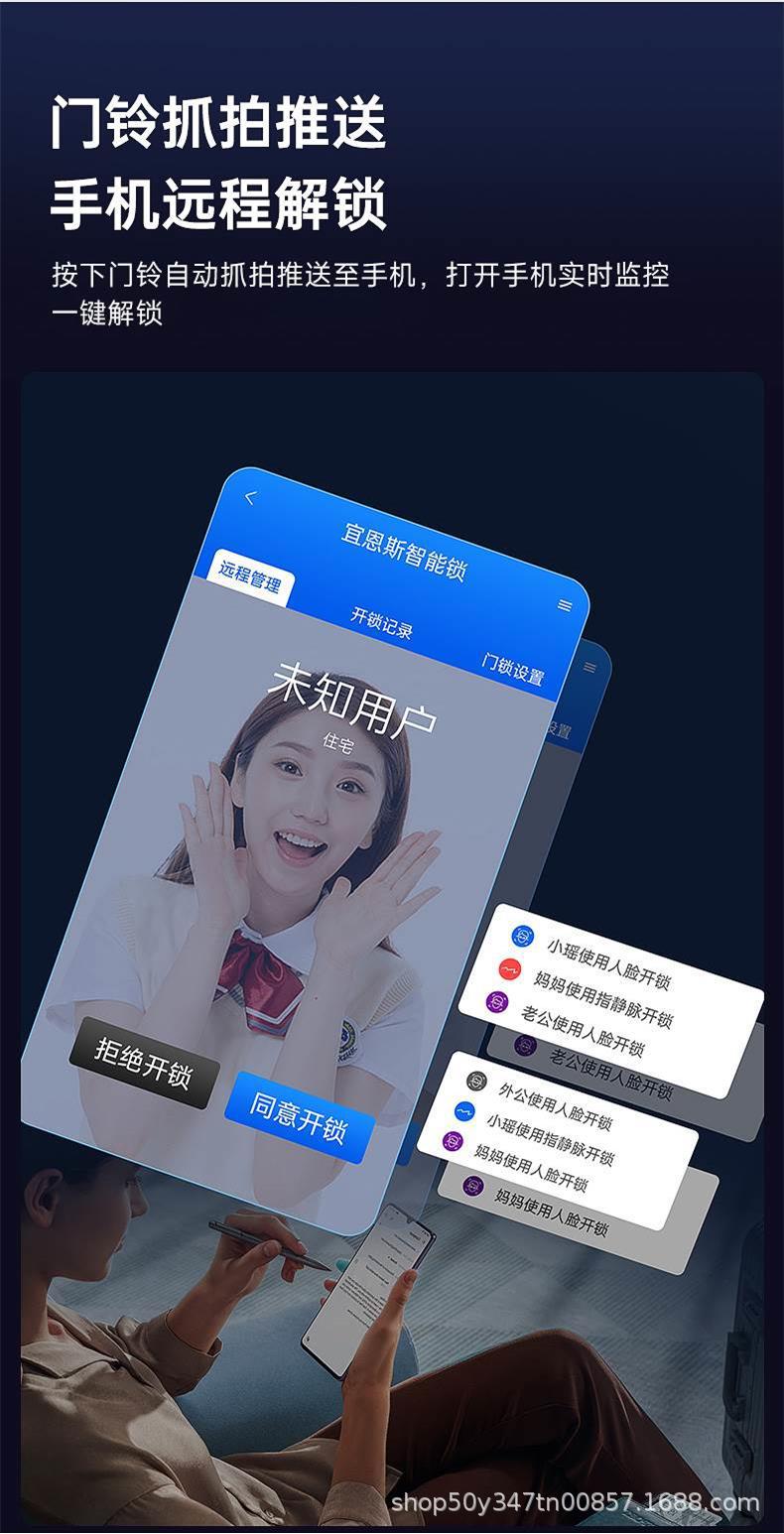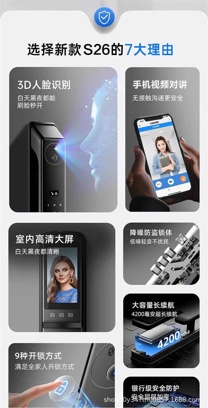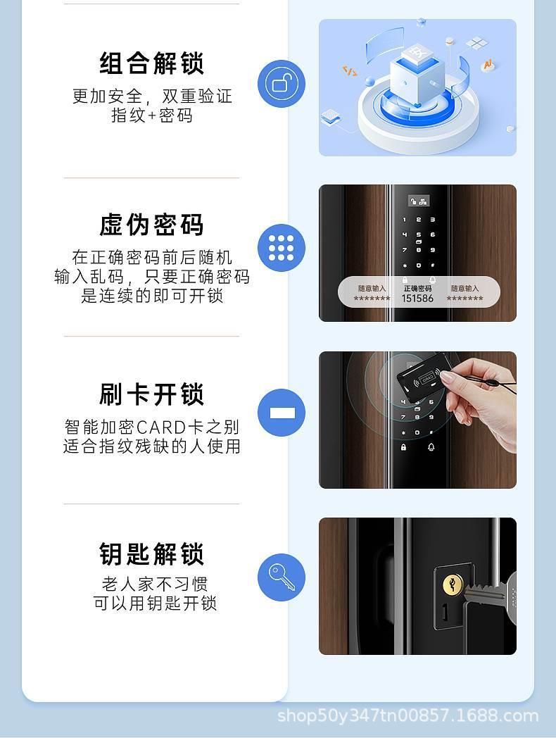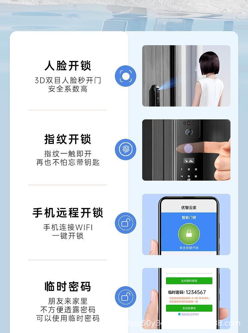 Fingerprint, Waterproof, Password, With key, visible cat's eye, face recognition, No opening, Remote Unlock