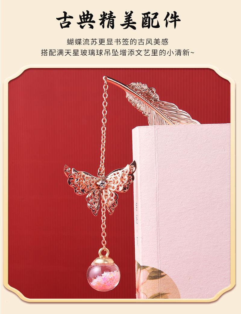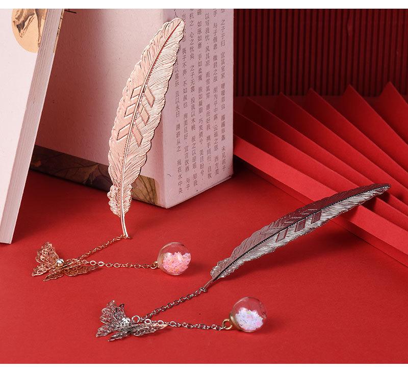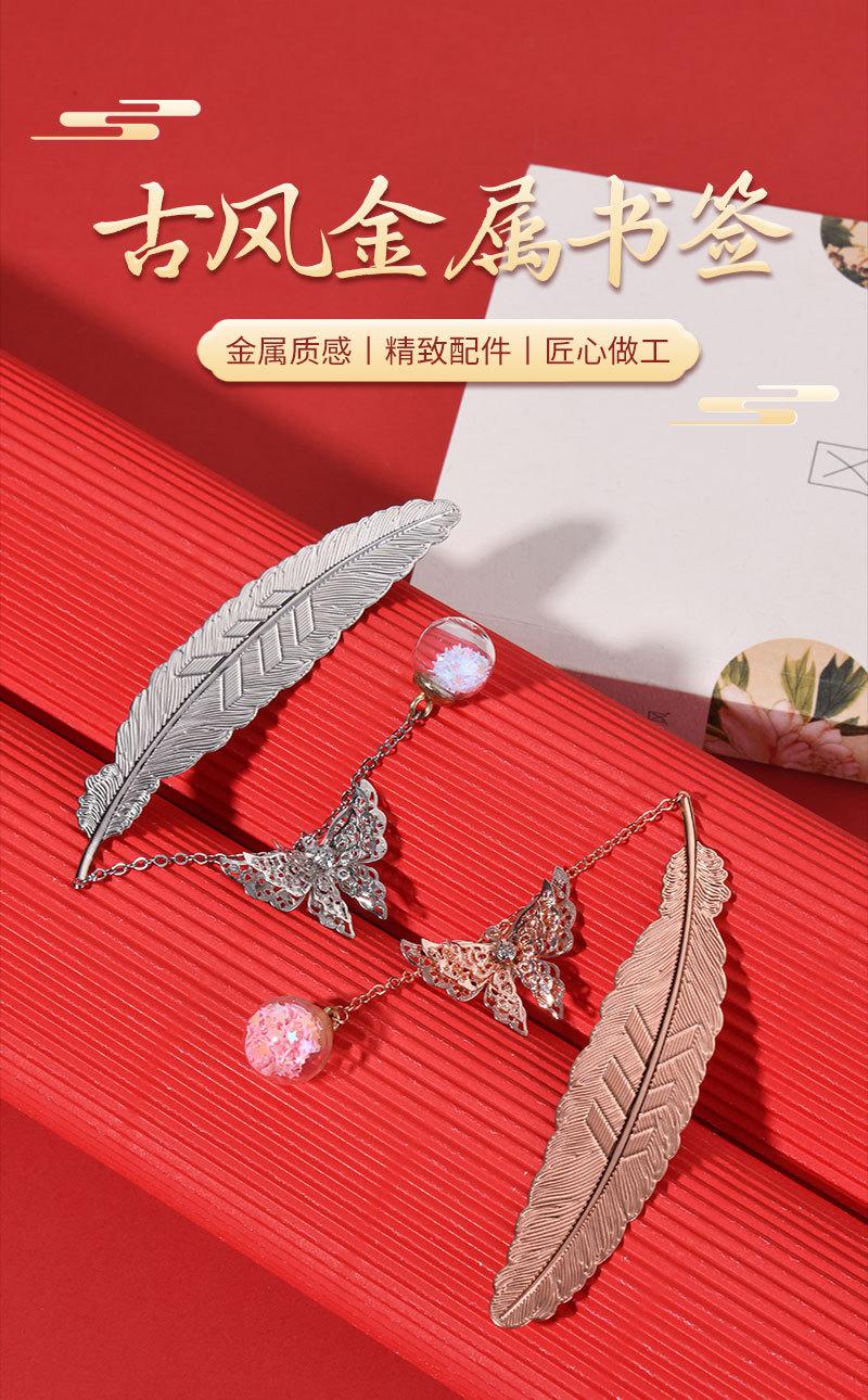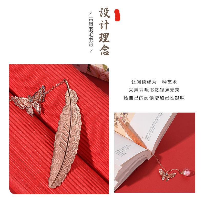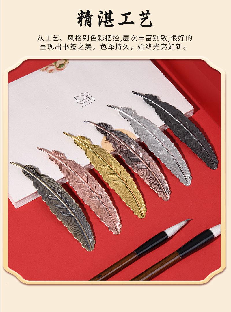 Marcapáginas de metal en stock, creativo, estilo chino, pluma hueca, estilo antiguo, soporte para libros, venta al por mayor, pequeño regalo conmemorativo retro