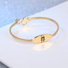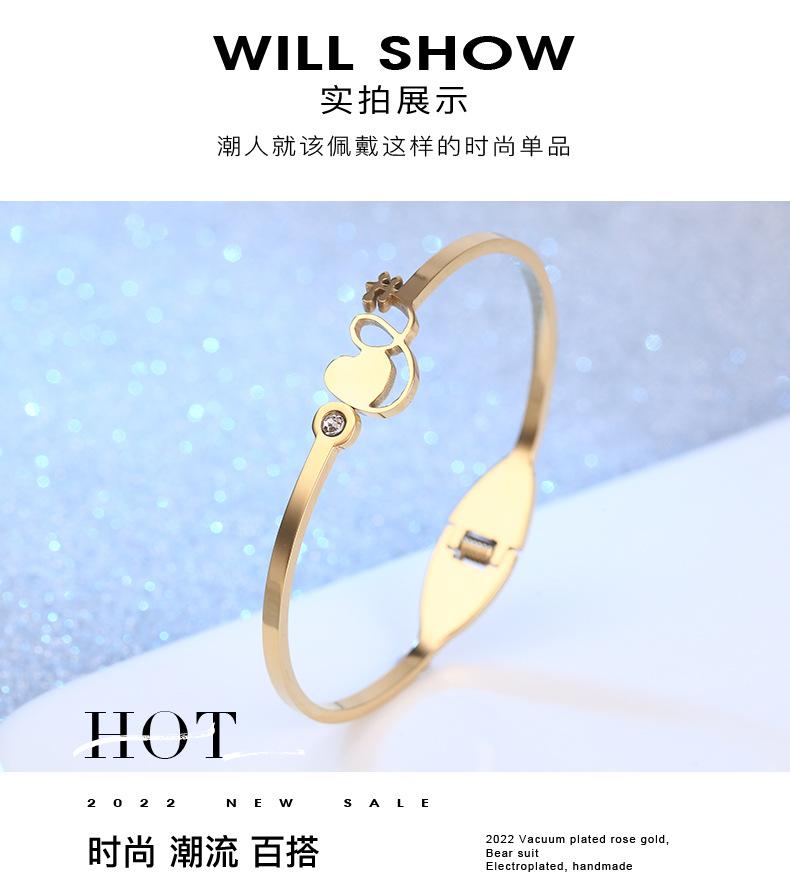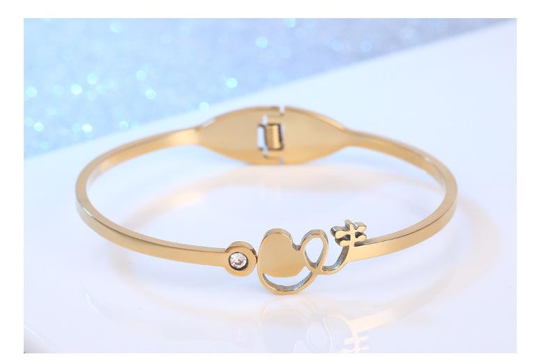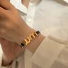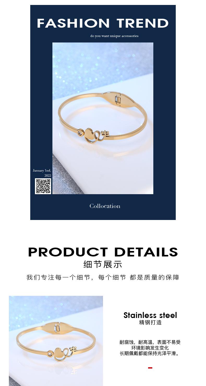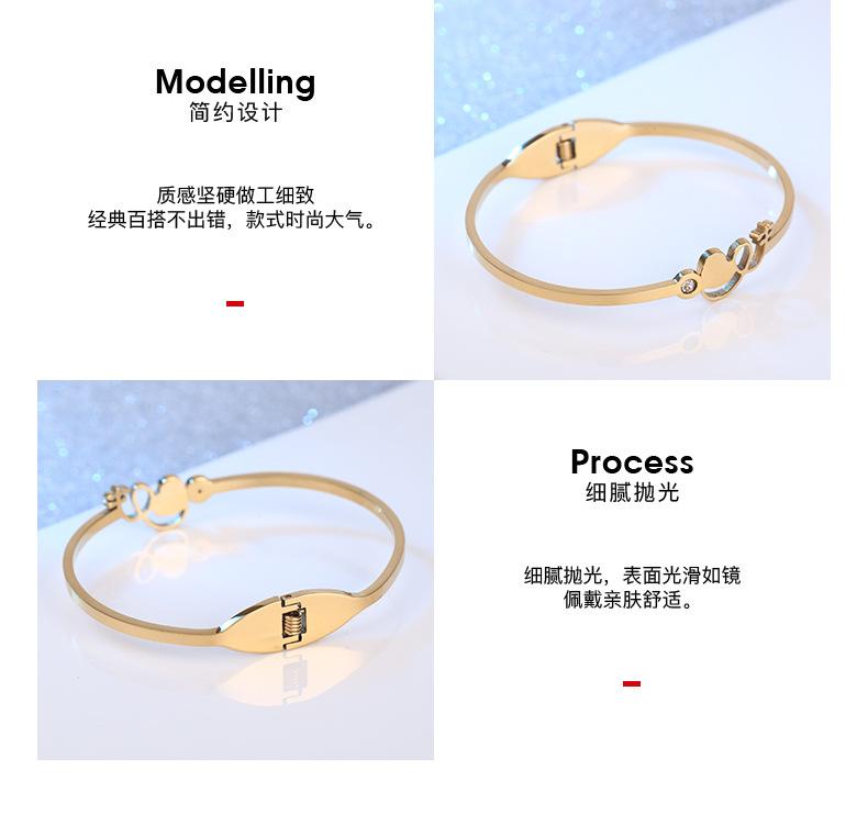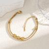 Pulsera de Acero Inoxidable con Nudo de Doble Corazón con Chapado en Oro K Estilo Celebridad de Internet para Mujer, Sencilla, con Forma de Corazón y Diamantes Blancos, de Acero de Titanio