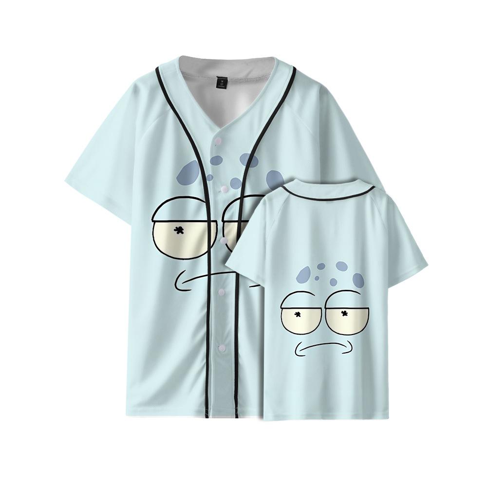 SOLAR opuestos Refugiados Alienígenas Traje de Béisbol Delgado Moderno Cuello en V Estampado a Color Camiseta Holgada de Manga Corta