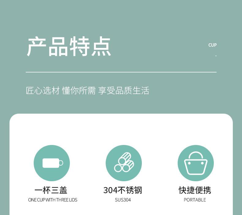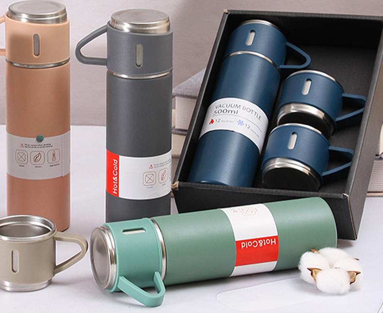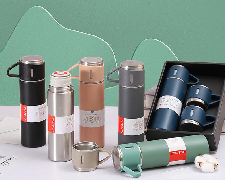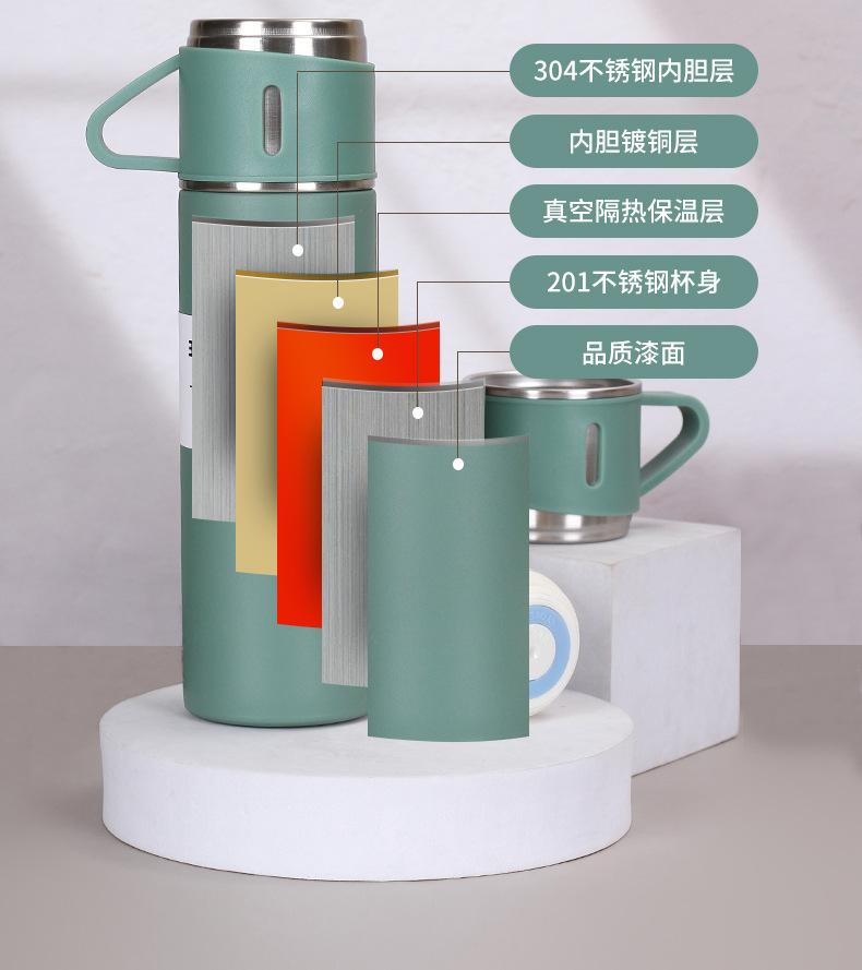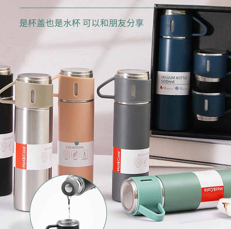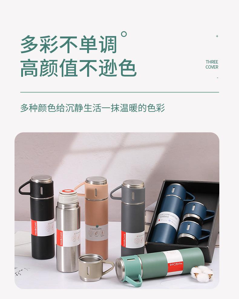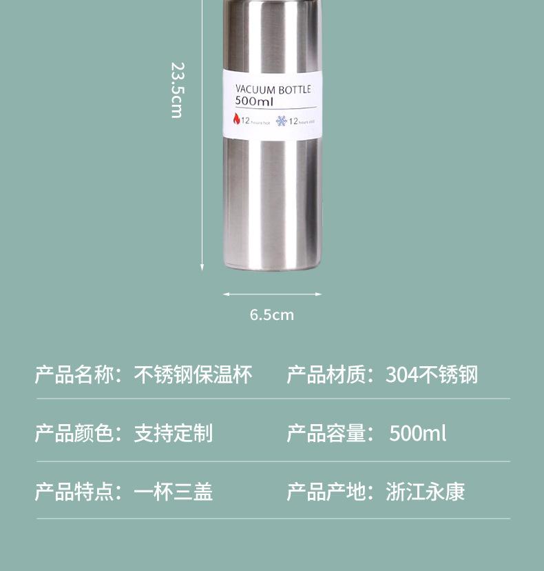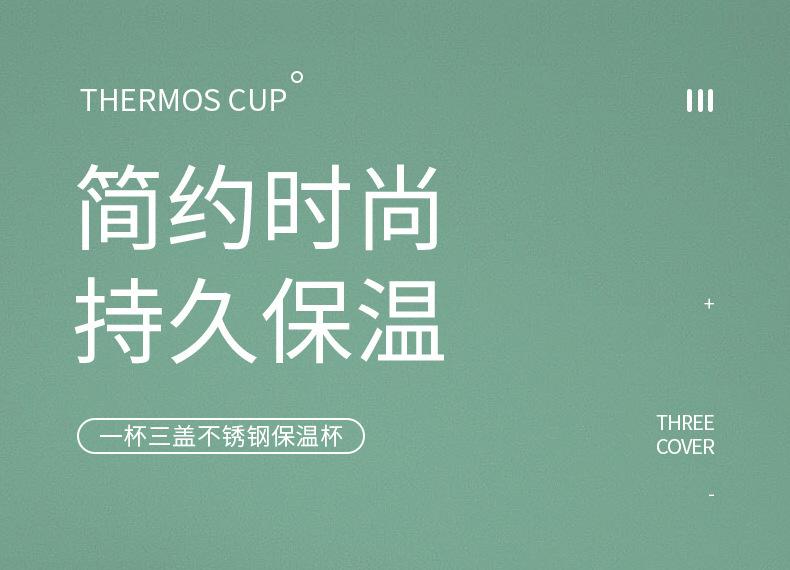 Taza de vacío de acero inoxidable 304 simple, una taza, tres tapas, taza de regalo portátil, taza de agua de oficina de vacío de gran capacidad, traje
