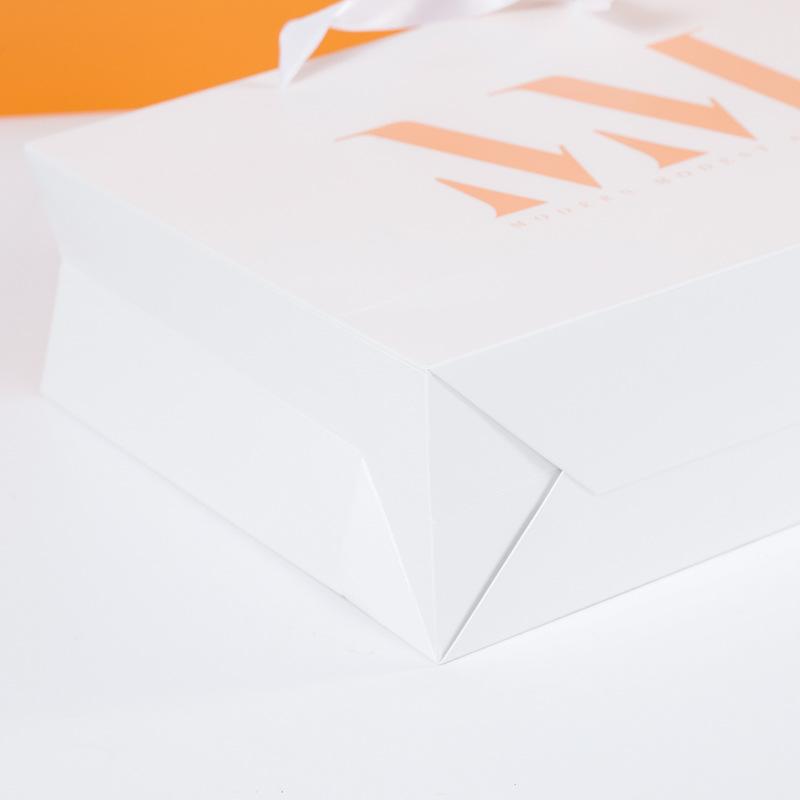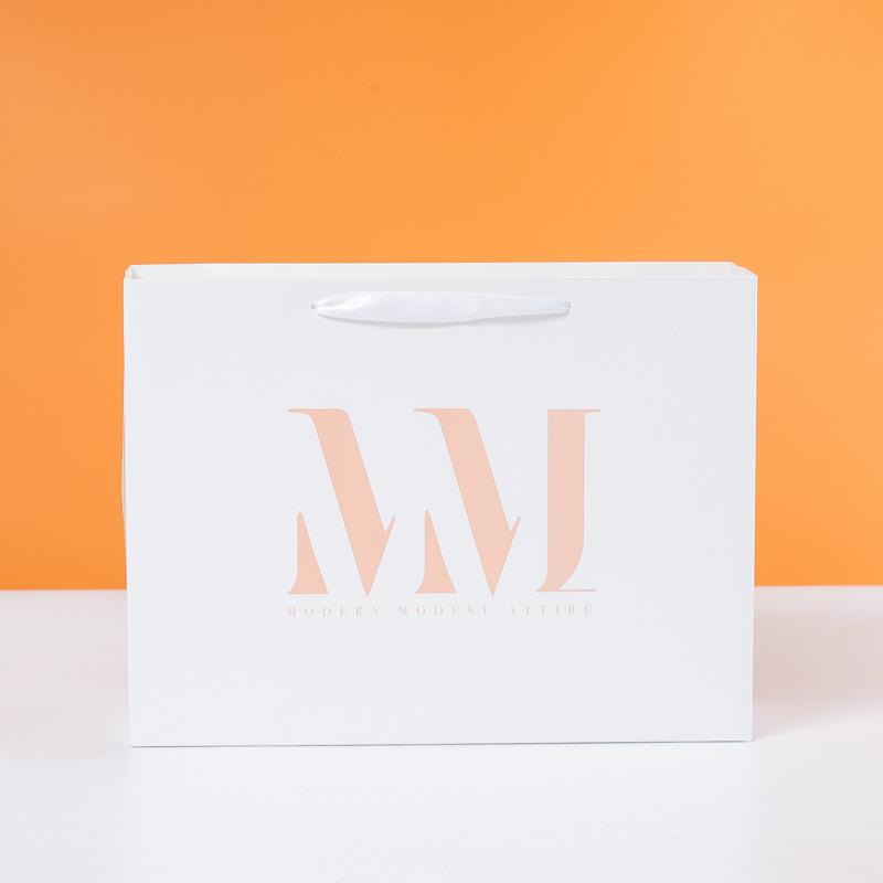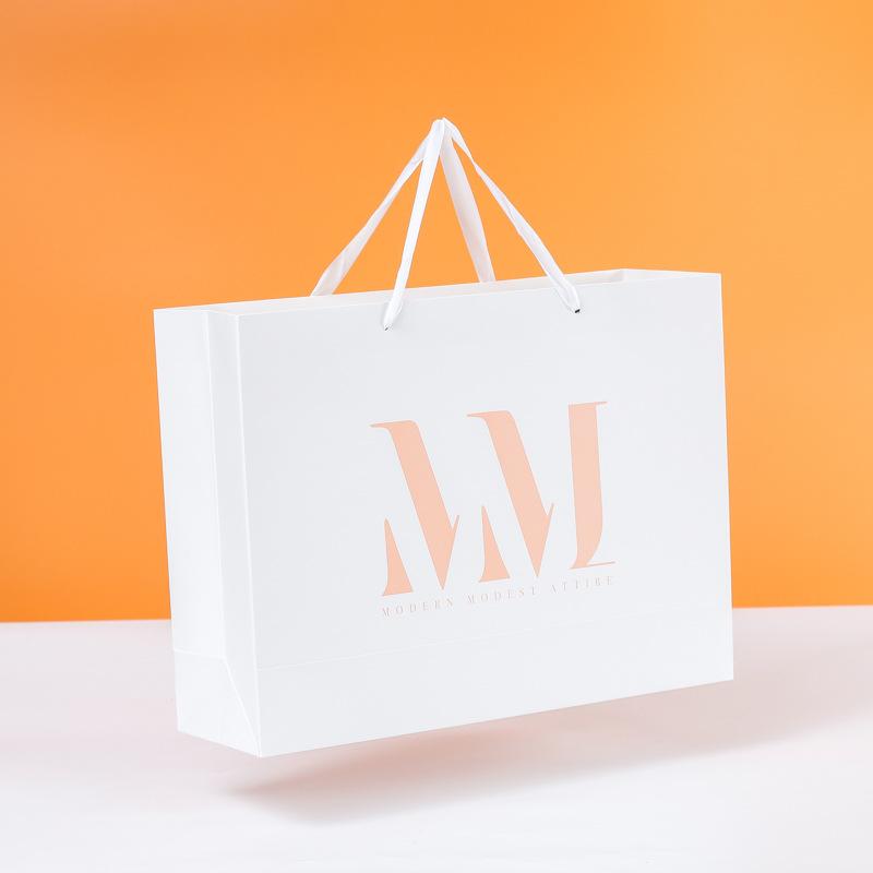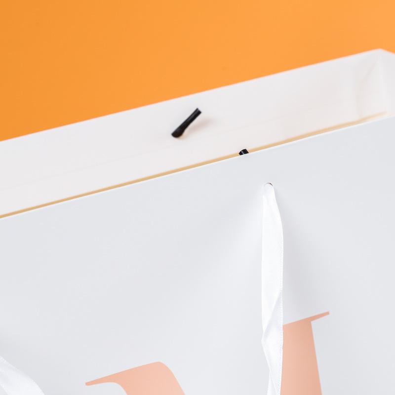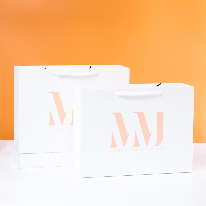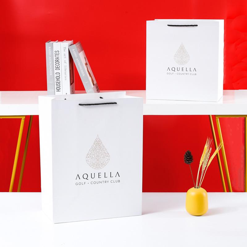 Bolsa de Cartón Blanco Tienda de Ropa Cosméticos Regalo Festivo Bolsa de Embalaje para Vino Tinto Bolsa de Compras Bolso de Mano Personalizado Venta al por Mayor