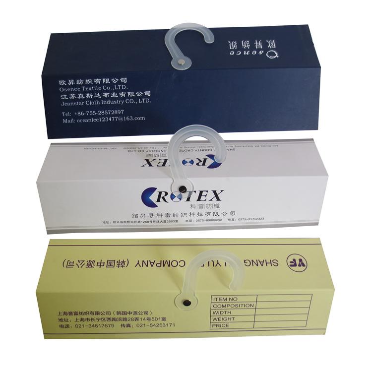 Tarjeta colgante de tela personalizada con gancho textil, muestra de tela, gancho, impresión de tarjeta colgante de tela, se puede imprimir el logotipo de la empresa