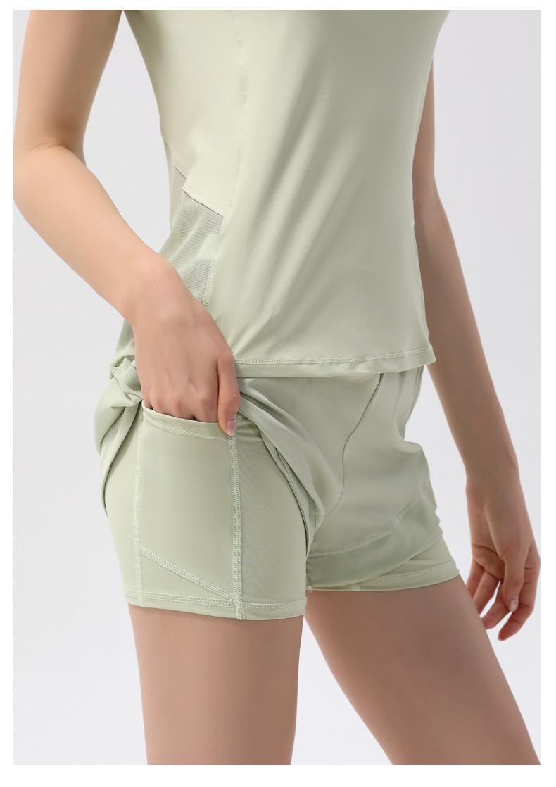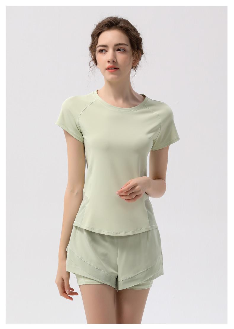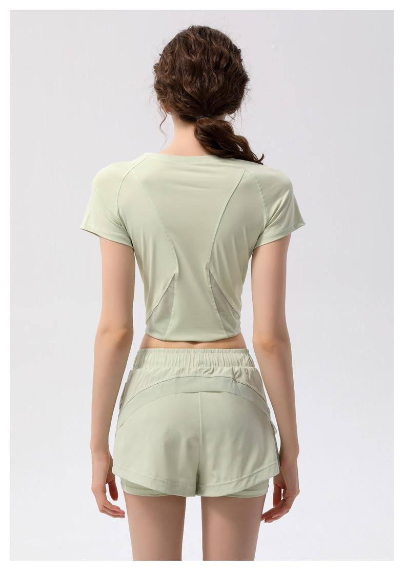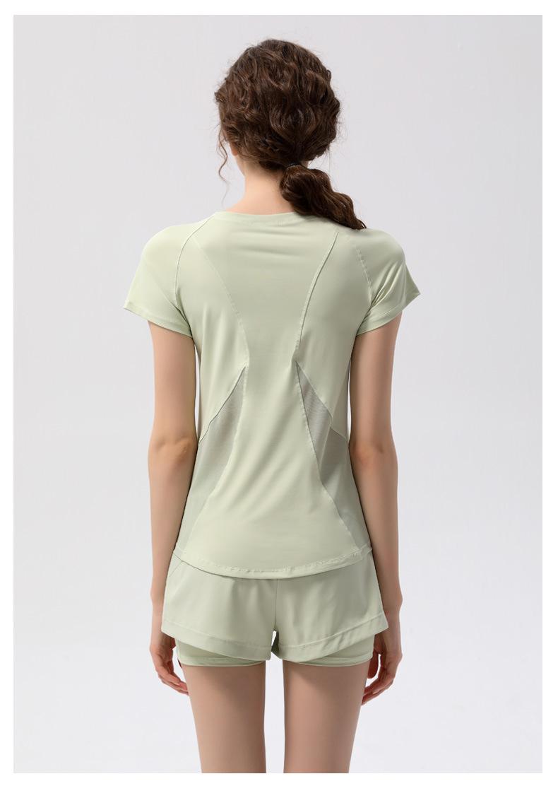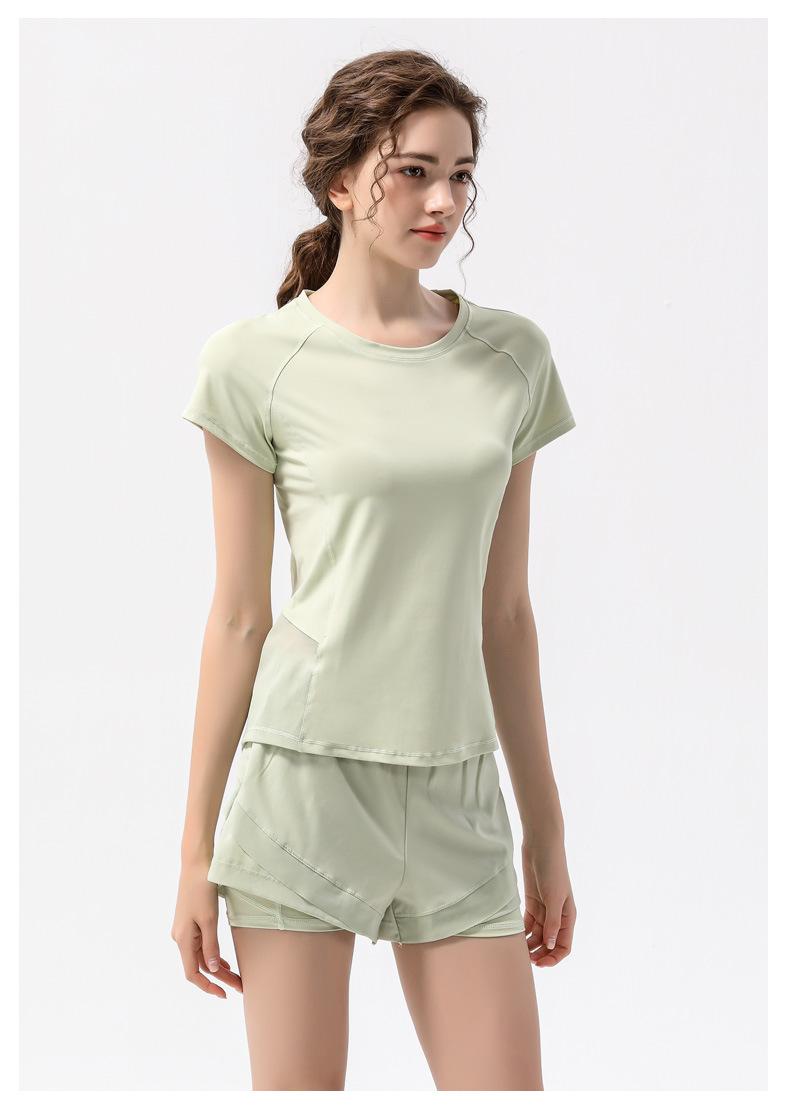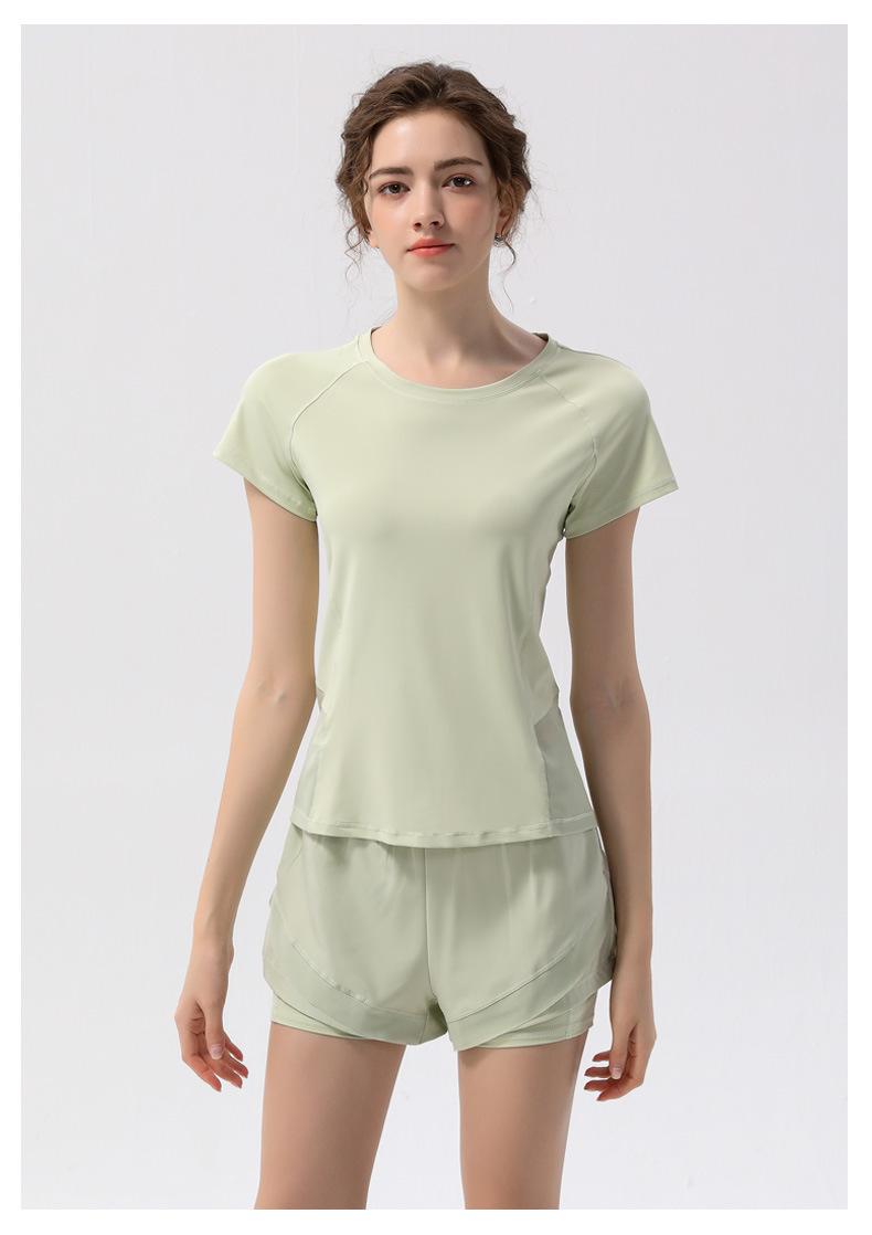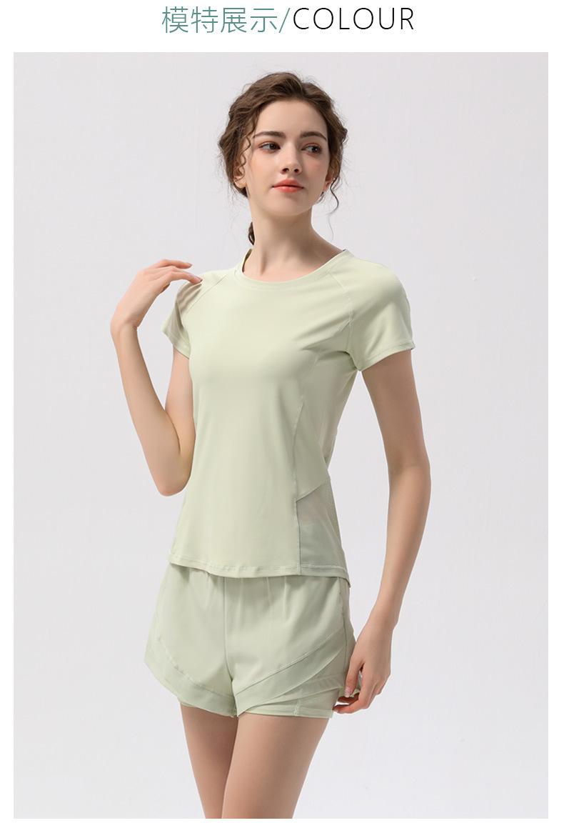 Ropa de yoga para mujer, traje deportivo de verano, camiseta de manga corta de malla transpirable de secado rápido, pantalones cortos para correr, conjunto de dos piezas para fitness
