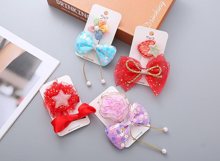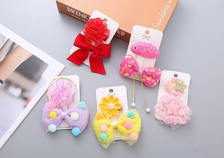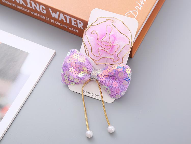 Juego de 2 horquillas para el pelo para niña, con lazo y flores, accesorios para el pelo baratos
