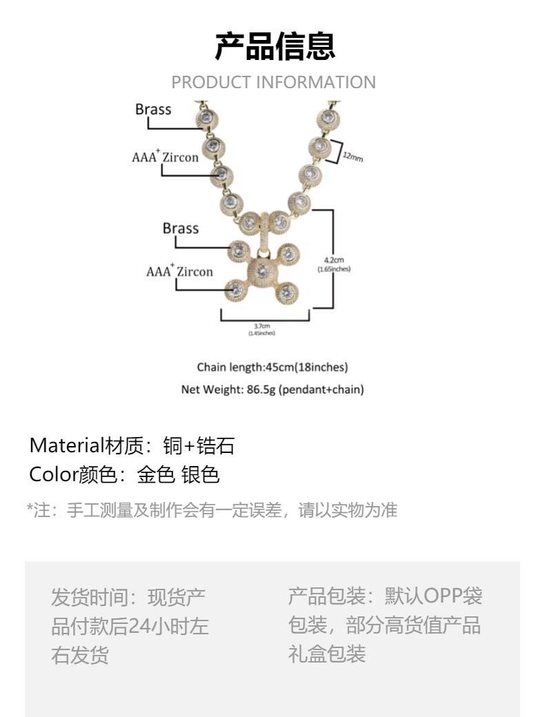 Collar de Moda Diamante Estilo Metal para Hombre Europeo y Americano Moderno Cool Pato Mismo Estilo Chapado en Oro Hip-Hop Cadena Collar Envío Directo