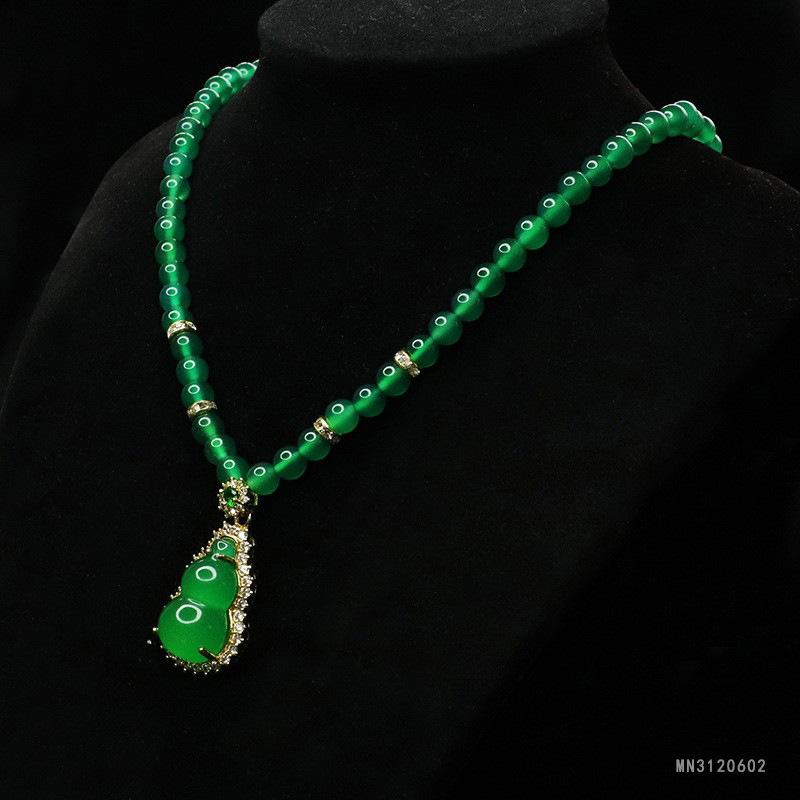 Collar de calcedonia verde del rey de hielo As Yu, cadena de suéter de ágata, nueva joyería china al por mayor de la generación MN3120602