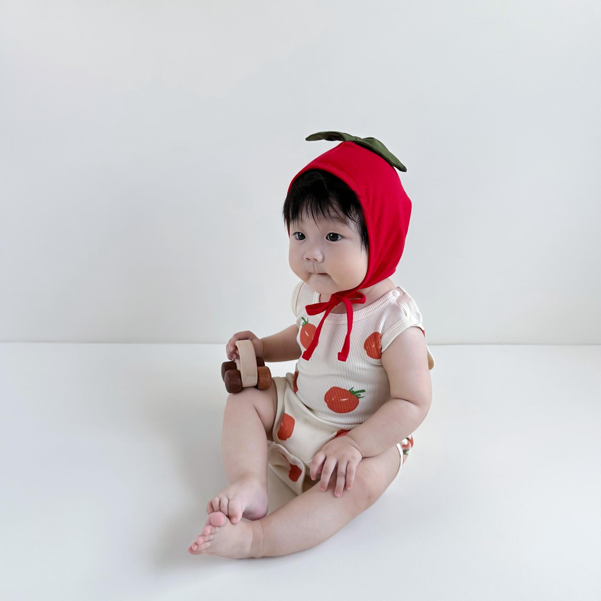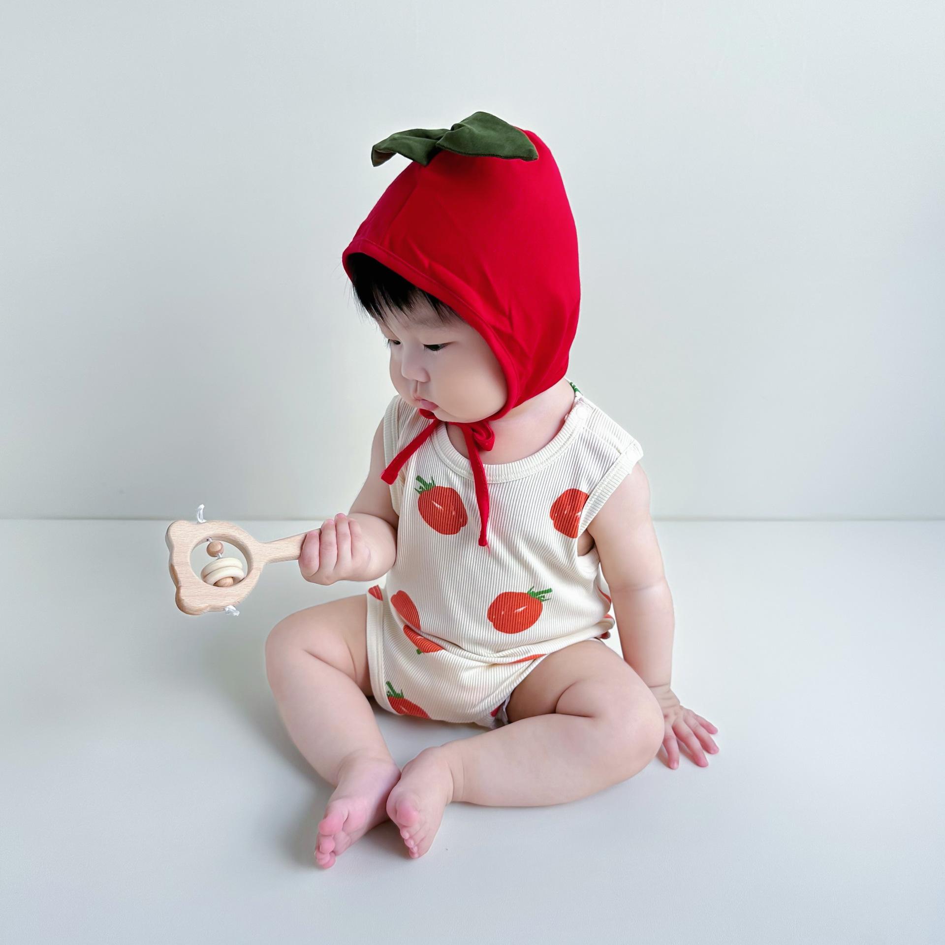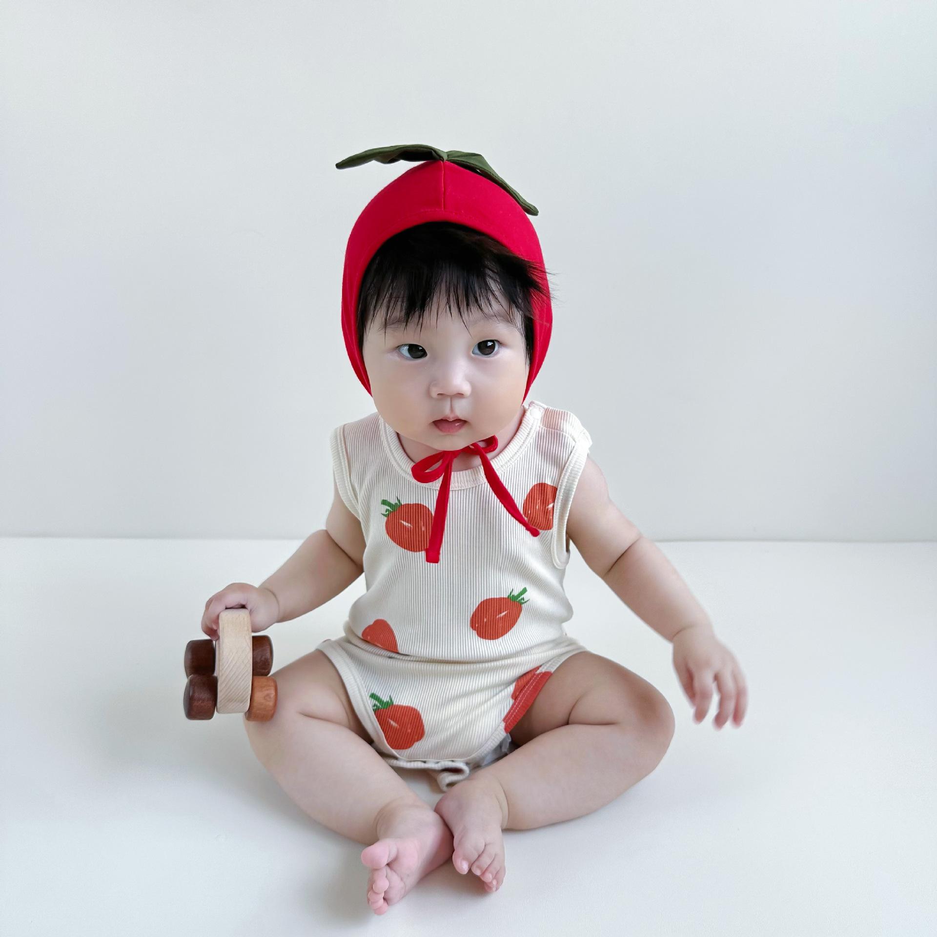 25 Nuevo Mameluco de Verano para Bebé Estilo Ins Estilo K Estilo Estampado de Tomate Traje Harem Tipo Bolsa para Bebé