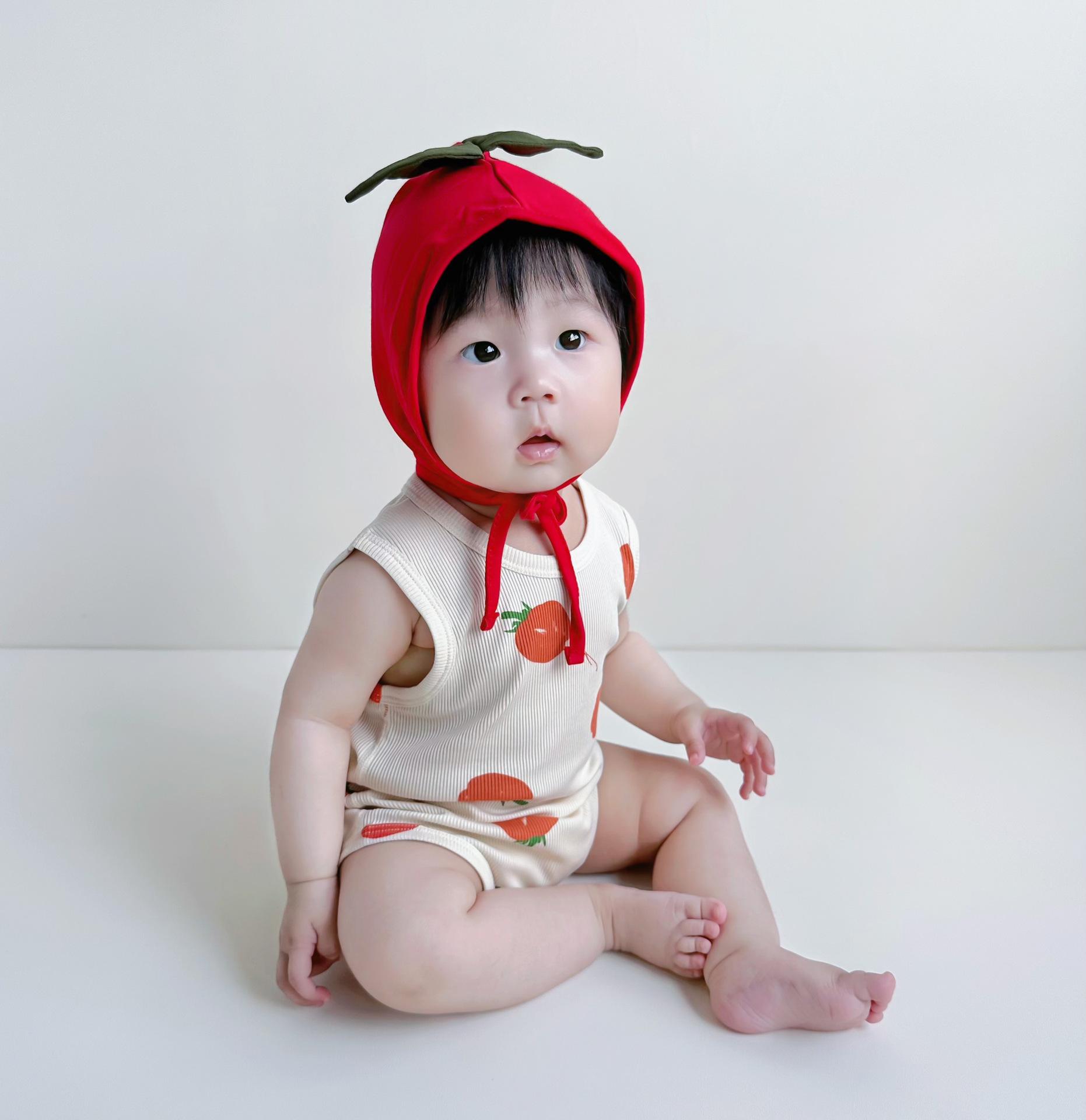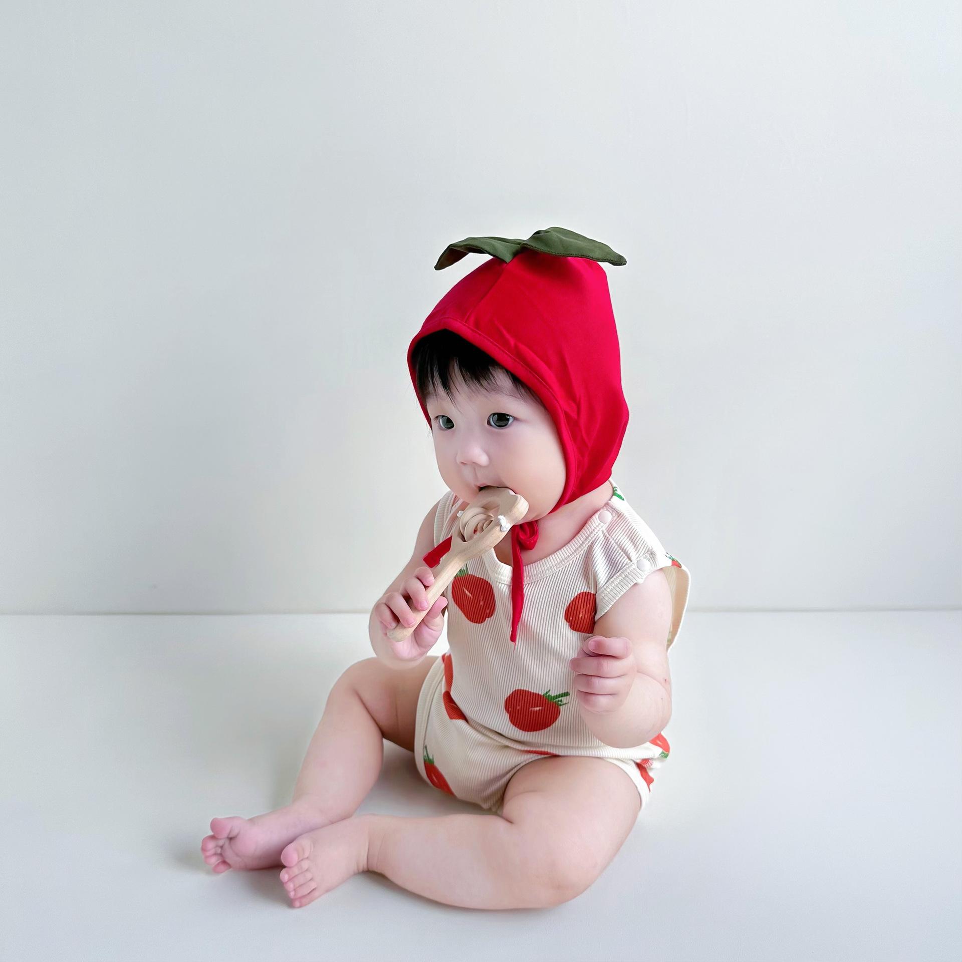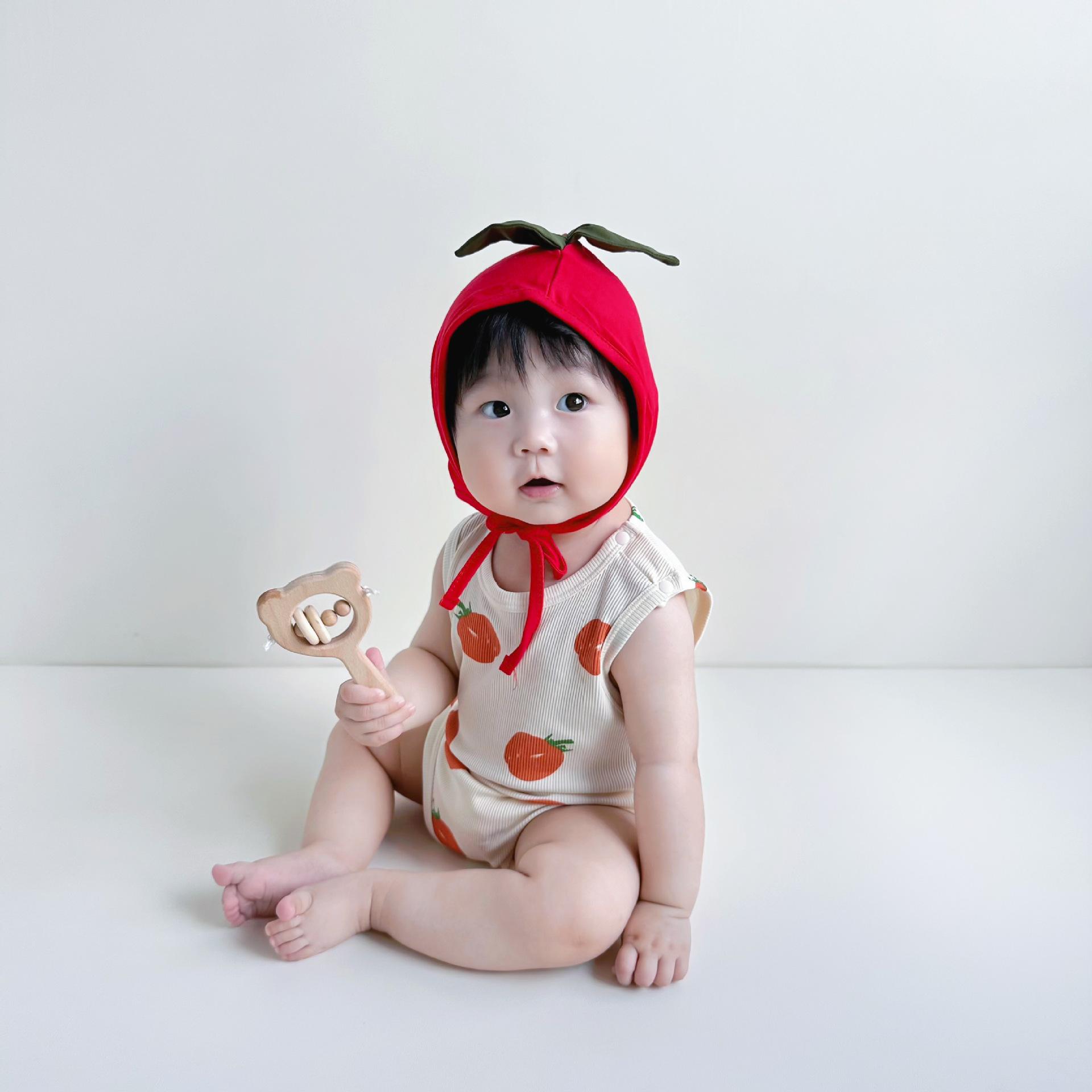 25 Nuevo Mameluco de Verano para Bebé Estilo Ins Estilo K Estilo Estampado de Tomate Traje Harem Tipo Bolsa para Bebé