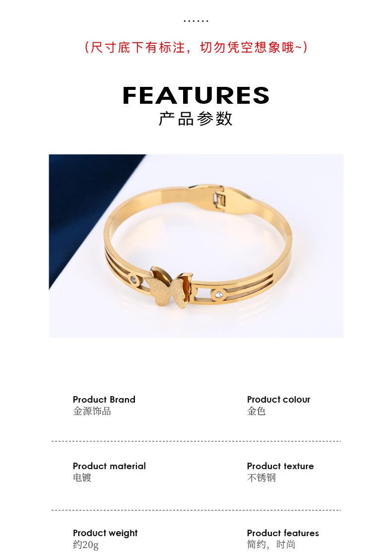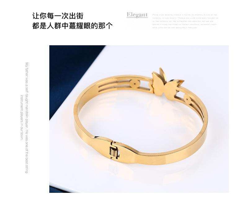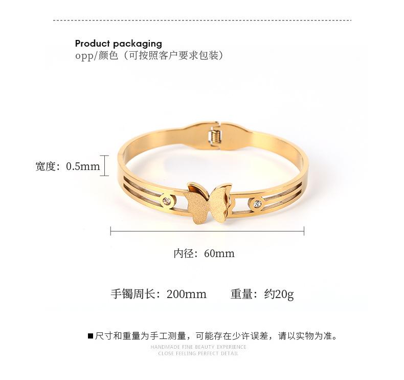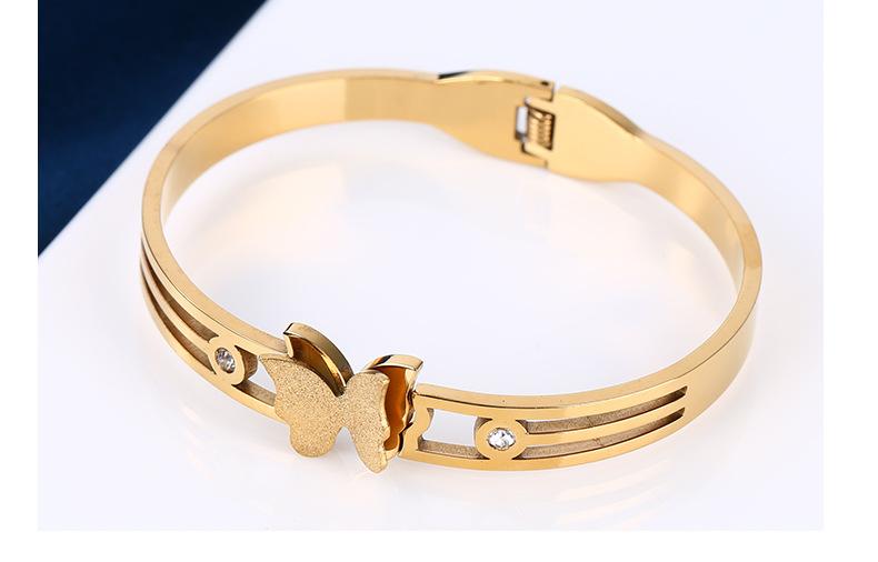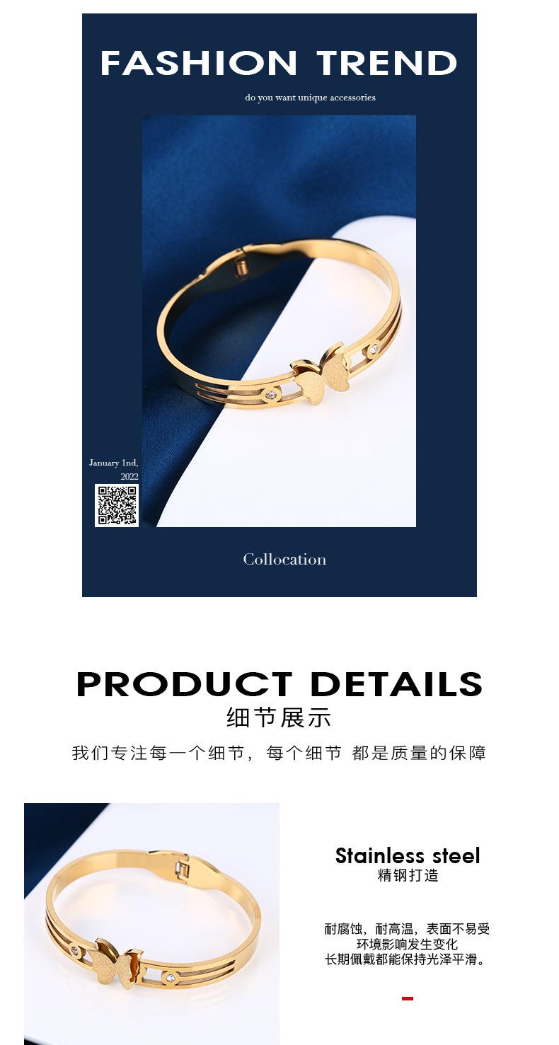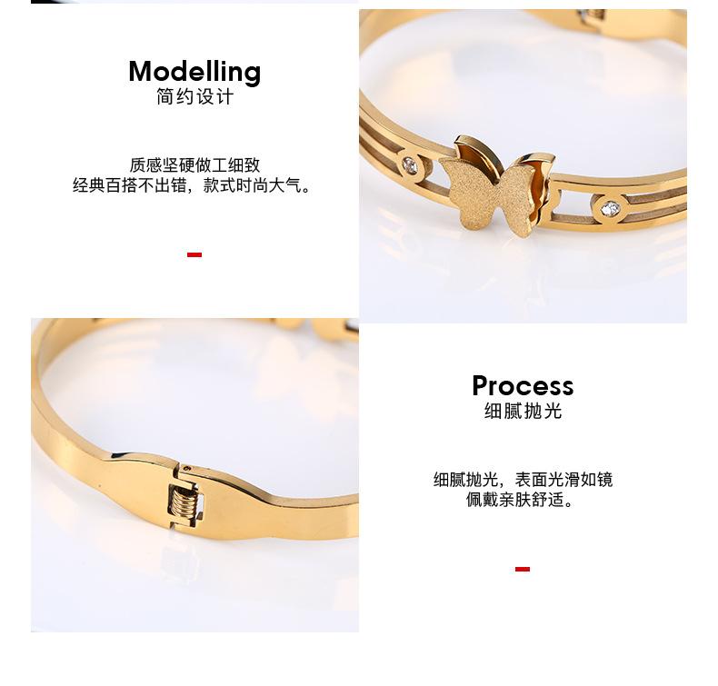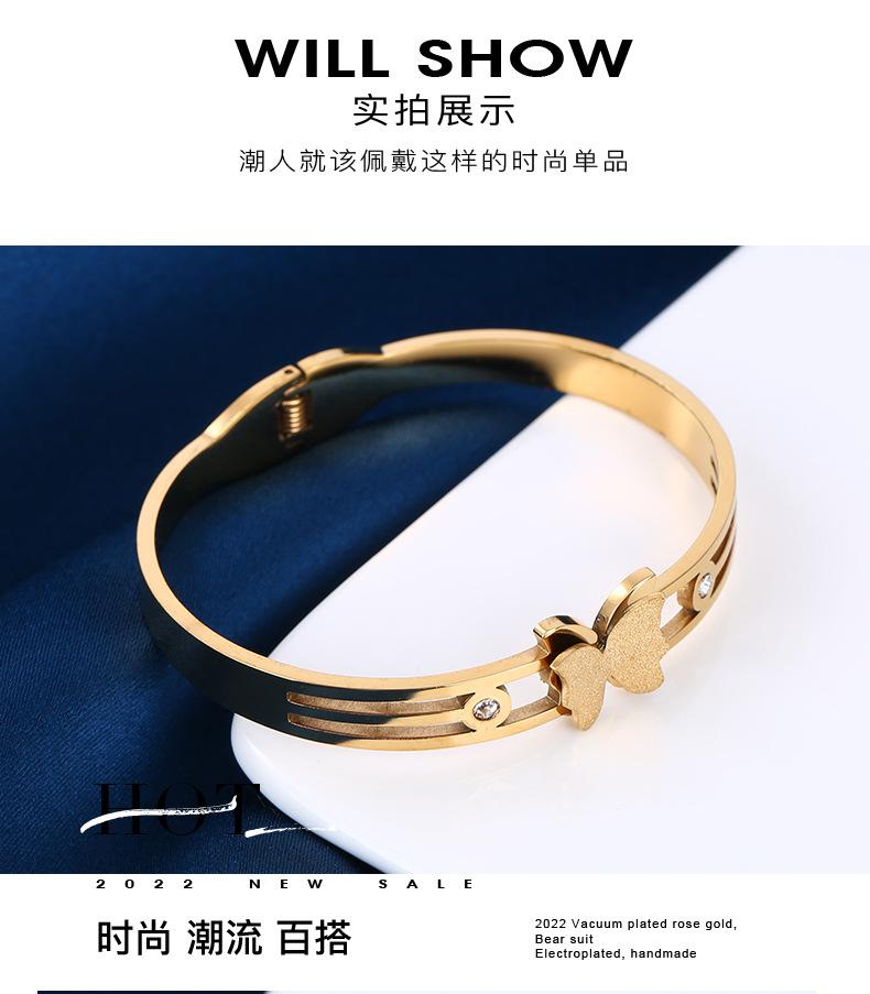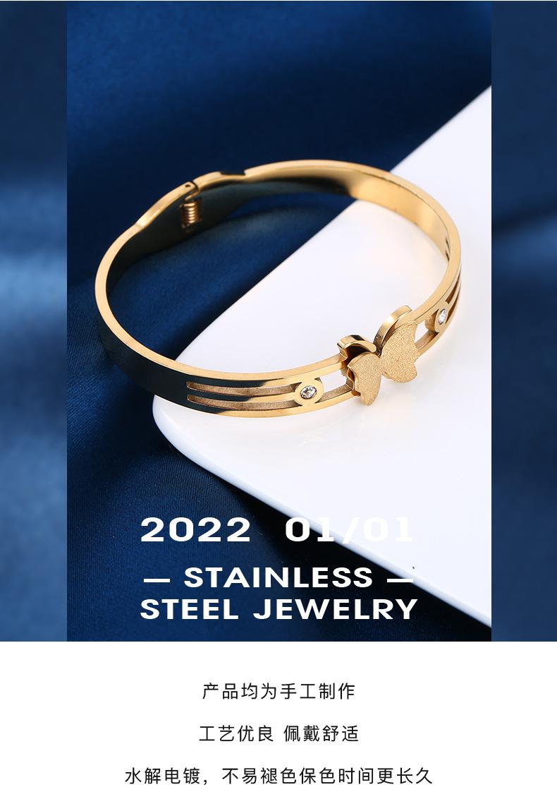 Joyería popular europea y americana de acero inoxidable con circonitas de mariposa, moda elegante, pulsera de acero de titanio con arena dorada, pulsera para mujer